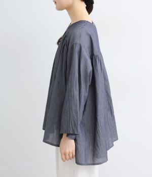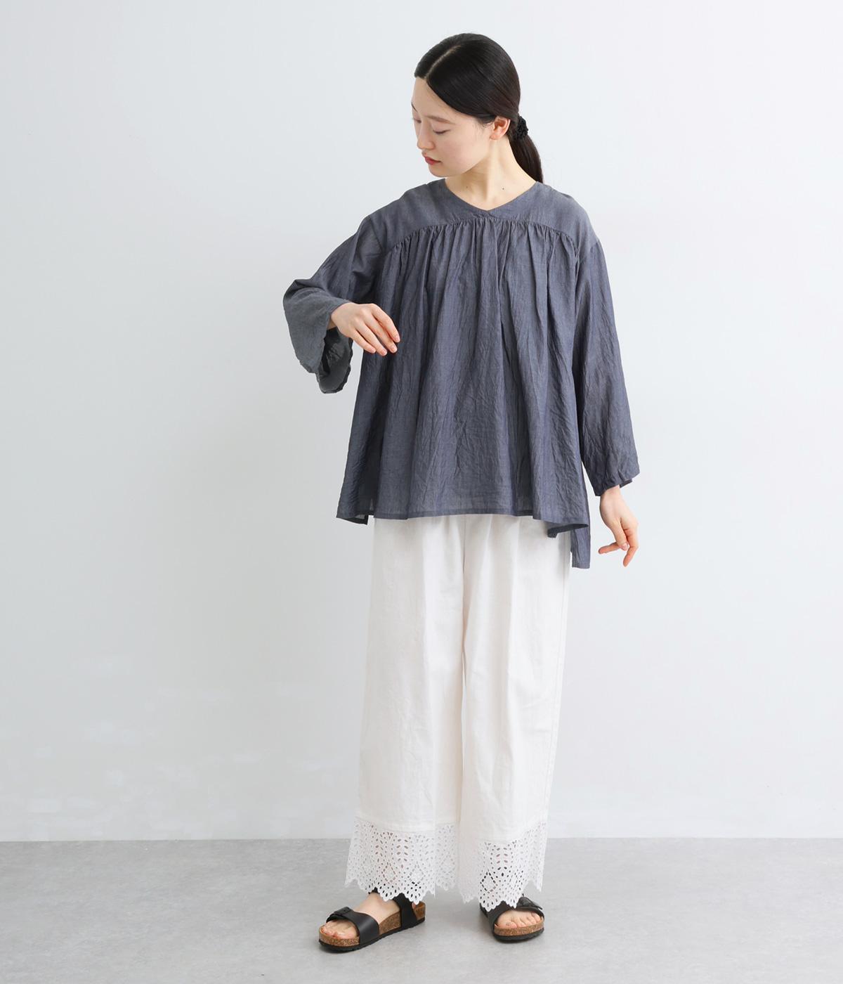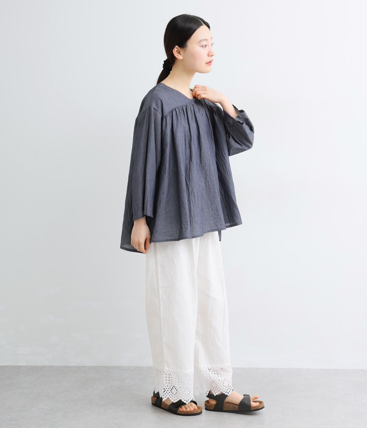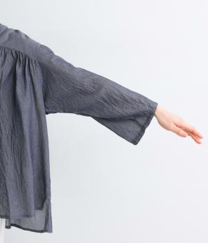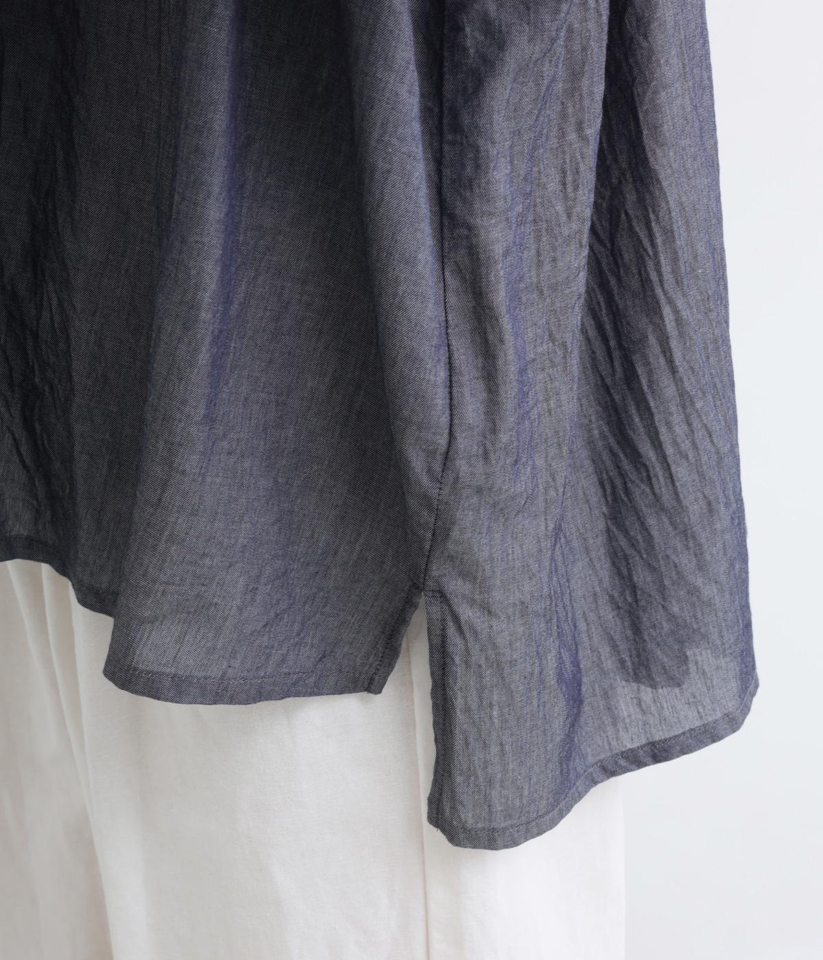 薄手のコットン生地をインディゴ染めした爽やかな素材です。さらりとした優しい肌ざわりと、ストレスフリーの軽やかな着心地が魅力です。
