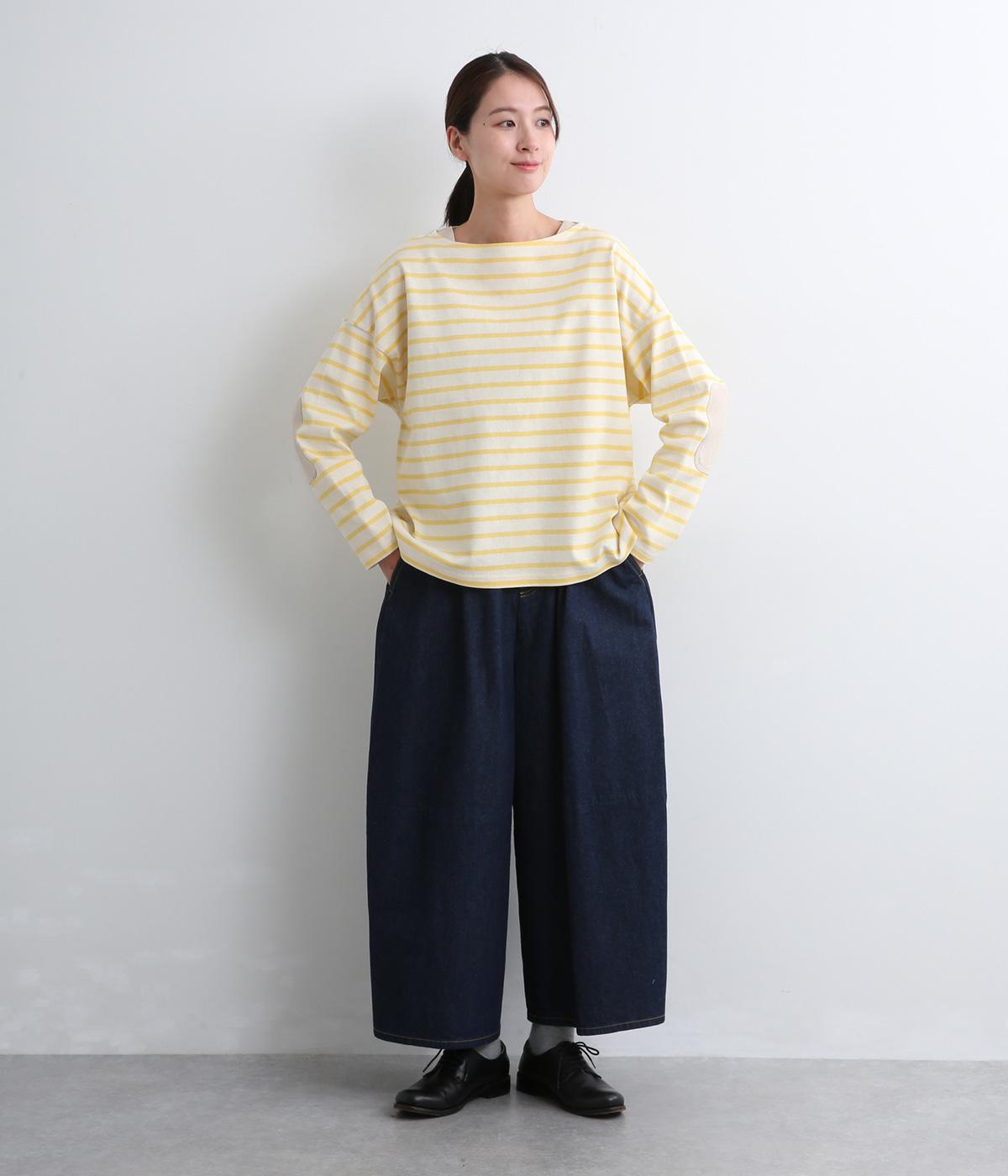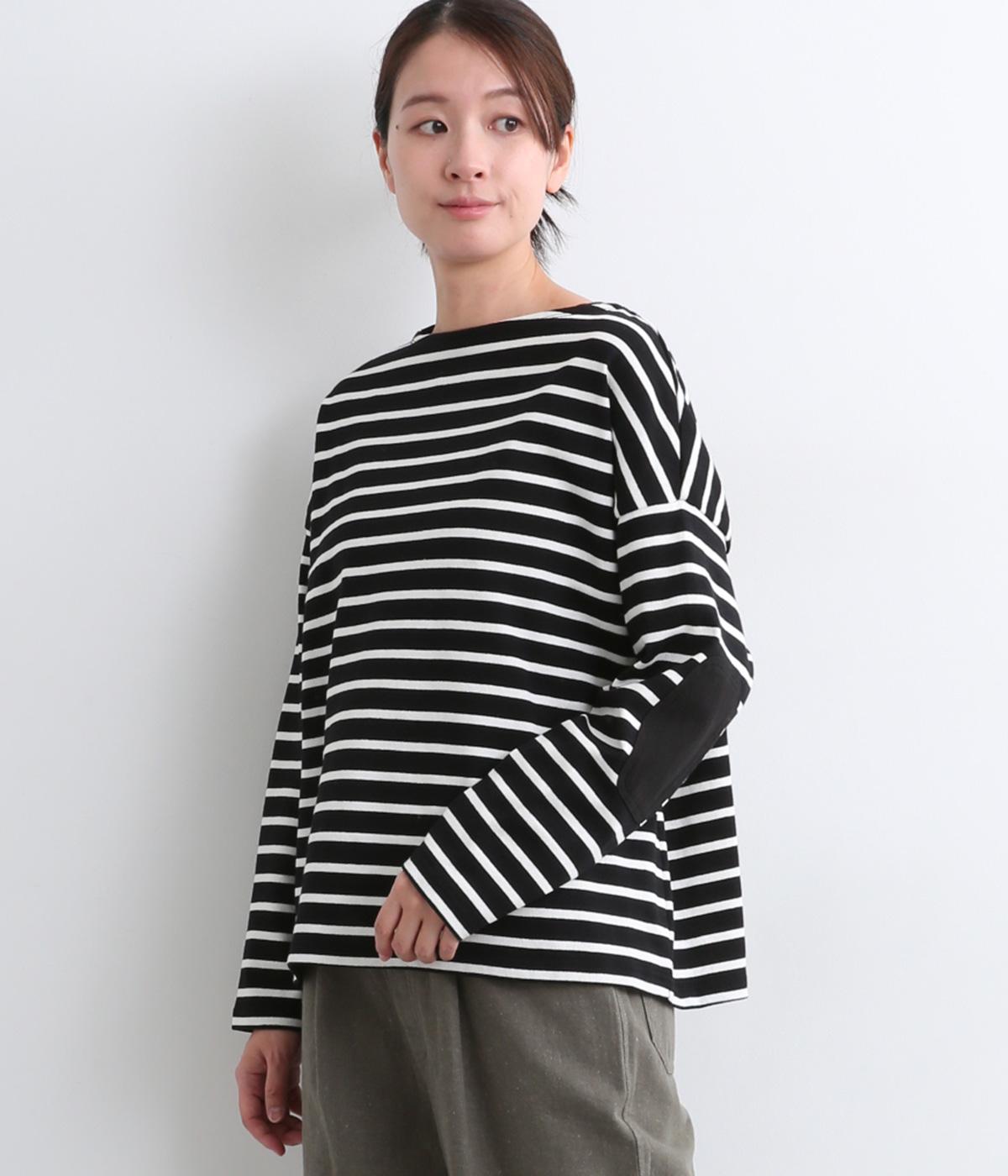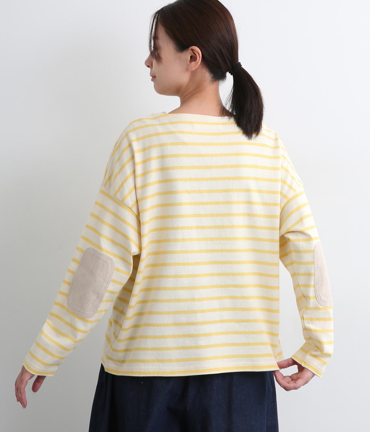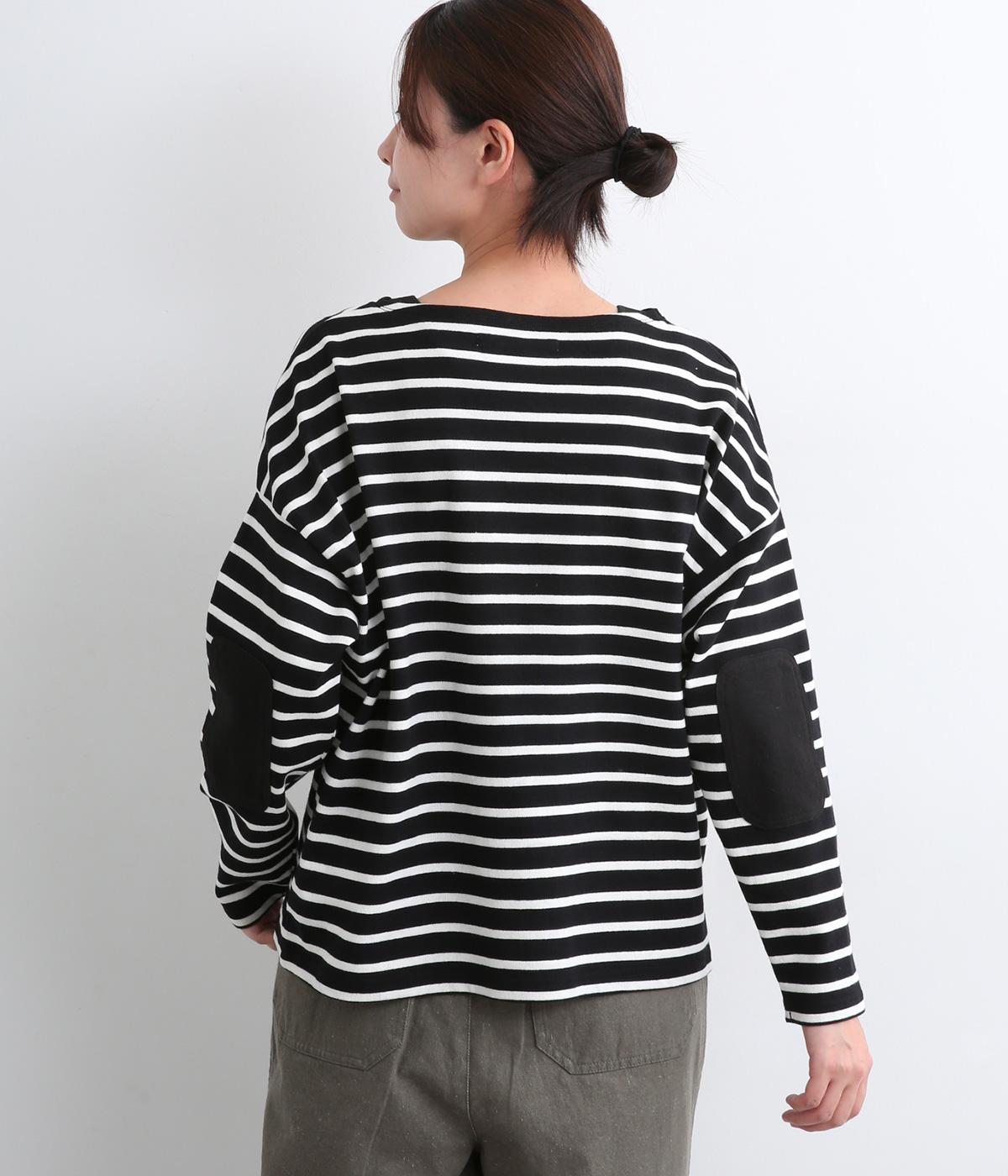ボートネックにボーダー柄が特徴のバスクシャツにエルボーパッチをつけてお洒落な遊び心を追加。ゆとりのあるボックスシルエットでとことんカジュアルにまとめ、デイリーに着こなしやすく仕立てました。