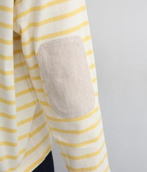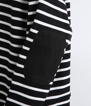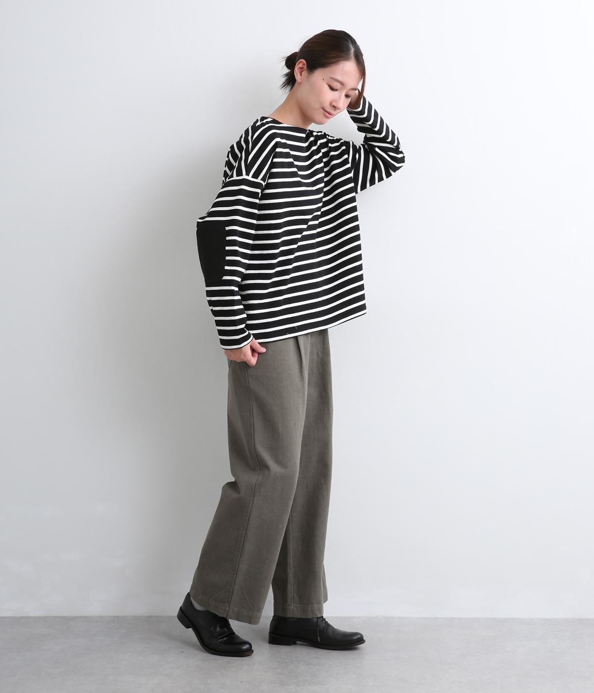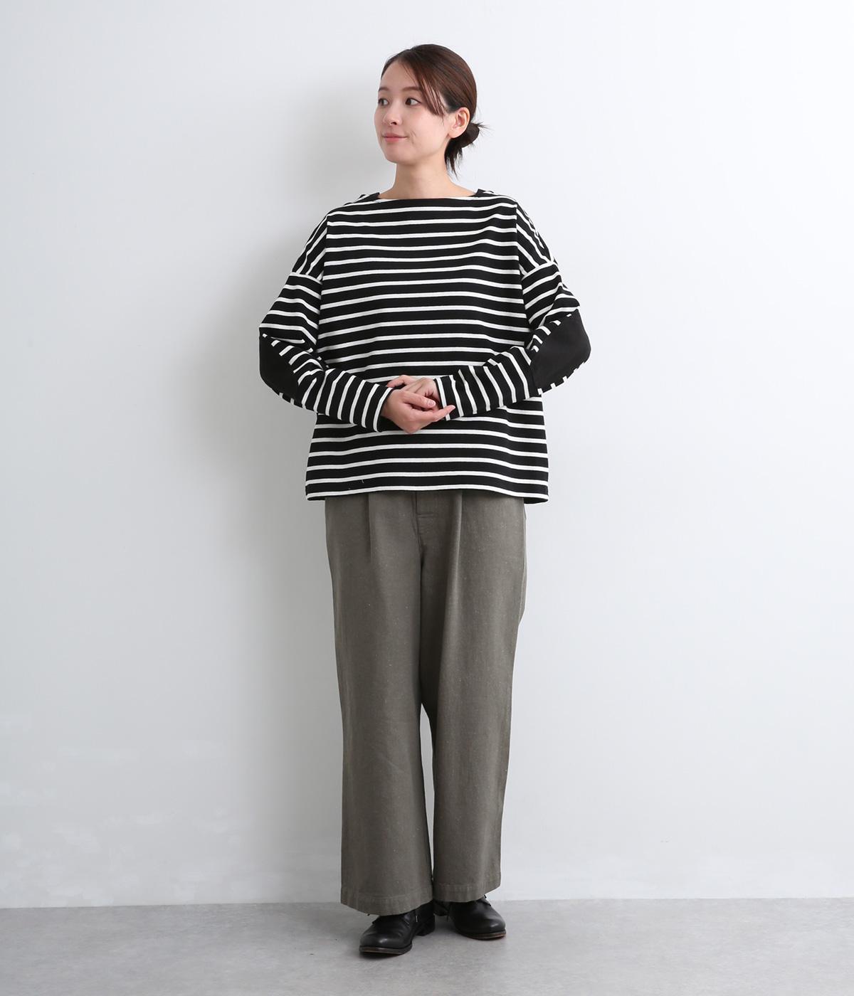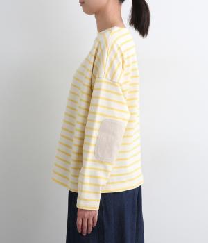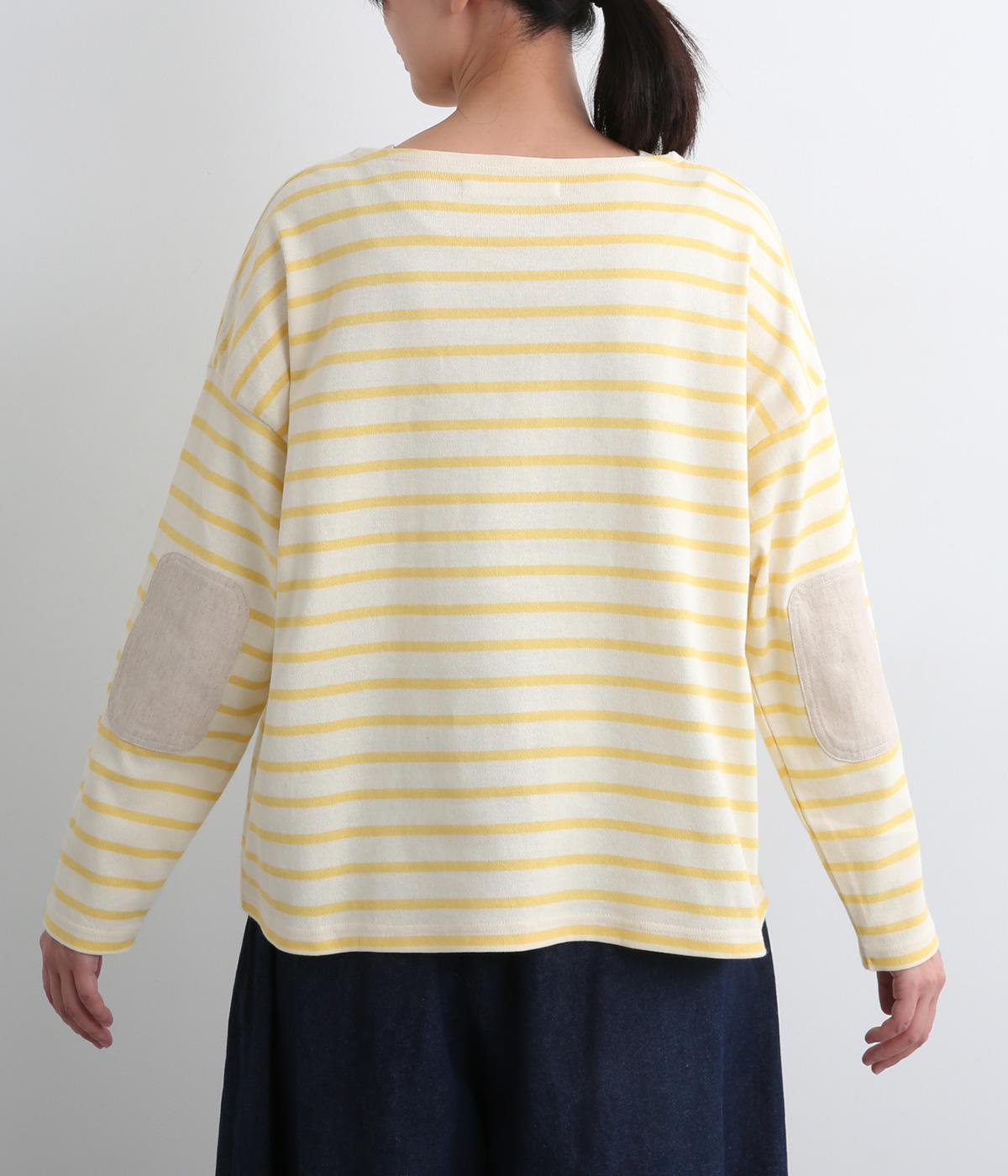 ボートネックにボーダー柄が特徴のバスクシャツにエルボーパッチをつけてお洒落な遊び心を追加。ゆとりのあるボックスシルエットでとことんカジュアルにまとめ、デイリーに着こなしやすく仕立てました。