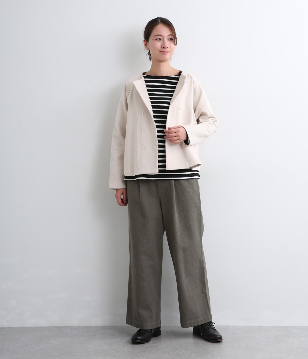 ラフ&ナチュラルな表面感が特徴のコットン生地を採用。適度にしっかりとして伸びも良く、中厚手生地でロングシーズン活躍。エルボーパッチは綿麻の異素材をセレクト。
