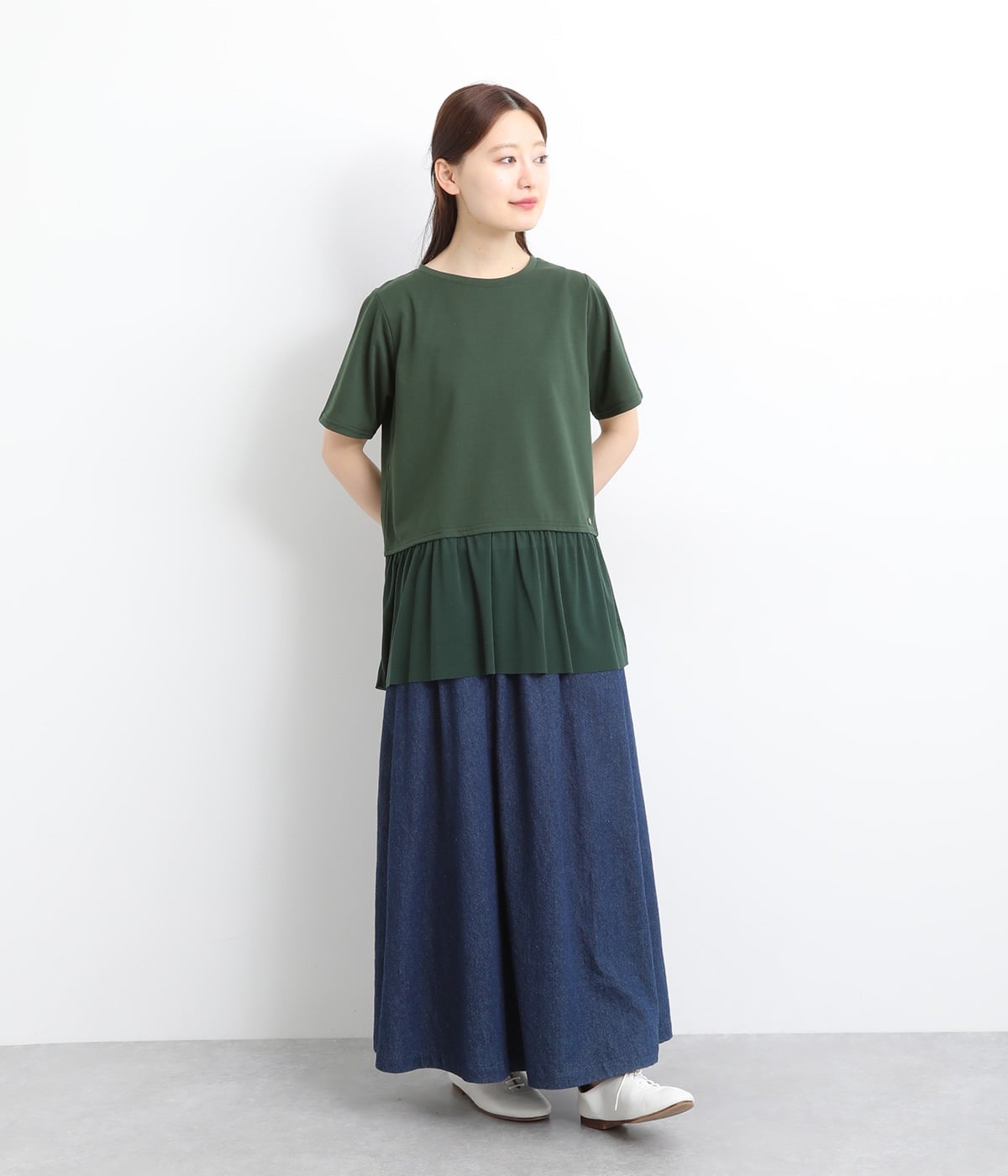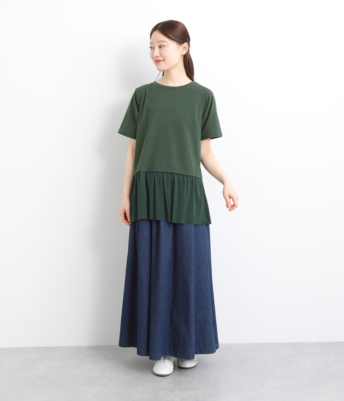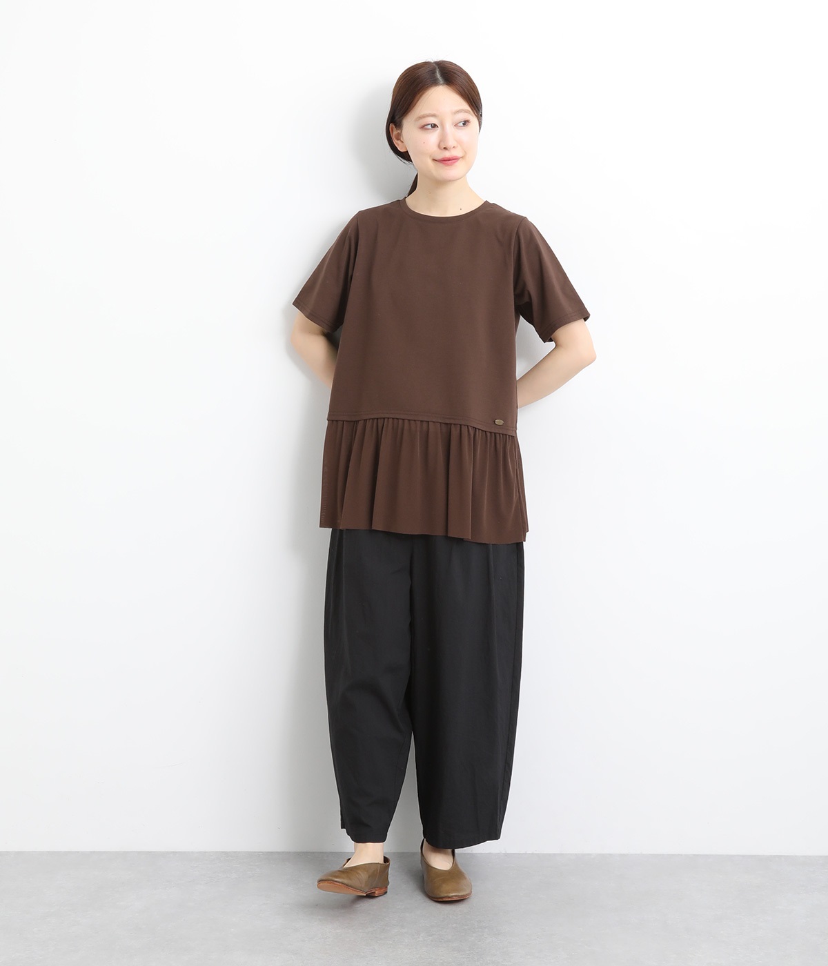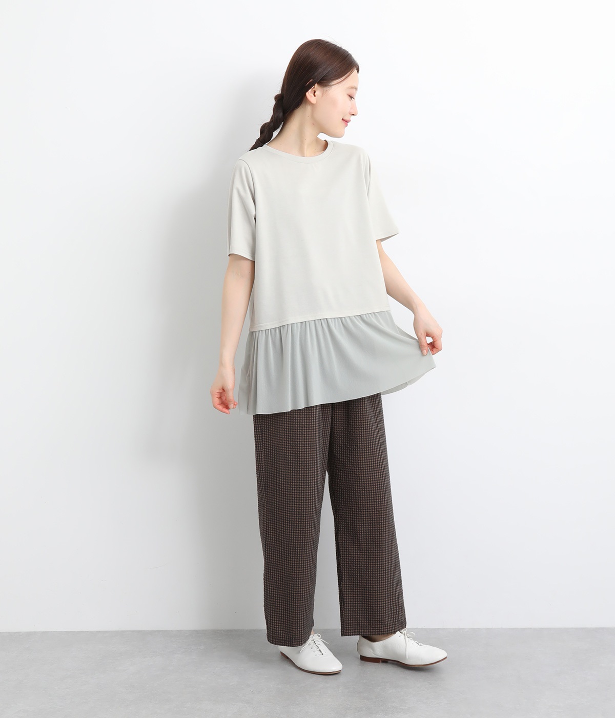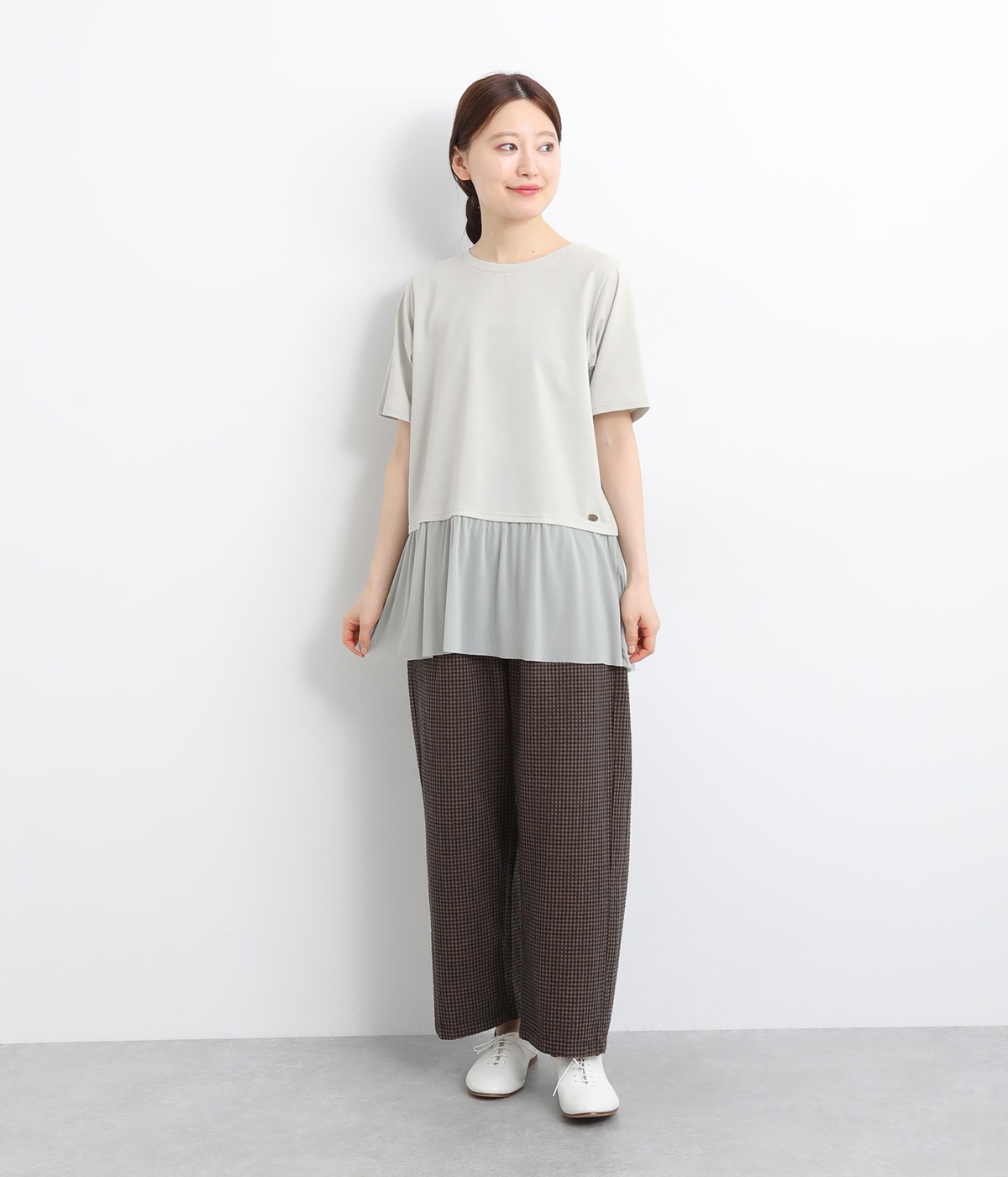 裾にチュールを合わせたレイヤード風デザインが着映えするプルオーバーです。シンプルなTシャツをベースにしているのでスタイリングしやすいのもグッドポイント。カットソー部分はやや短めにしていてバランスよく着こなせます。