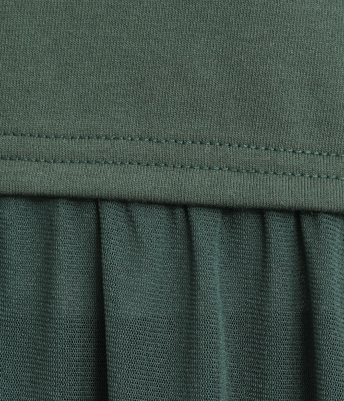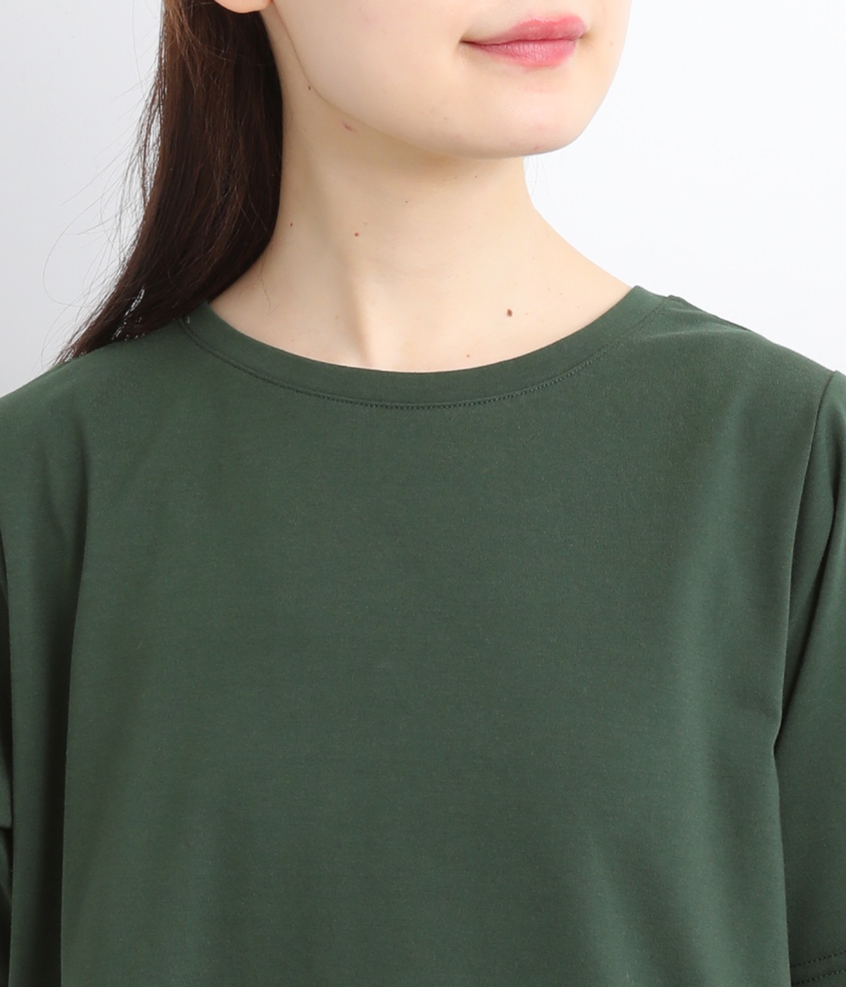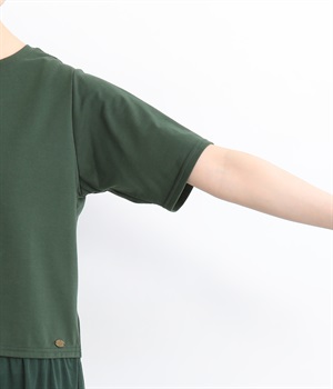 やわらかくもほどよくしっかりとした綿混カットソーに繊細なチュール生地を組み合わせました。どちらも伸びが良く着心地の良さをキープしています。