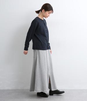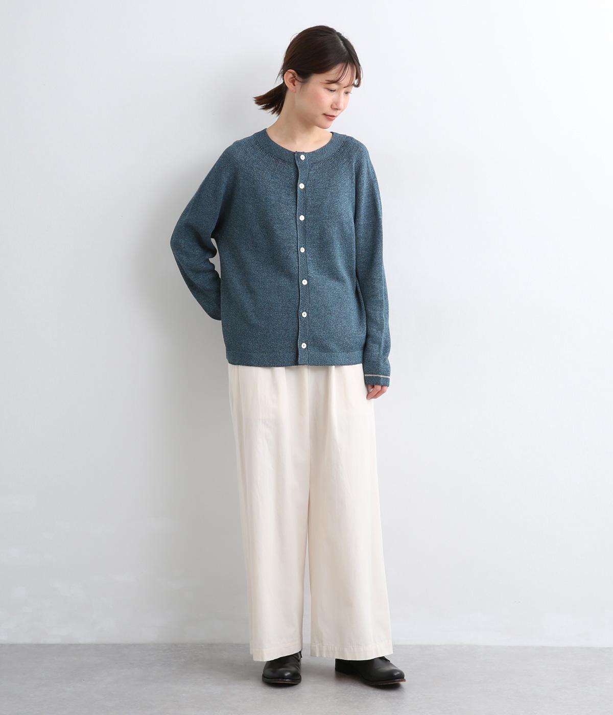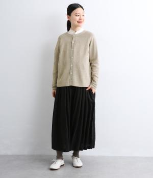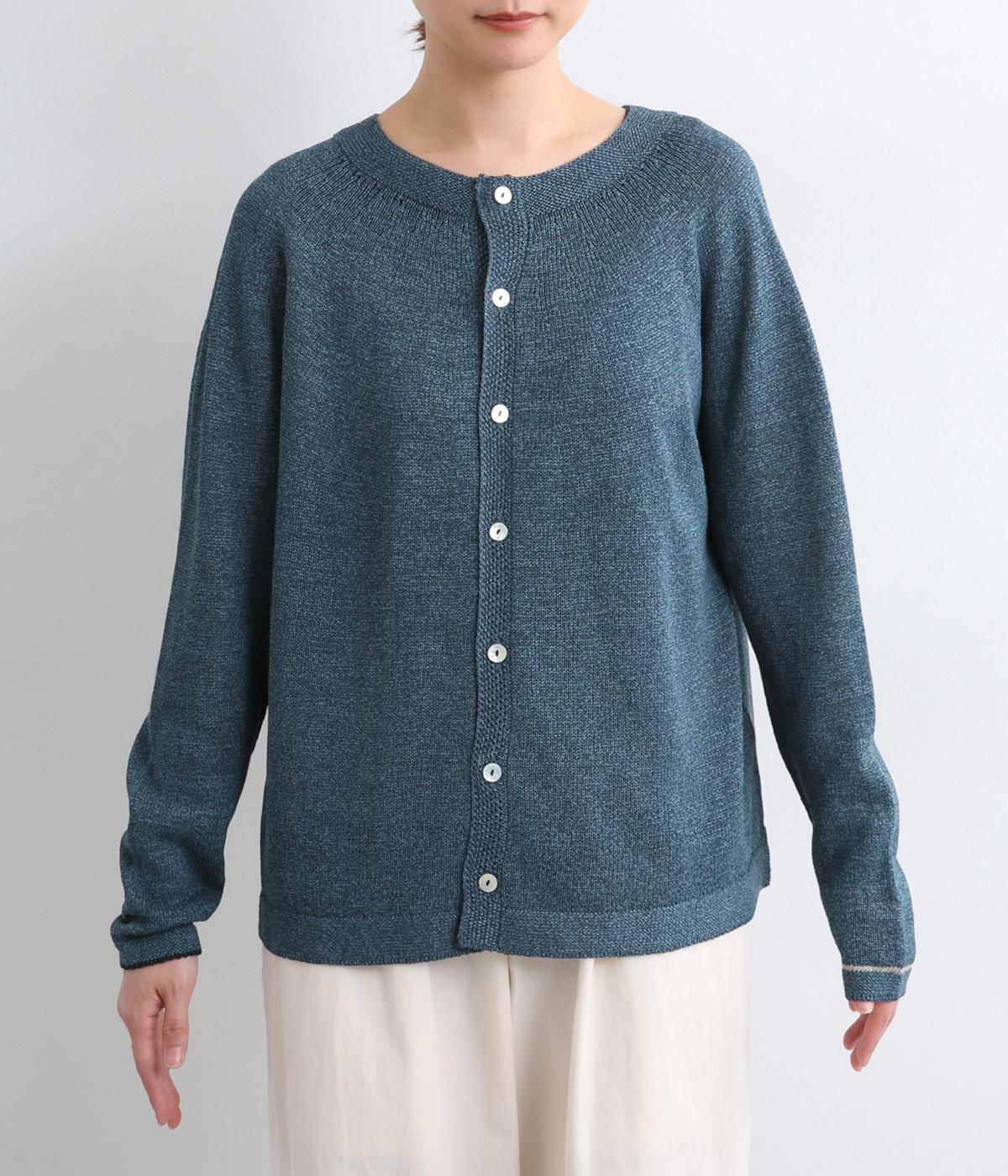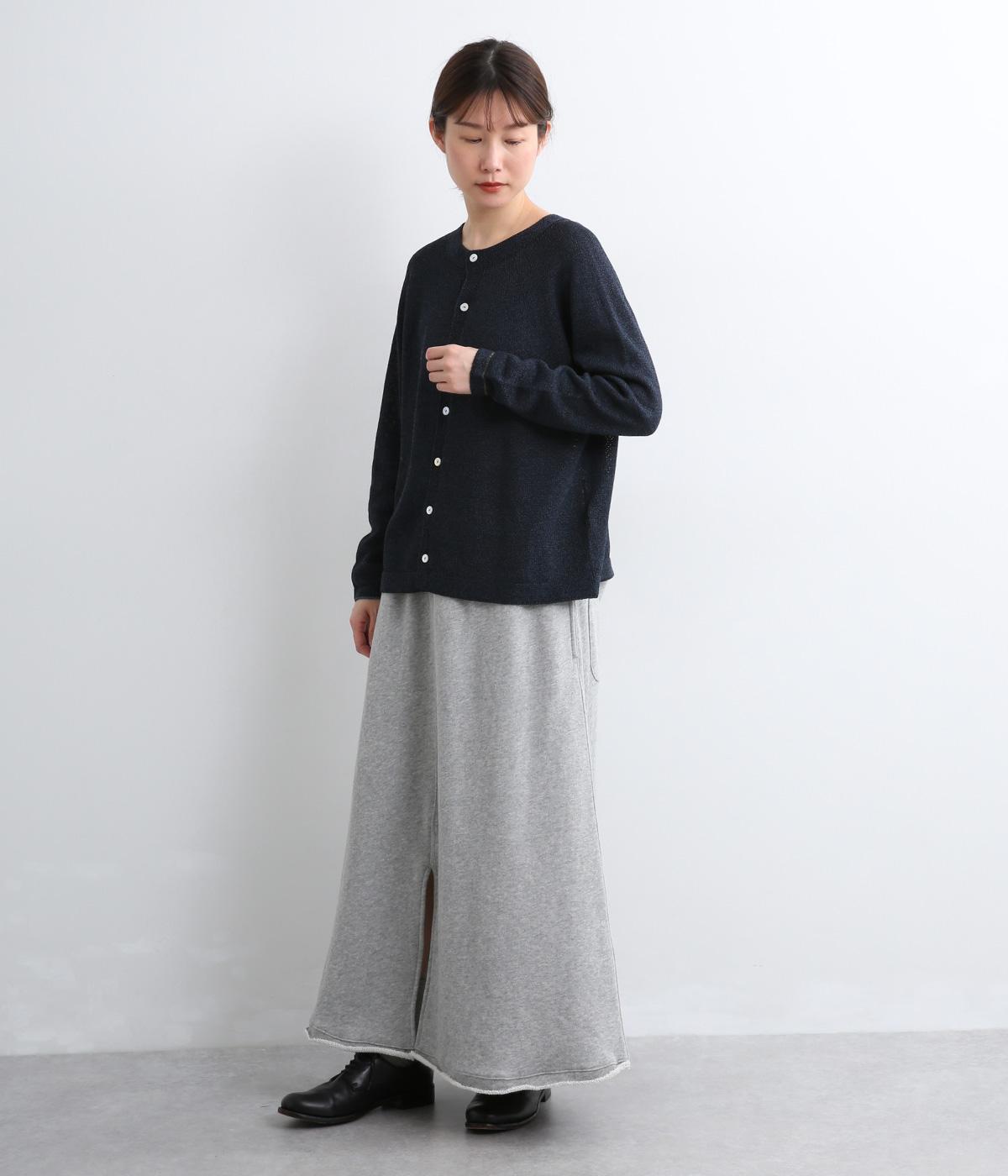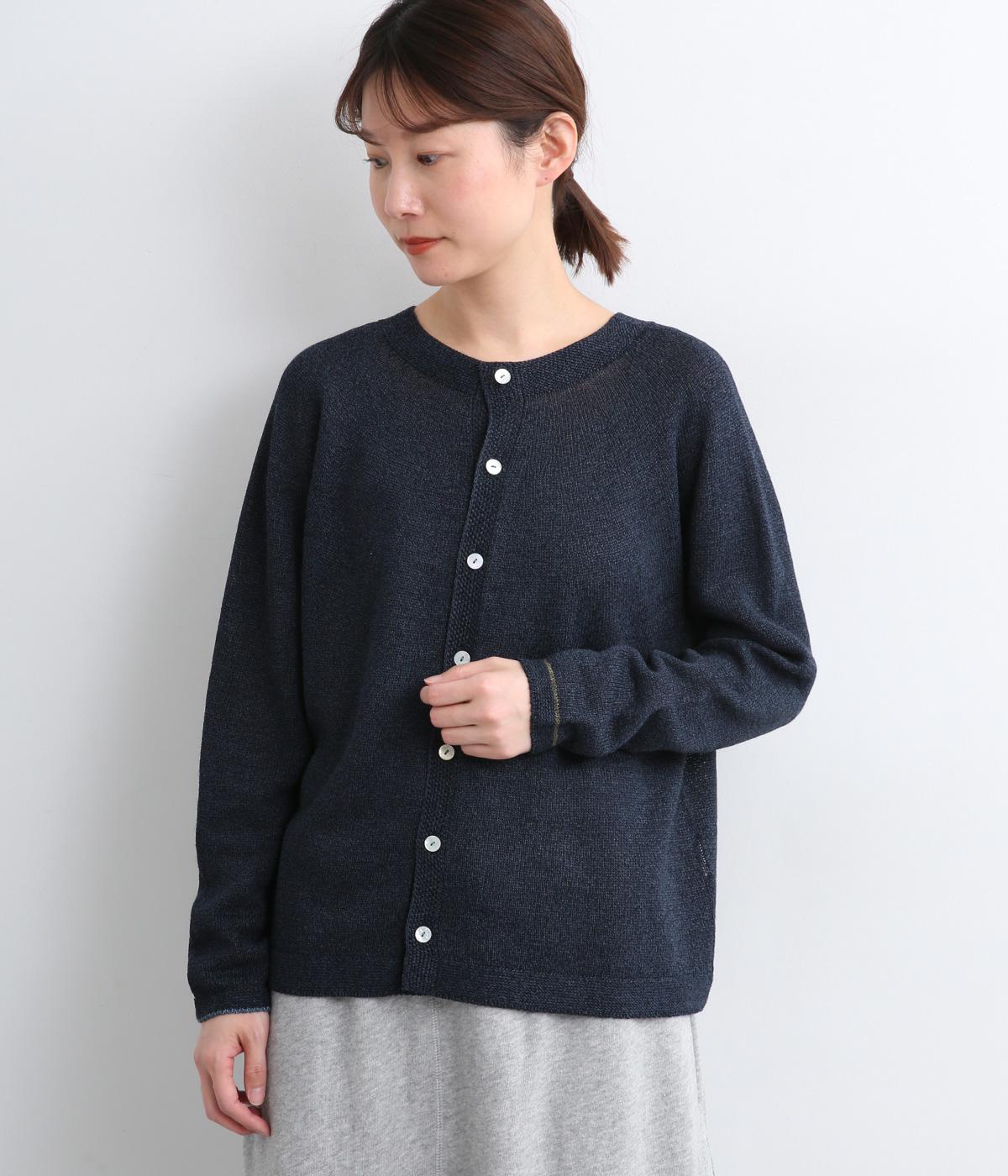 ホールガーメントで仕立てたカーディガンは、縫い目が少なく、自然な落ち感とやさしいフィット感をたのしめます。定番シルエットながら、ざっくり編みの透け感があるので、見た目にも涼感があります。左右の袖で異なる配色ラインを施し、さりげないアクセントに。上品な貝ボタンが、全体を落ち着いた印象にまとめています。