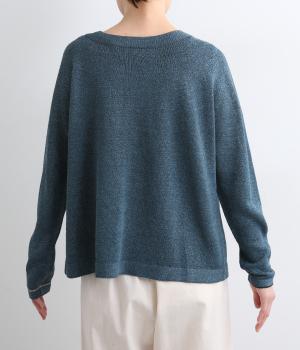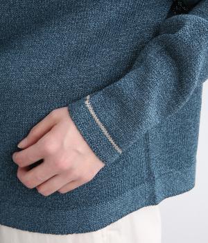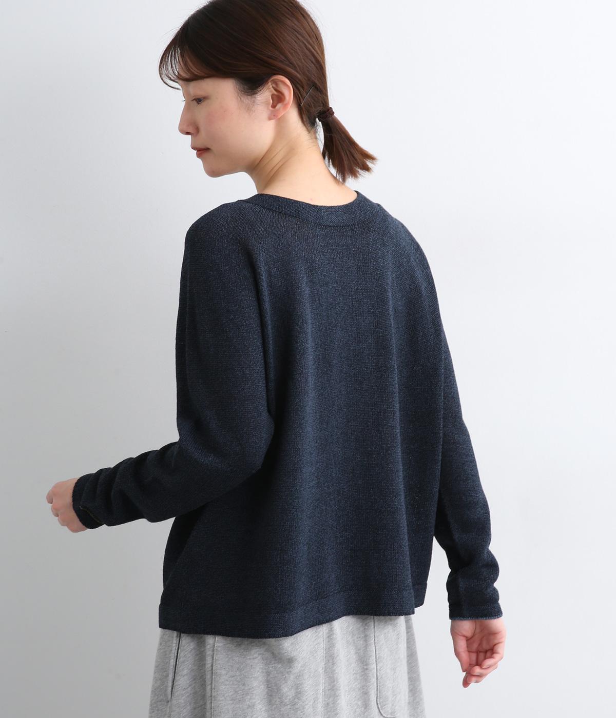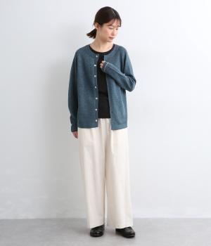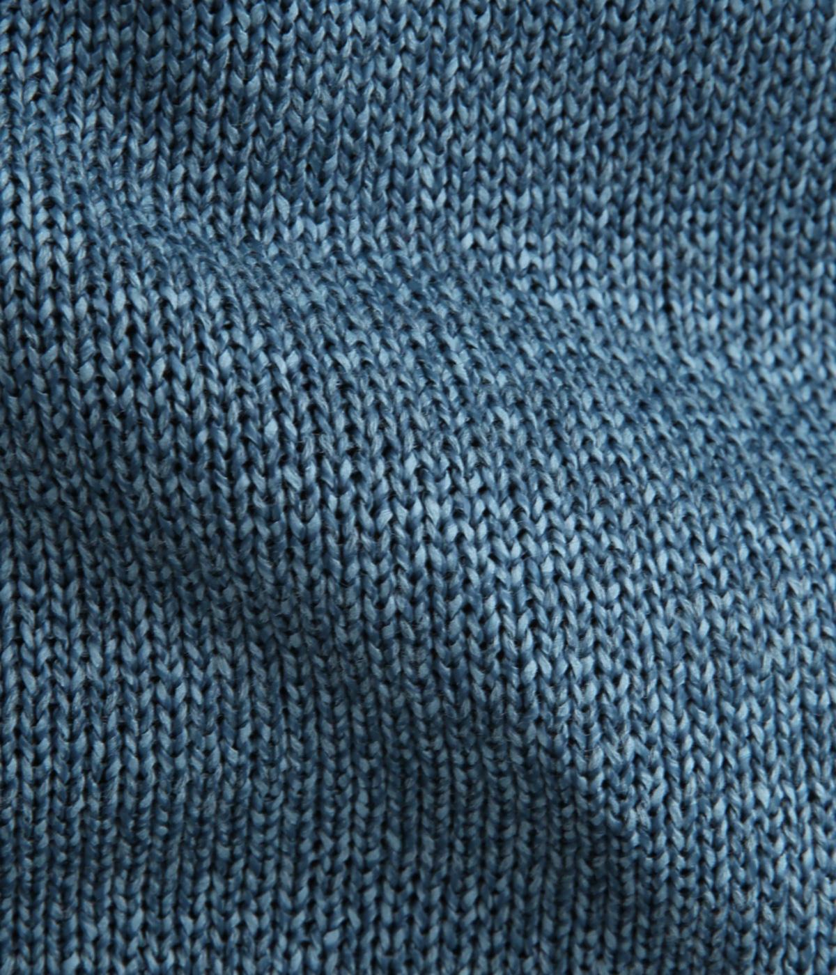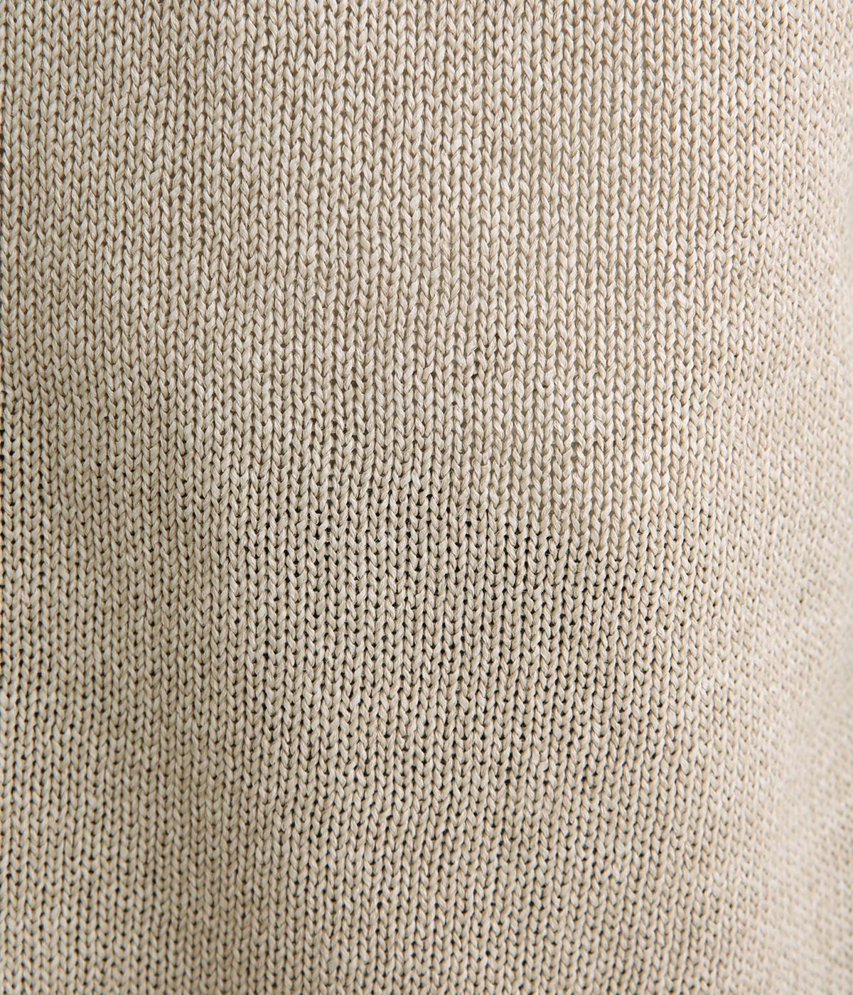ペーパーコットンならではのドライな風合いが、清涼感のある着心地を叶えます。軽くて肌にまとわりつきにくいので、長時間の着用も快適です。ざっくりとした編みの表情が、素材のよさを引き立てています。