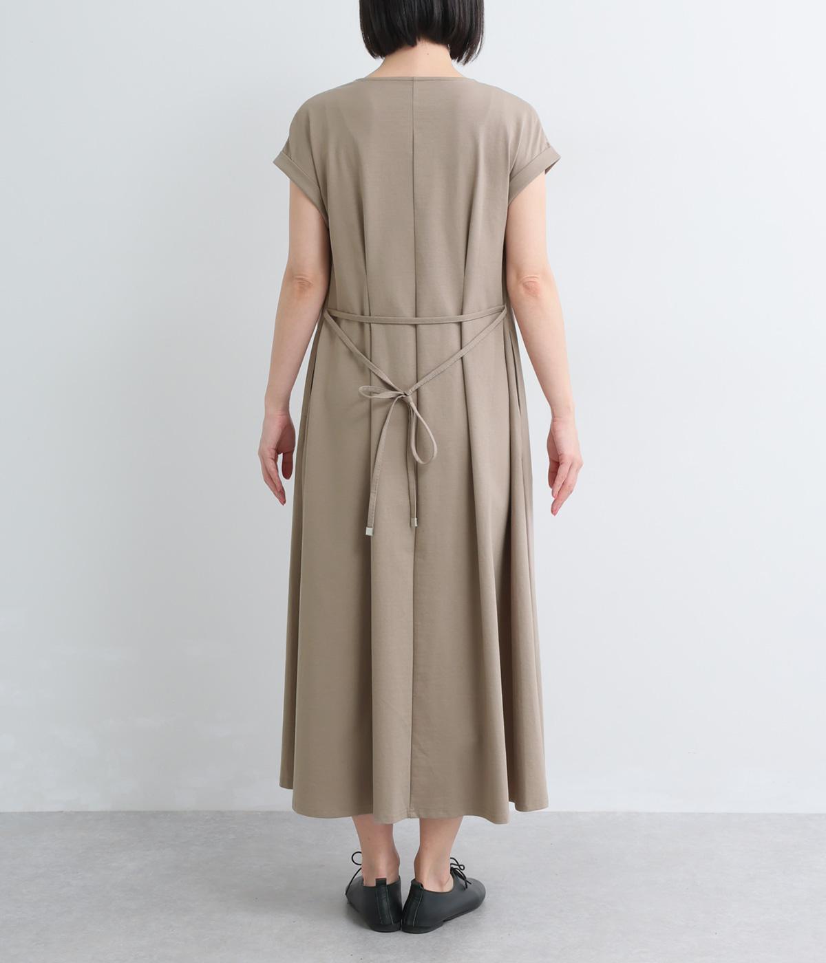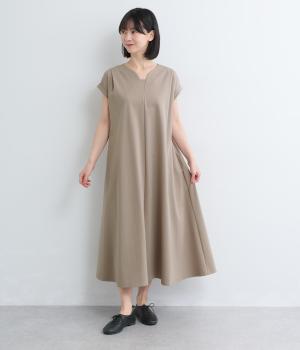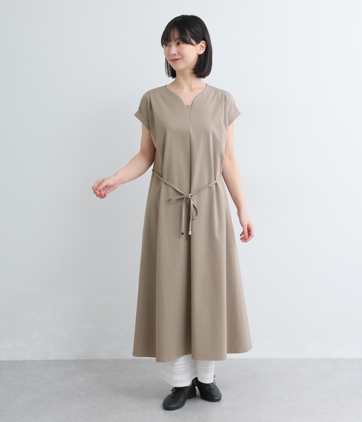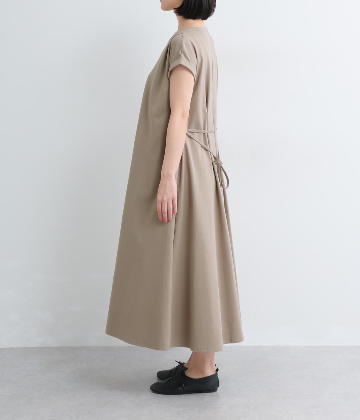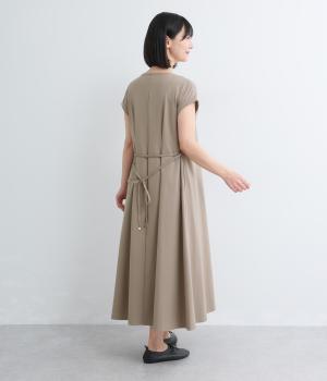 リラックスした着心地を約束するカットソーワンピース。落ち感のある素材に自然なドレープを生むフレアシルエット、品よく抜け感を与えるキーネックが優雅で女性らしく仕上がっています。ウエストリボンでシルエットの調節も可能。