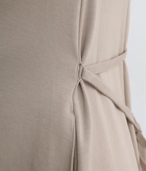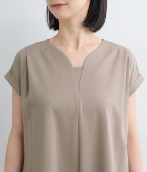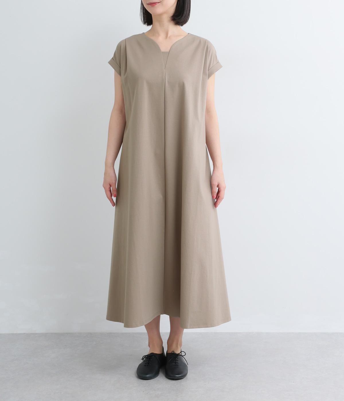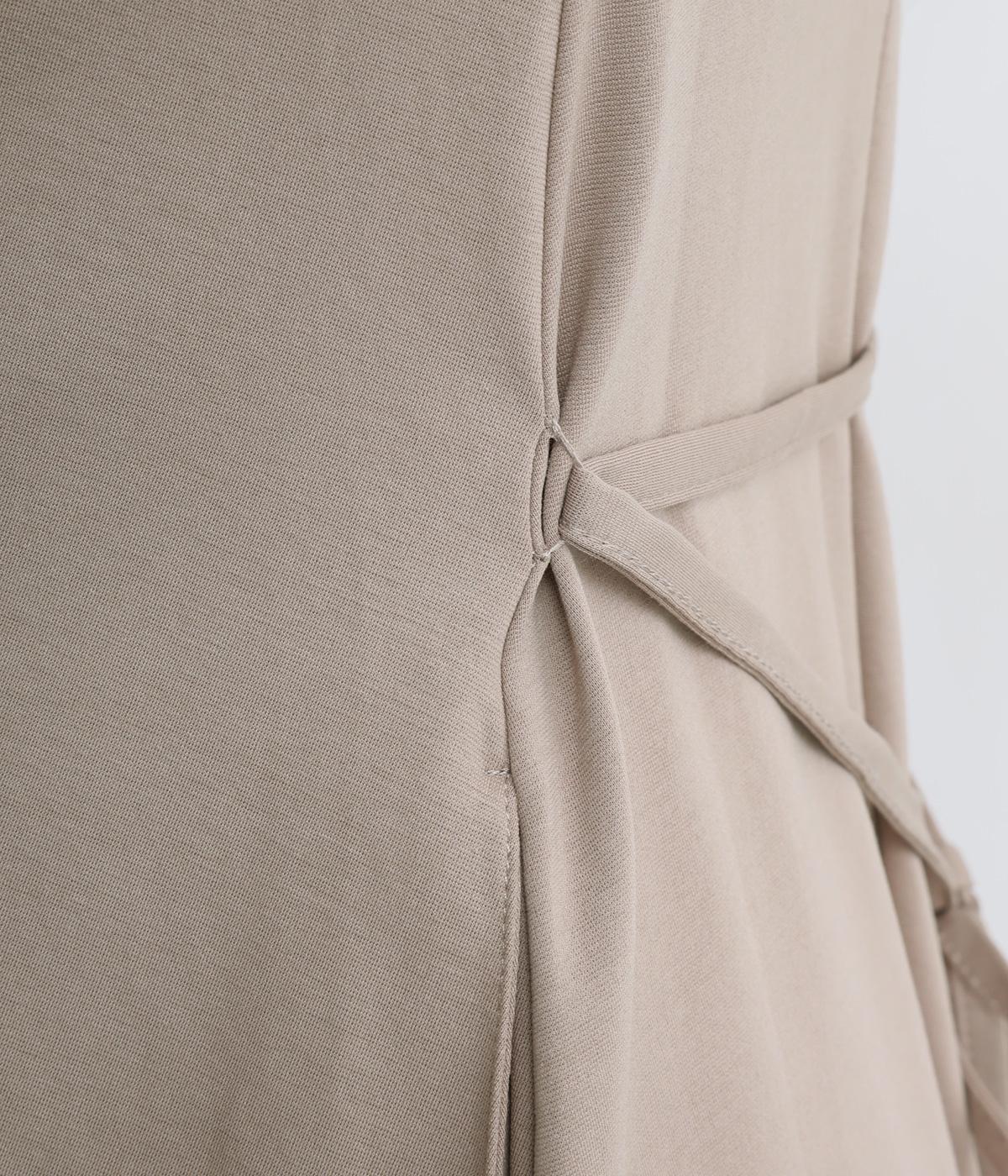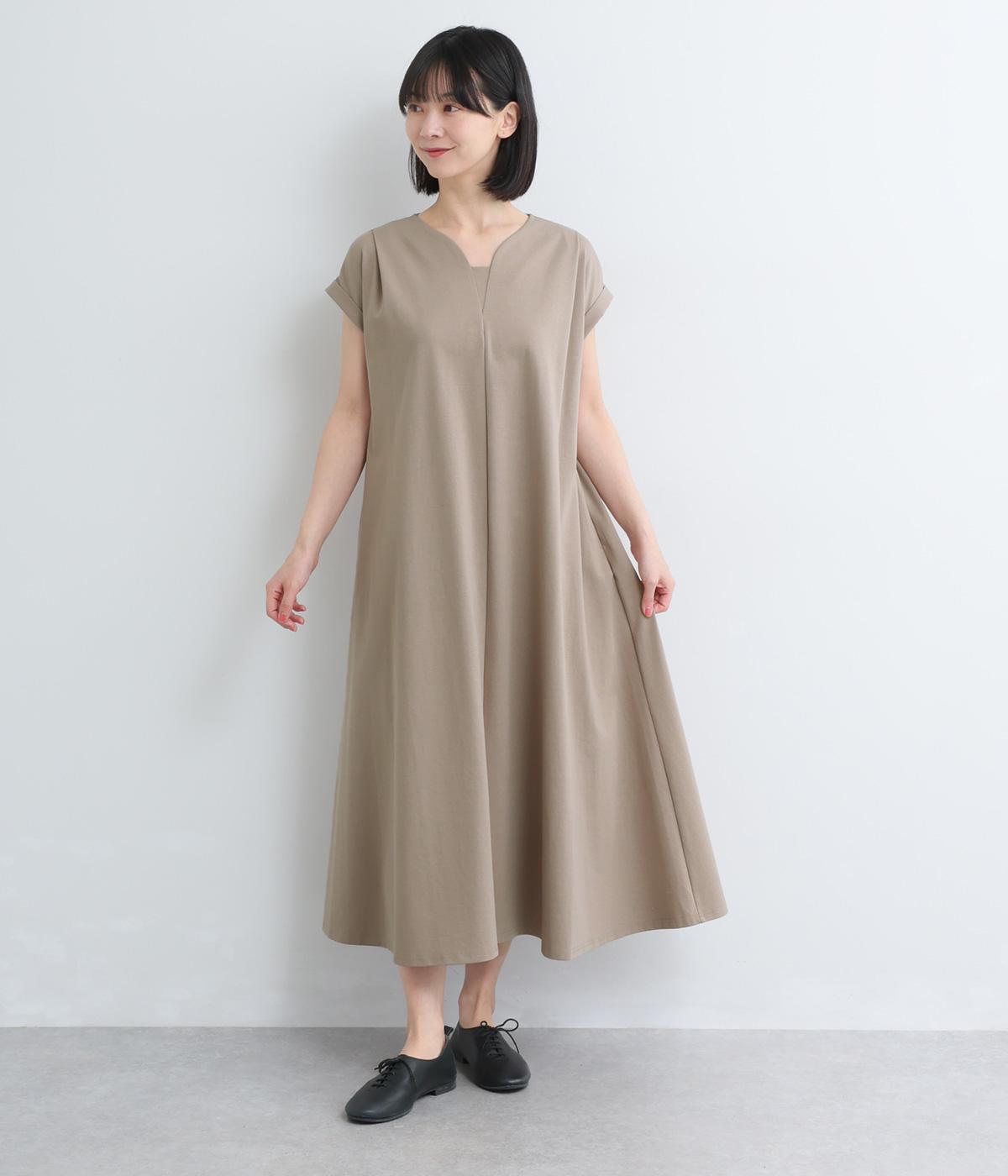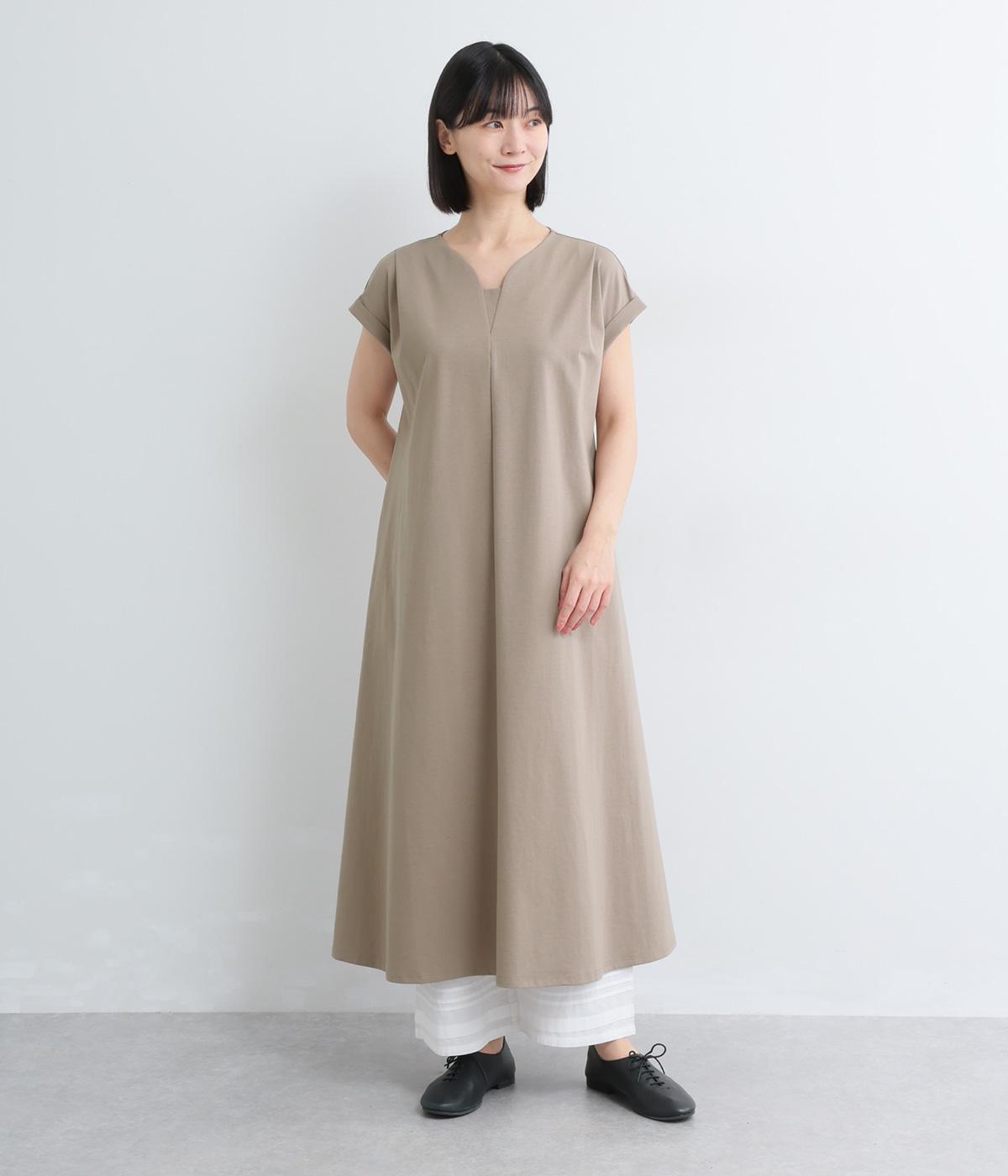リラックスした着心地を約束するカットソーワンピース。落ち感のある素材に自然なドレープを生むフレアシルエット、品よく抜け感を与えるキーネックが優雅で女性らしく仕上がっています。ウエストリボンでシルエットの調節も可能。