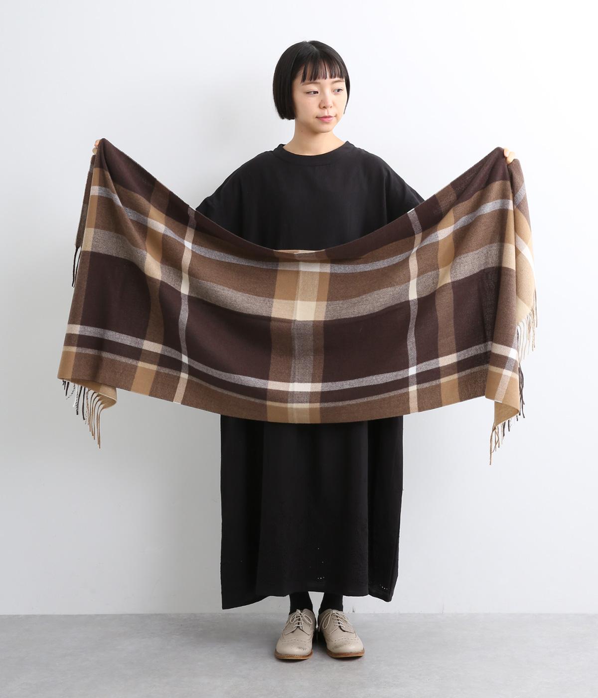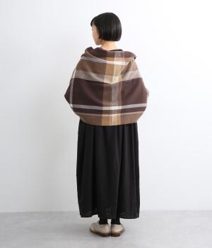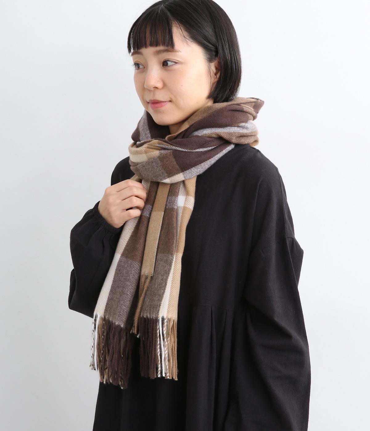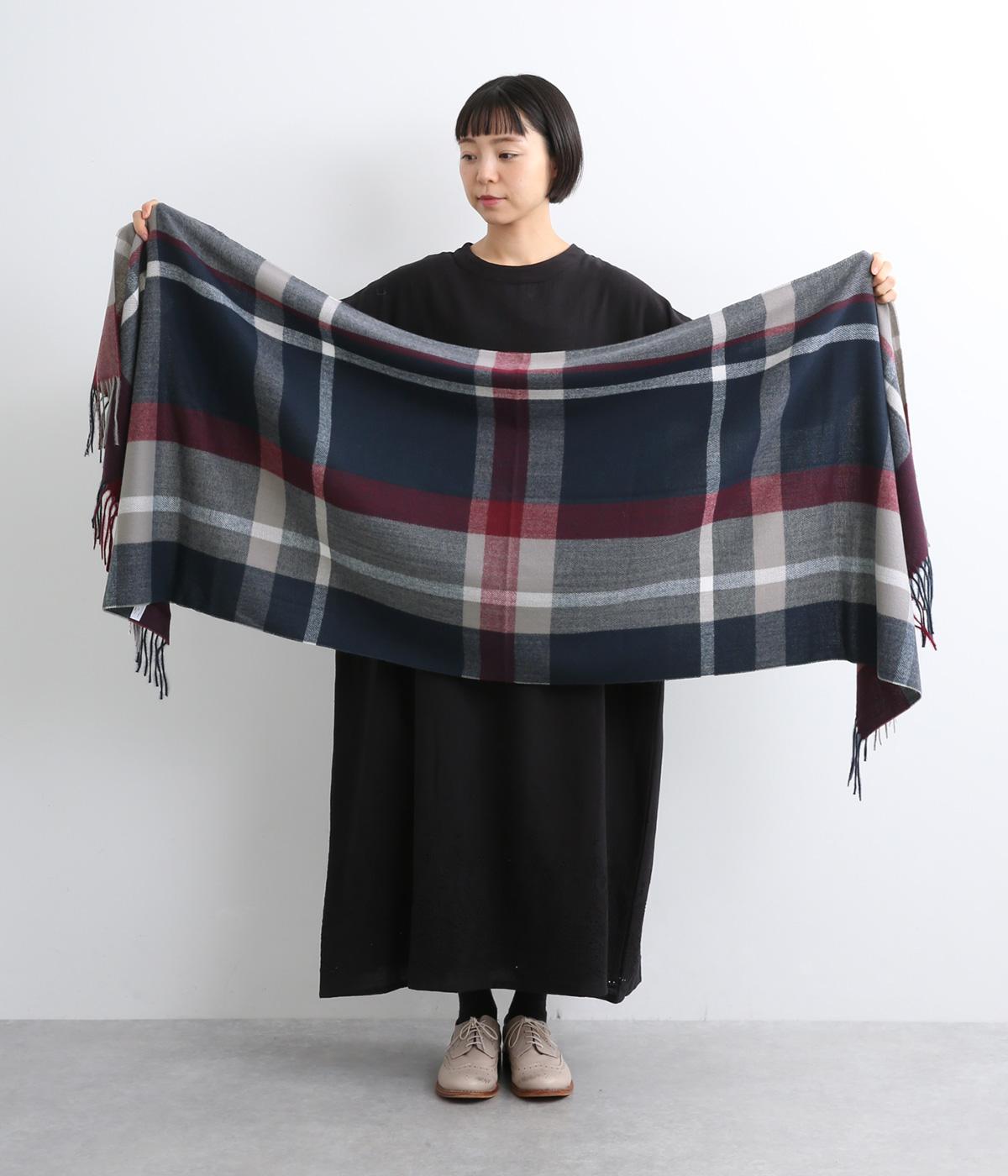 使い勝手のいいダークトーン配色にすこしポイントカラーを入れた、大人なチェック柄が好印象。ベーシックな細長にフリンジつきのデザインも◎。肩にかけるだけでもさまになり、首に巻いたときのボリューム感もちょうどいい仕上がりです。