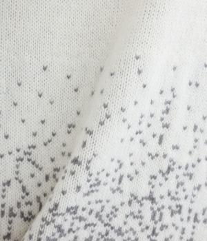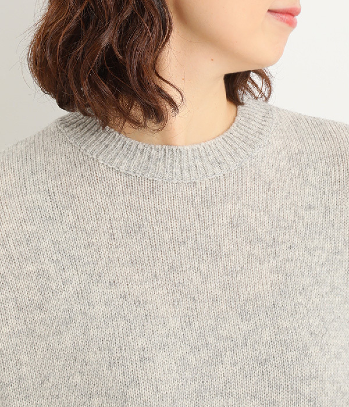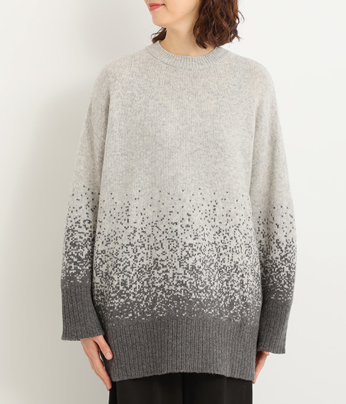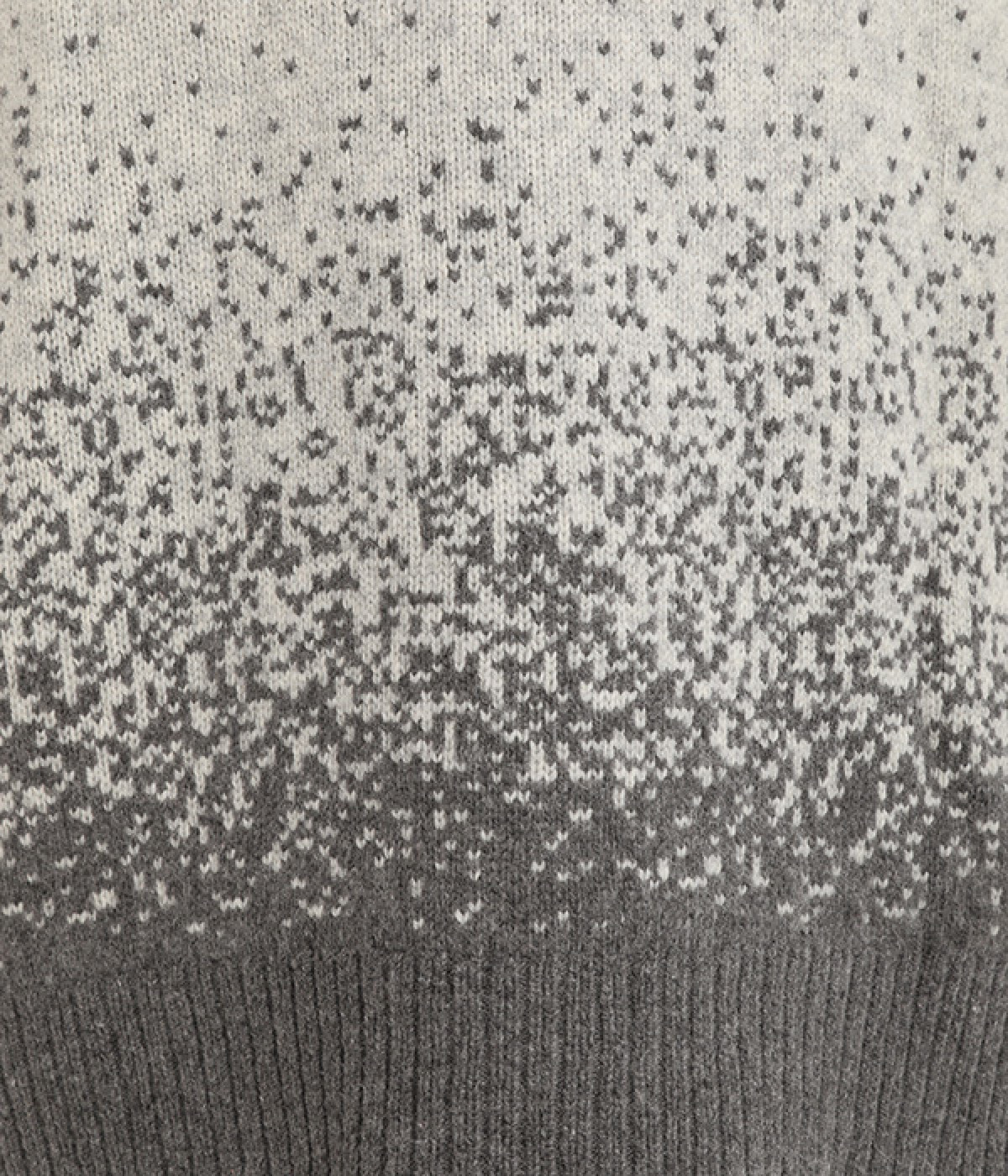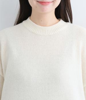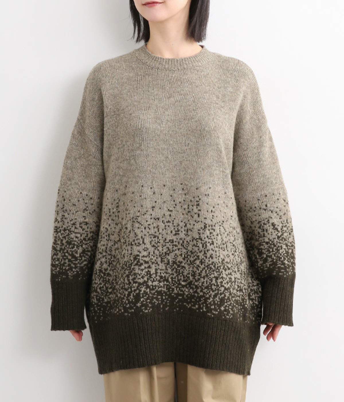 ウールをメインに混紡した保温性の高いニットです。柄部分に自然と厚みが出るので、お腹や腰まわりはよりあたたかな着用感。フラットな編地でほっこり感を軽減した大人らしい印象に仕上げました。