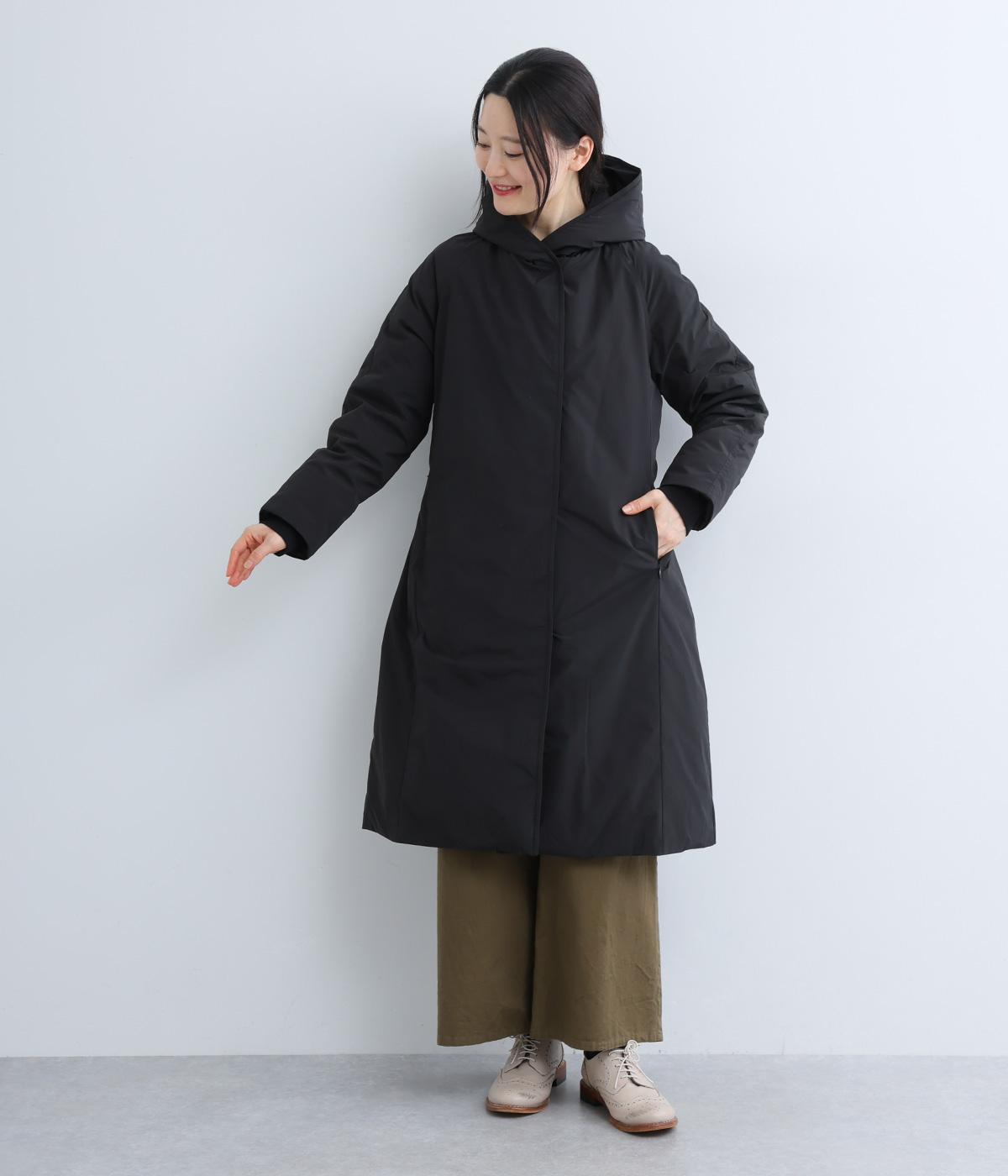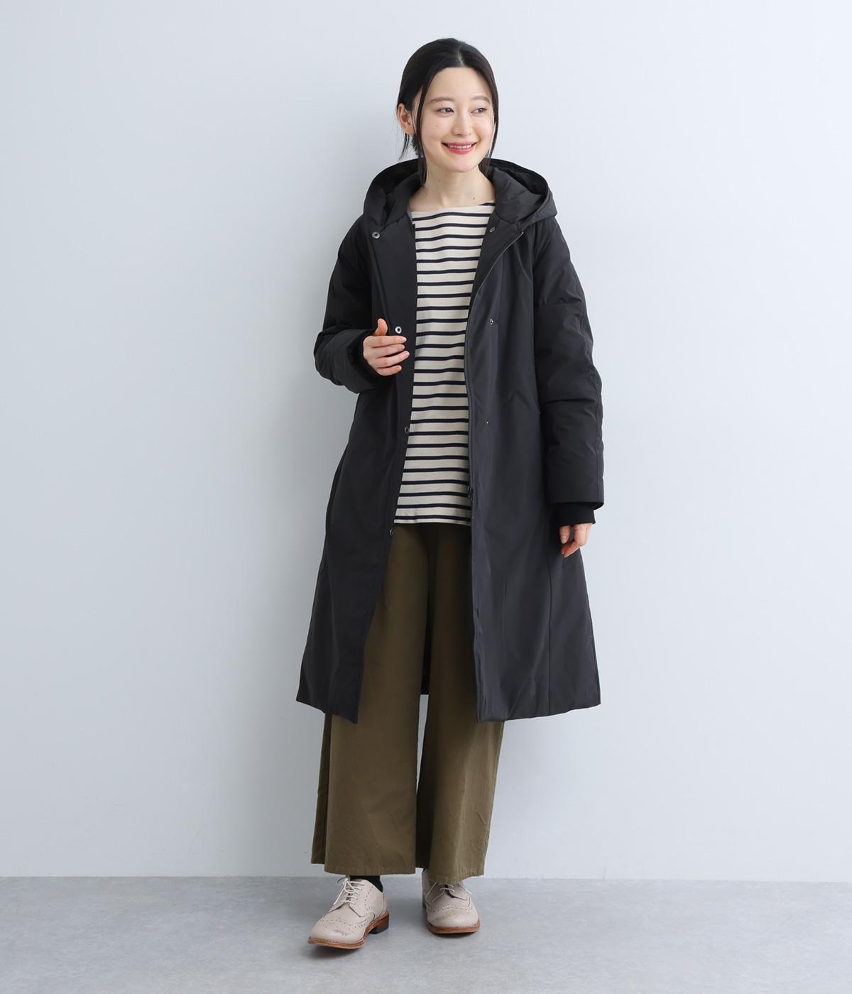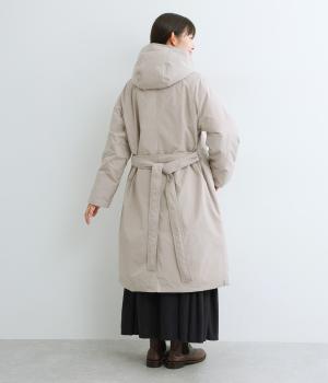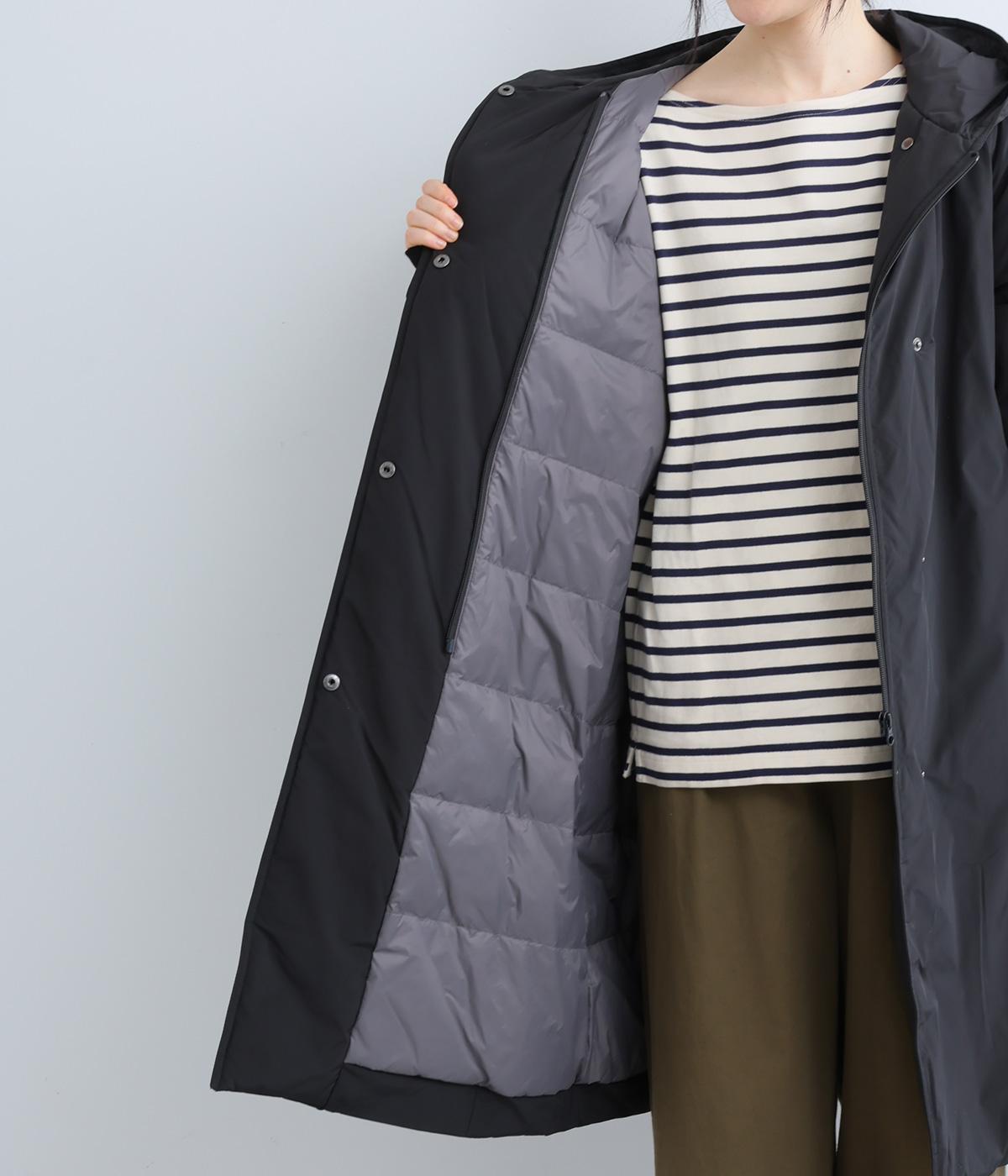 表地にはほんのりとした上品な光沢のあるポリエステル生地、裏地にはつるりとしたナイロンキルト生地を使用。フェザーに比べダウンの比率が高いのでとても軽くあたたかな着心地です。