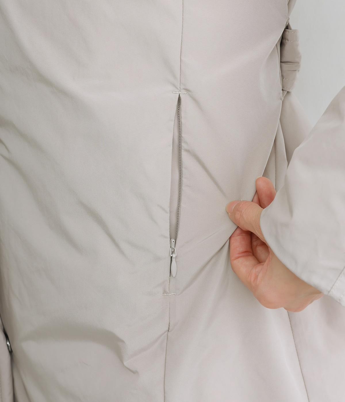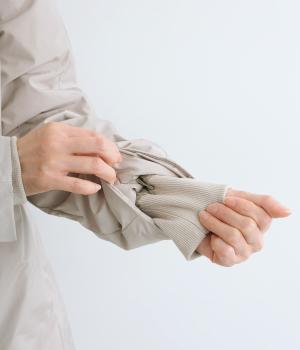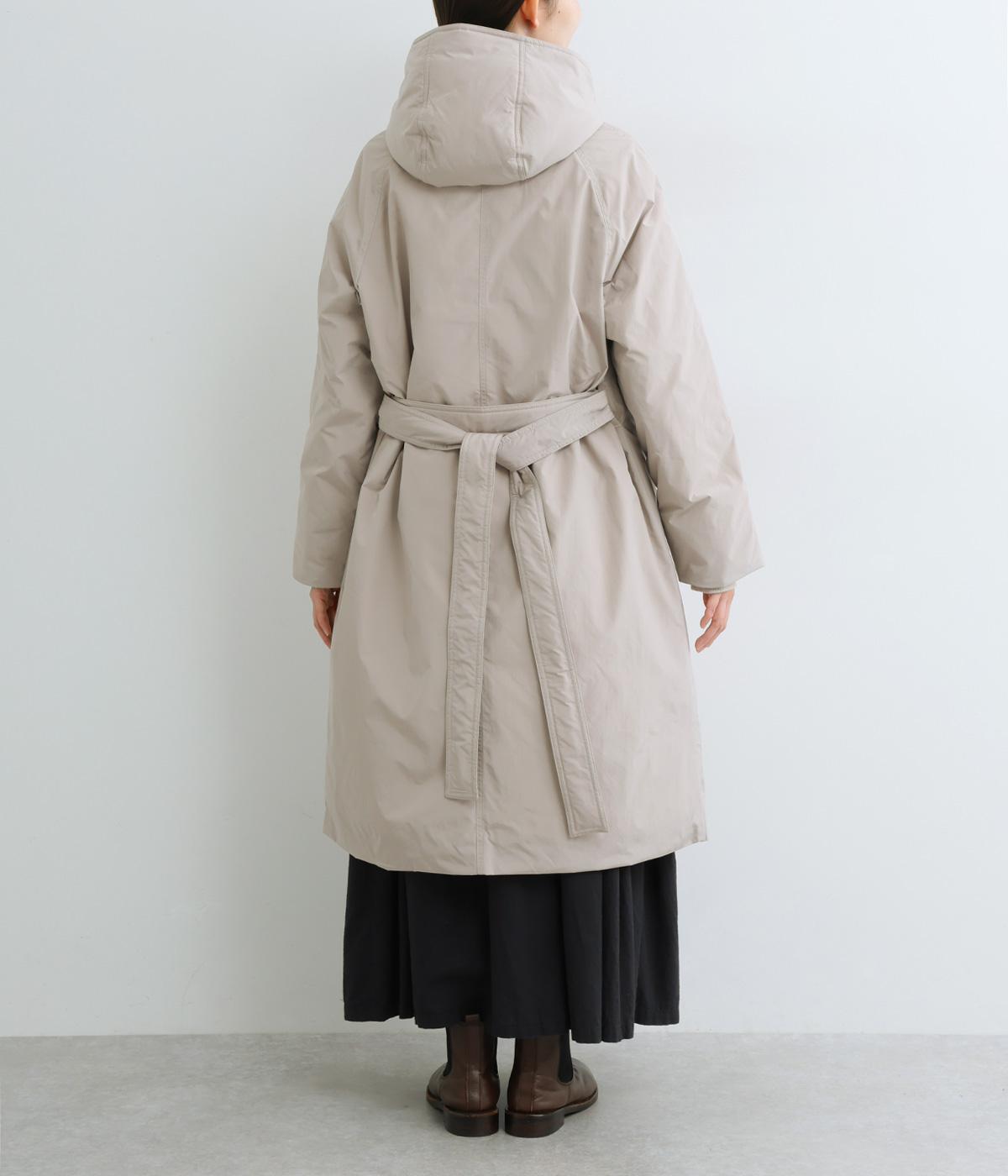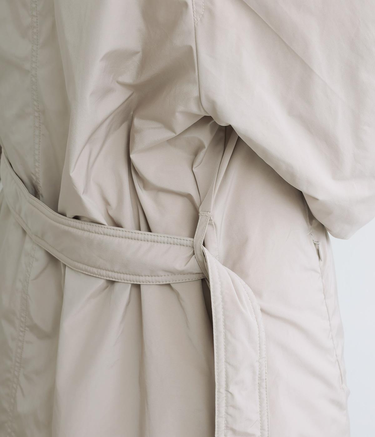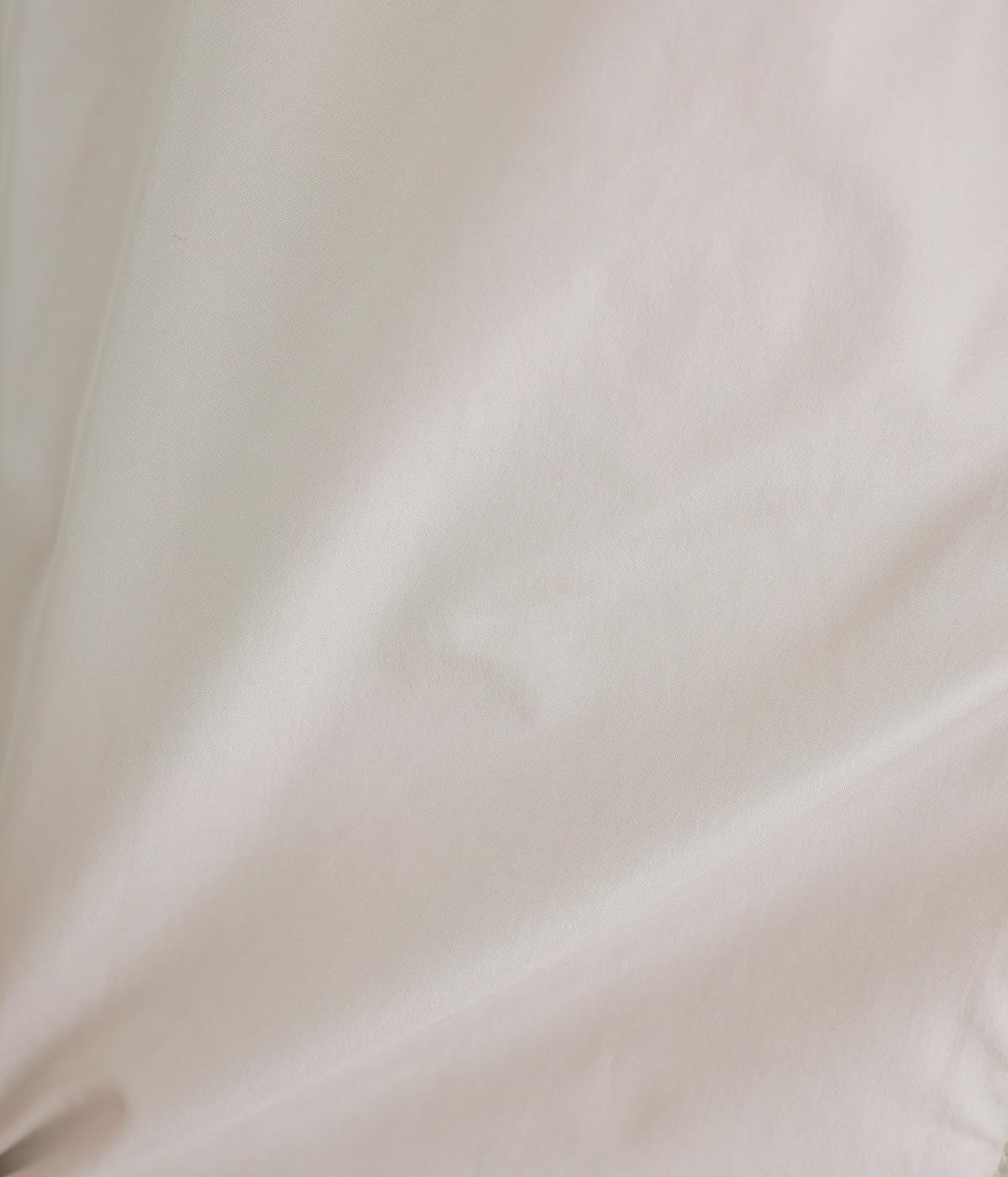 表地にはほんのりとした上品な光沢のあるポリエステル生地、裏地にはつるりとしたナイロンキルト生地を使用。フェザーに比べダウンの比率が高いのでとても軽くあたたかな着心地です。
