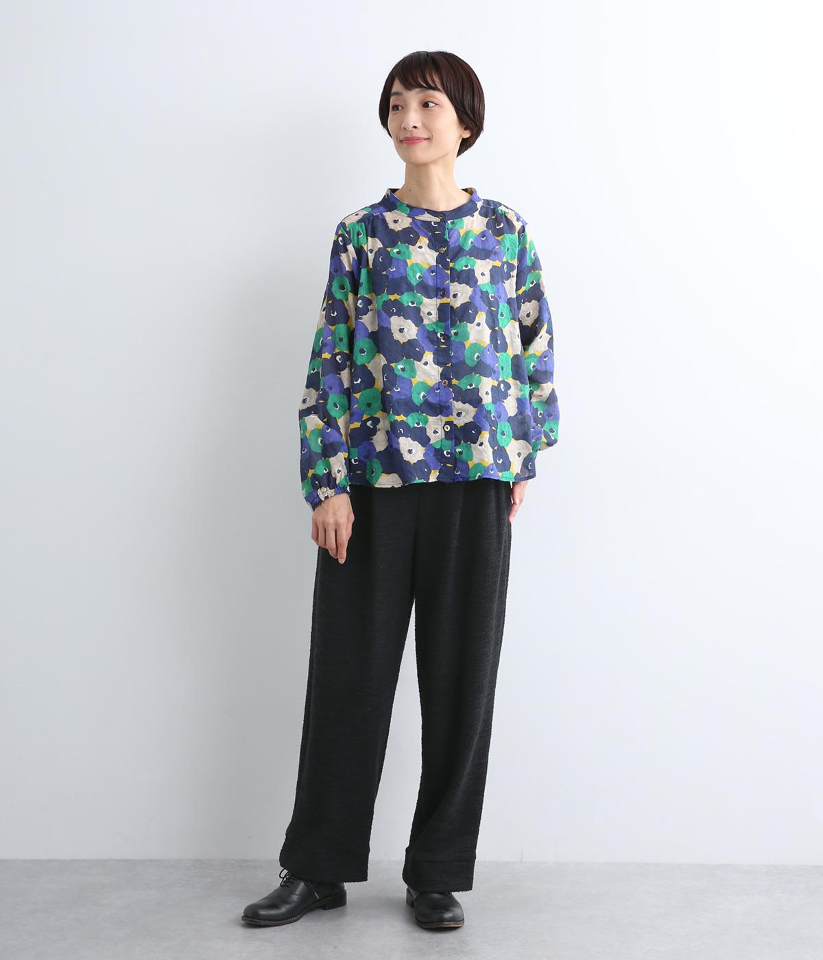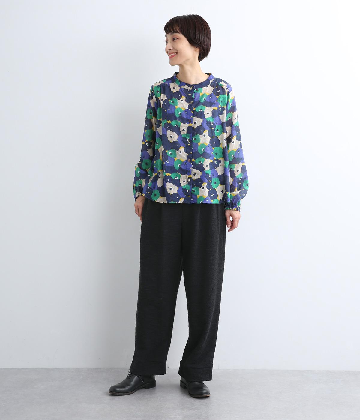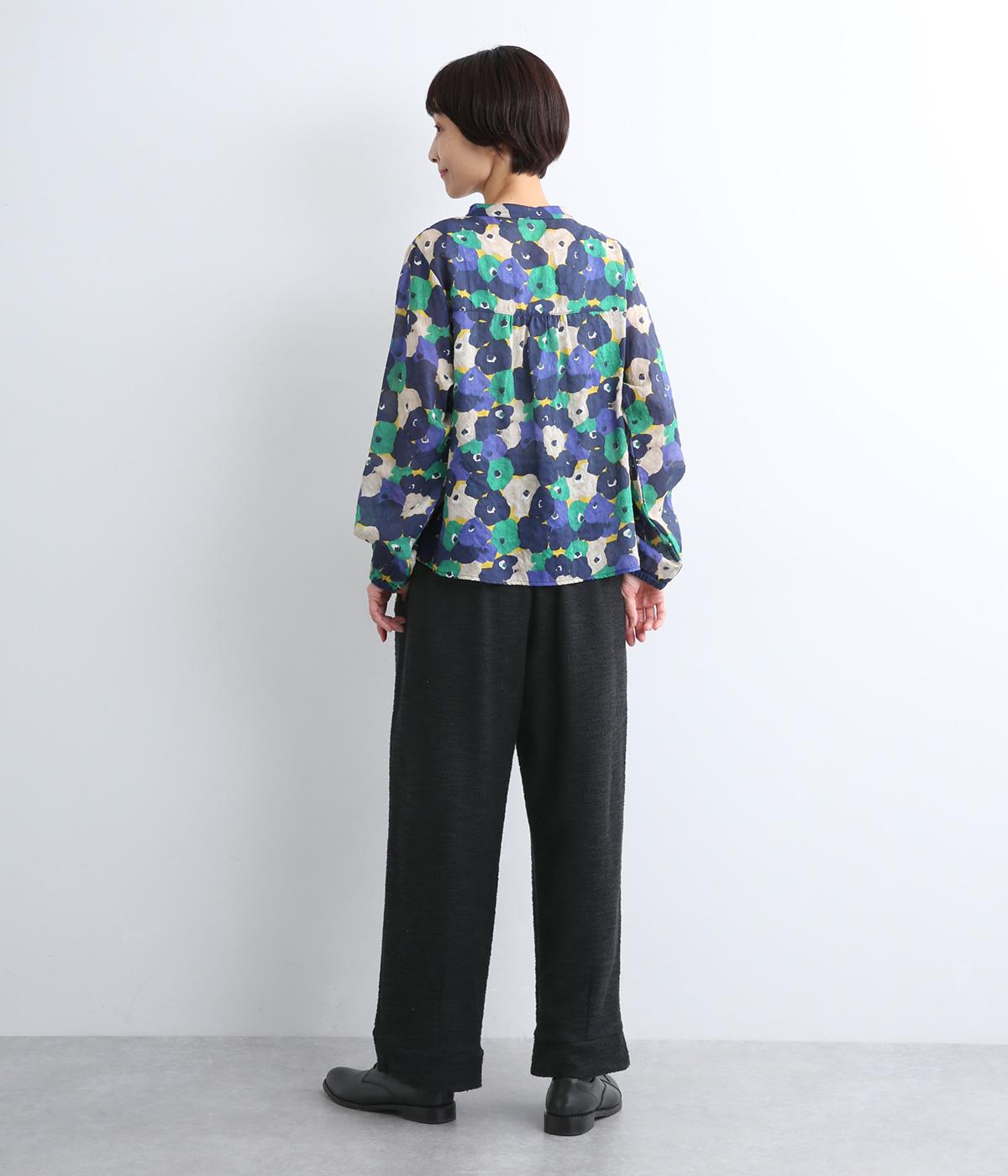 前ウエスト下にタックを入れ、ヒップから太ももにかけてゆとりを出したテーパードパンツ。裾に向かってゆるやかに細くしたシルエットが、上品な生地感も相まってきちんと感を漂わせます。ウエストは後ろにゴムを通しイージーな着用感にもこだわりました。