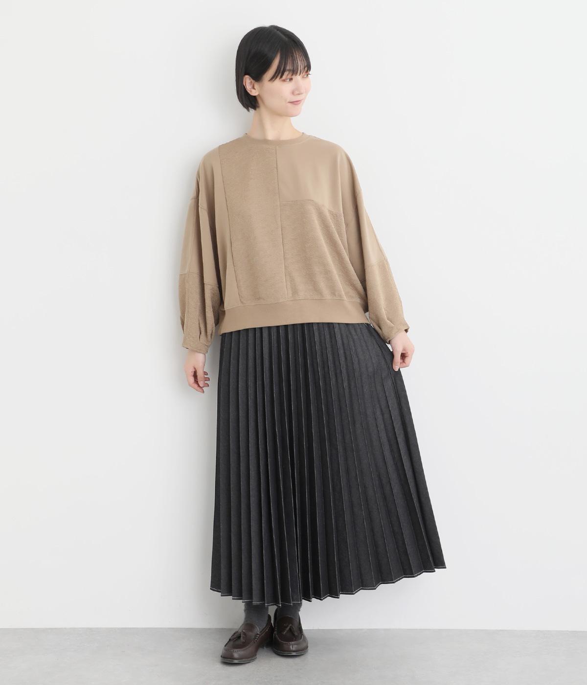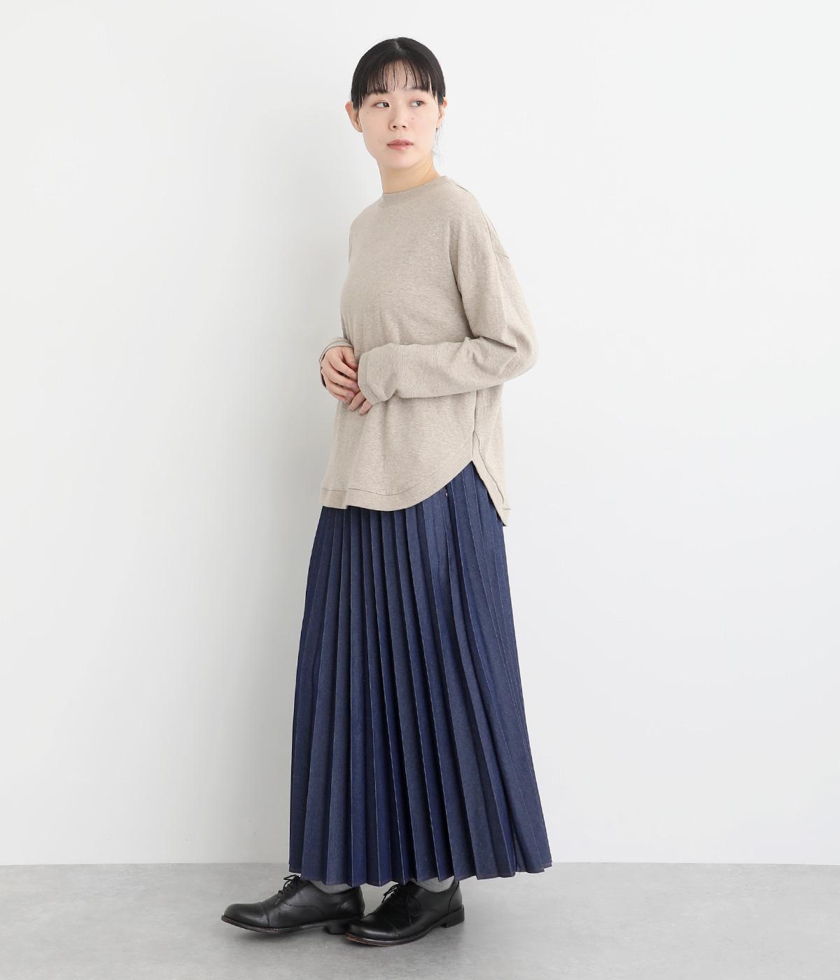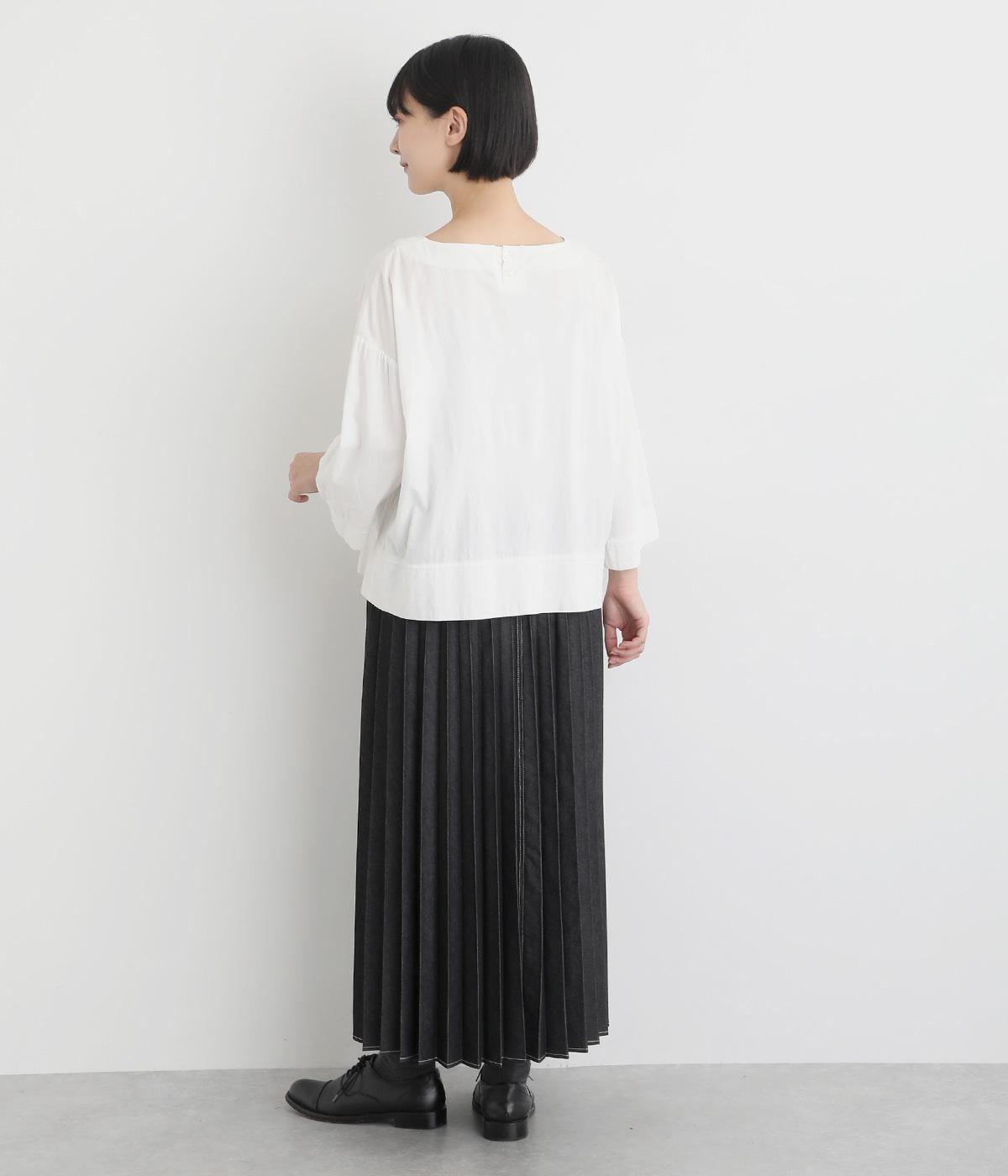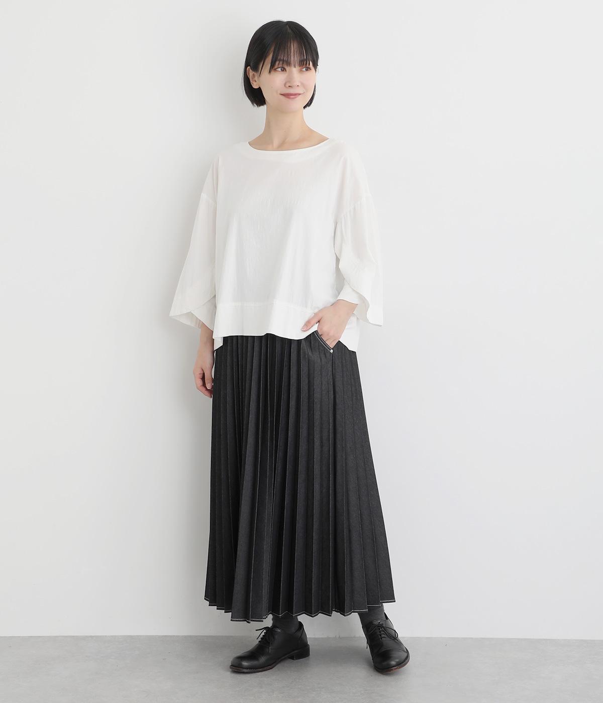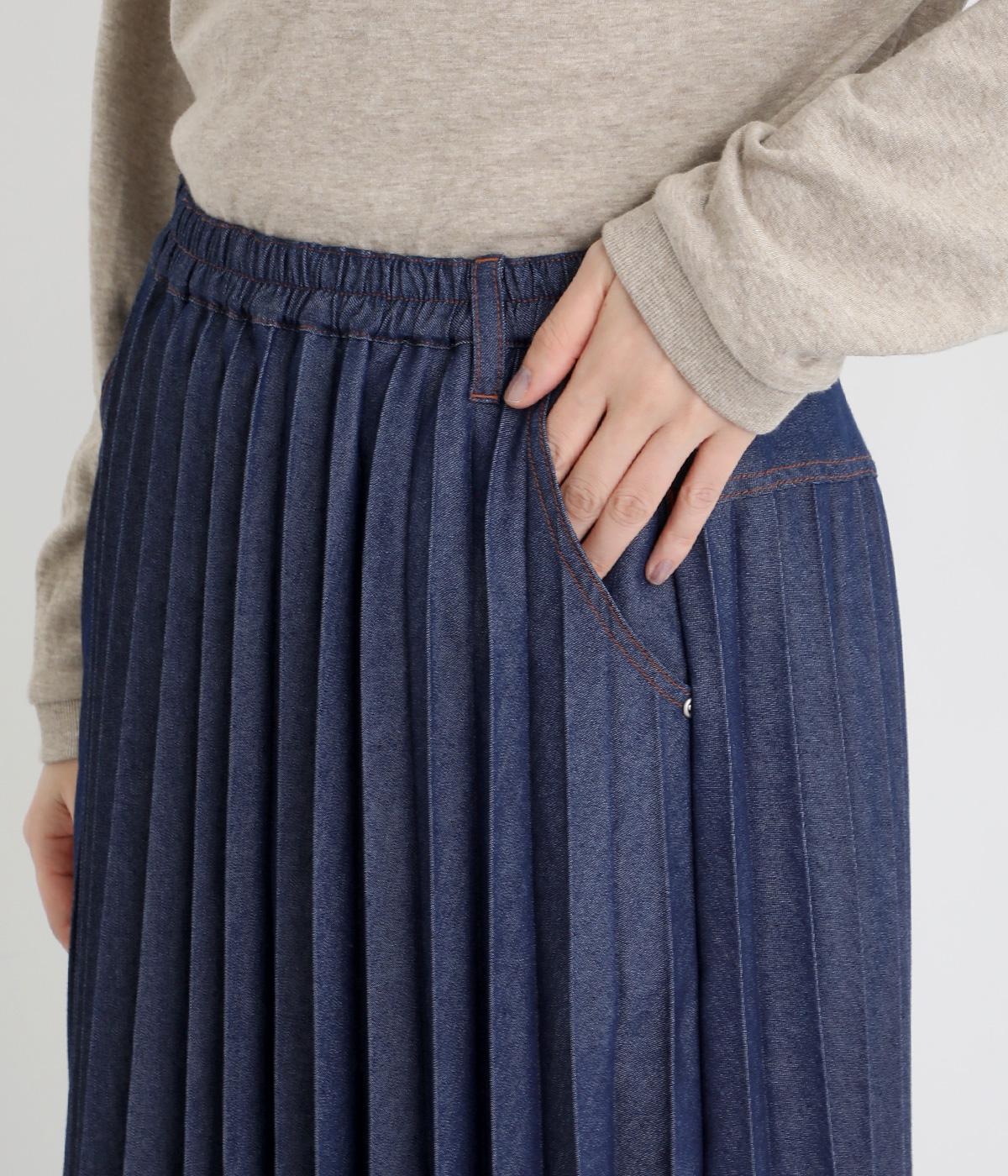 立体的でインパクトのあるプリーツがきれいなフレアを描く、Aラインシルエットのスカート。配色ステッチやリベットなどディテールにこだわったメリハリのあるデザインが魅力。ウエストはぐるりとゴムが通っていて安定感があり、はき心地にもこだわりました。
