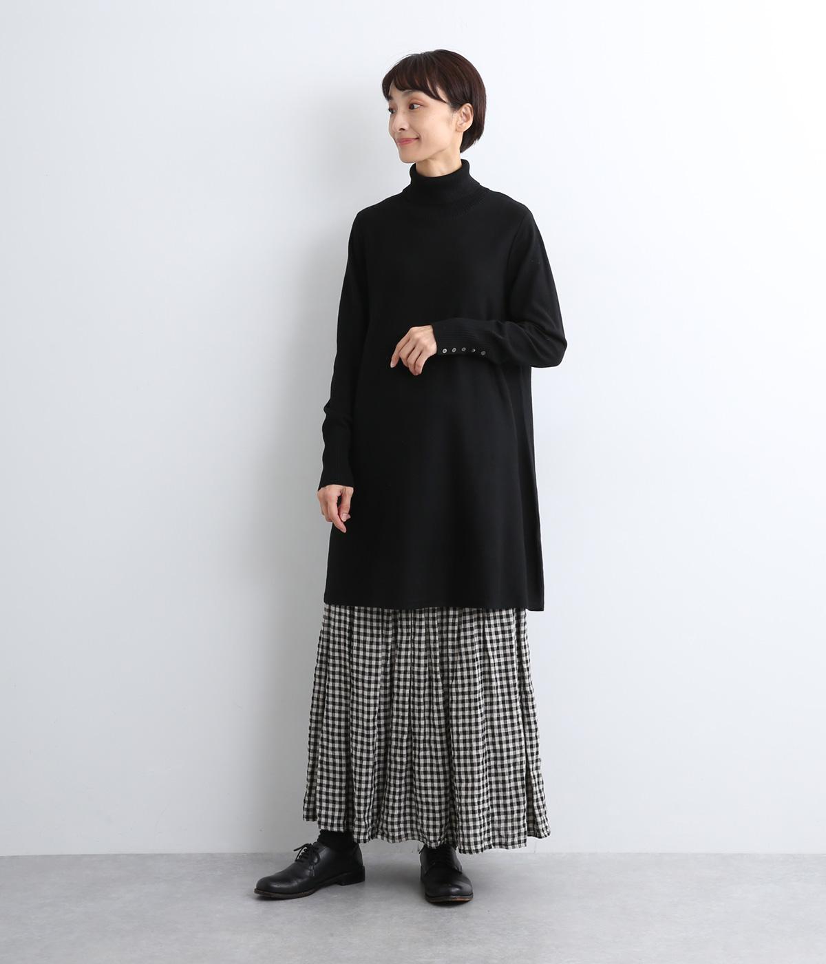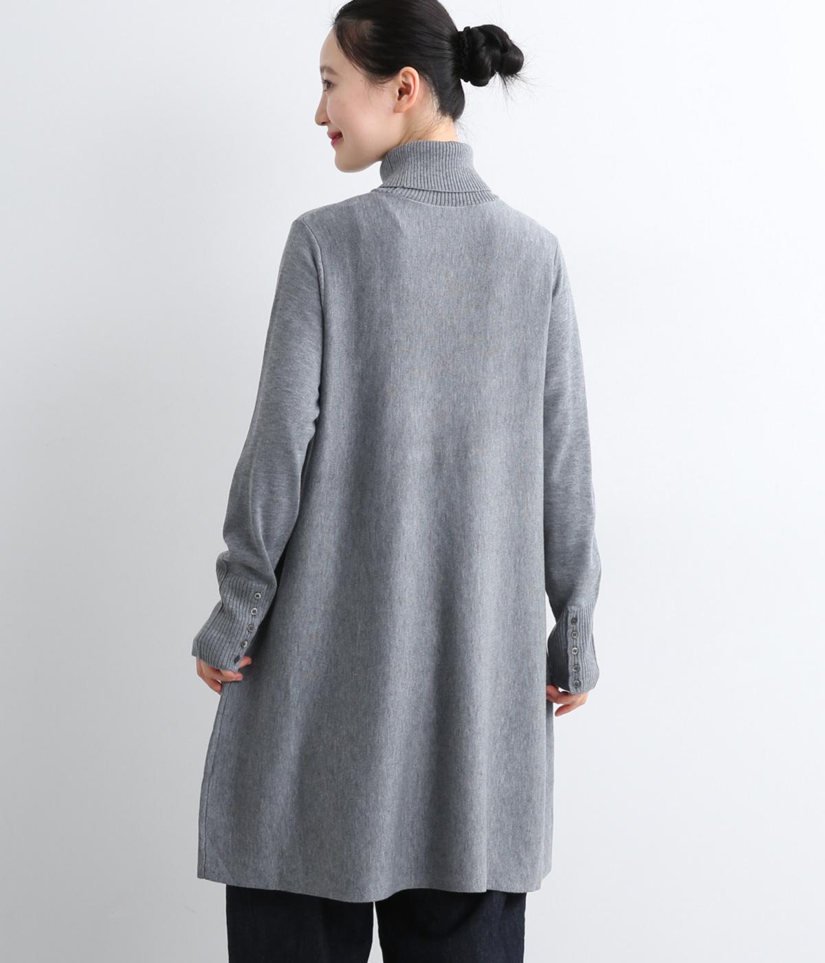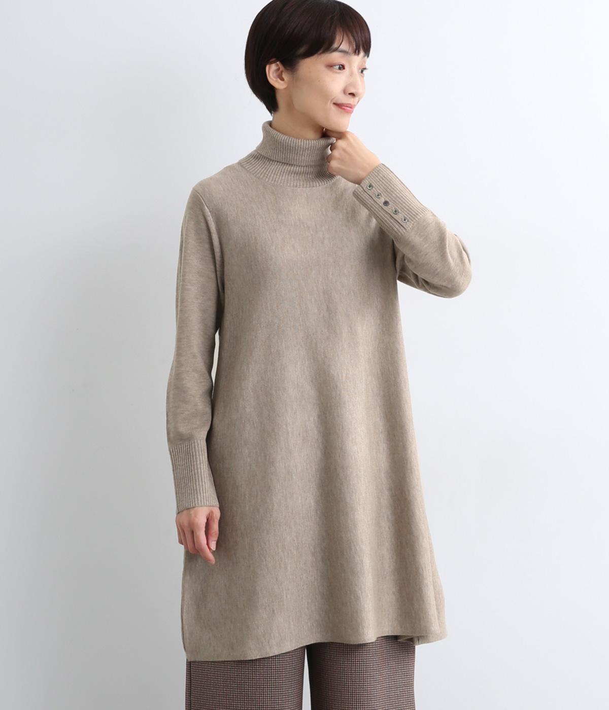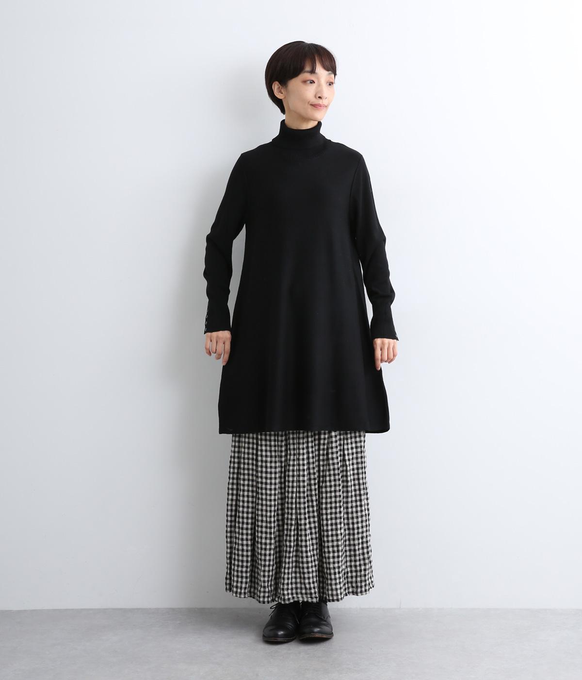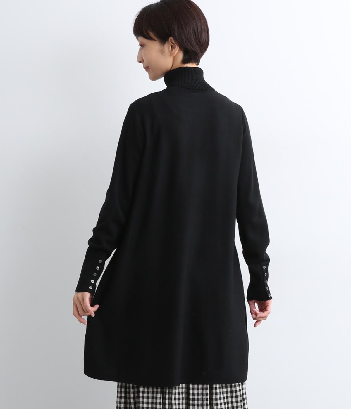 裾に向かって緩やかに広げたフレアシルエットがフェミニンなニットチュニック。気になる体のラインもしっかりとカバーしてくれます。袖口のリブ編みと密度高く配置したボタンがファッション感を高めるアクセントに。首元にすっきりと添わせたタートルネックはあたたかさも◎です。