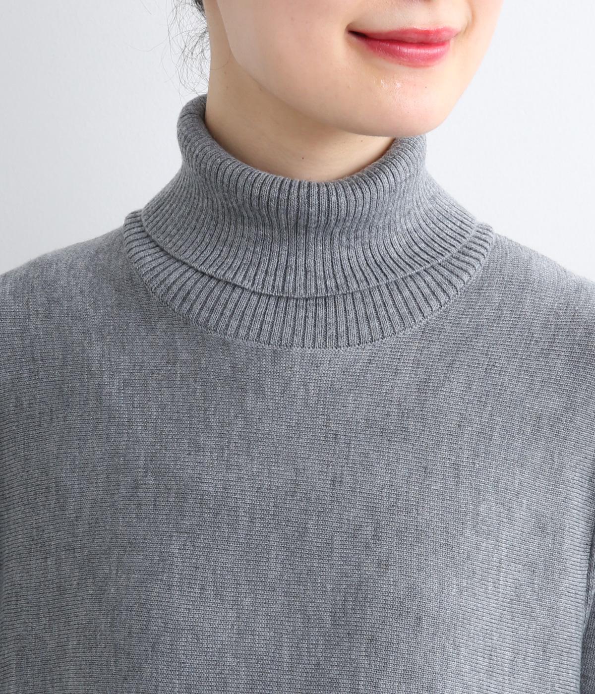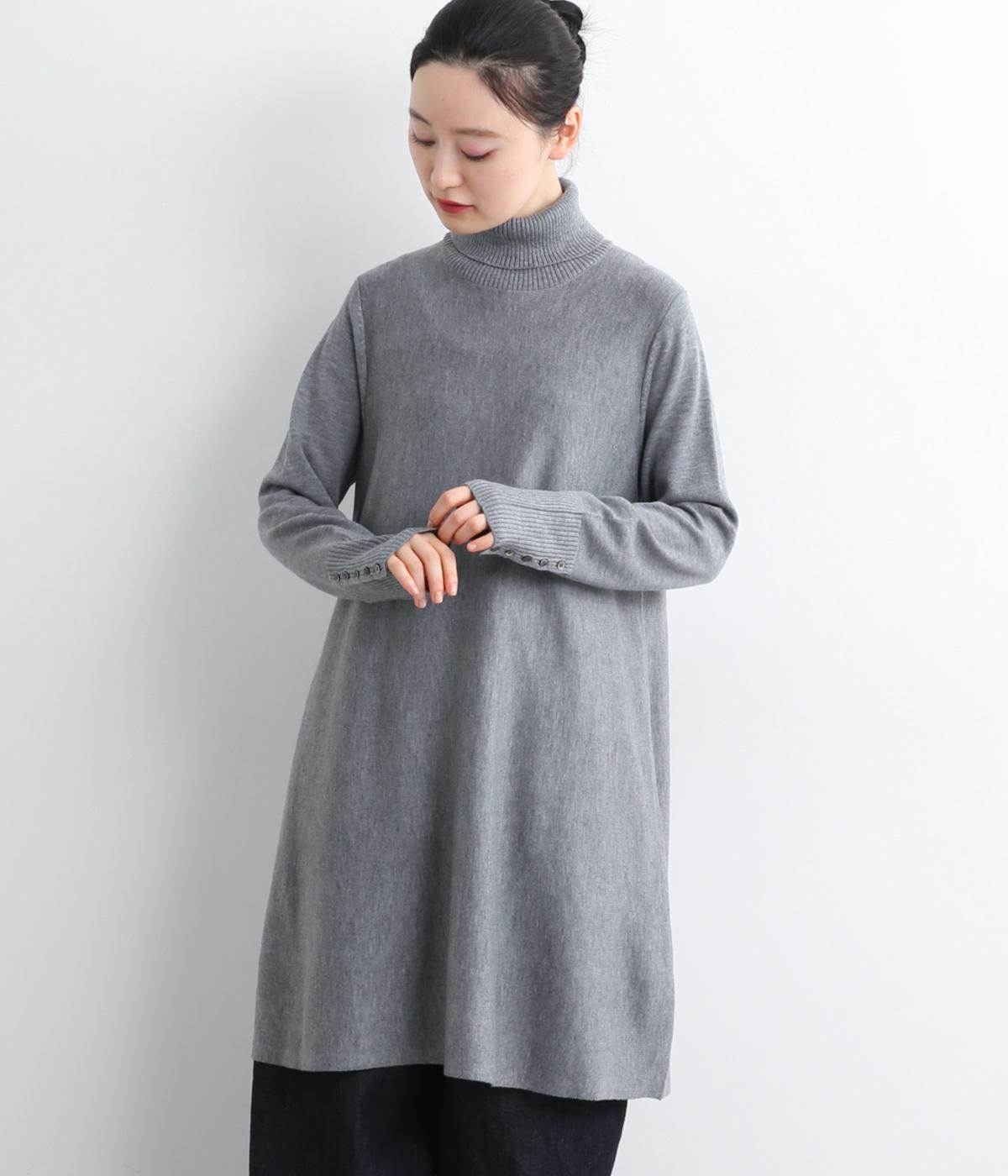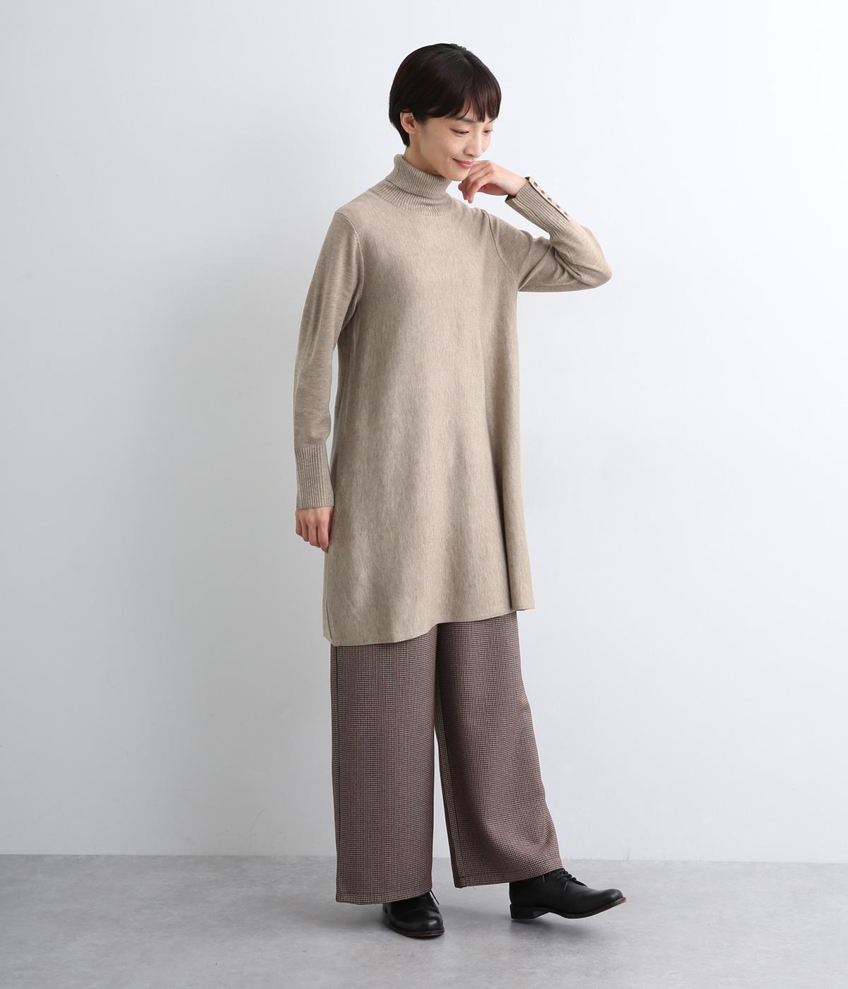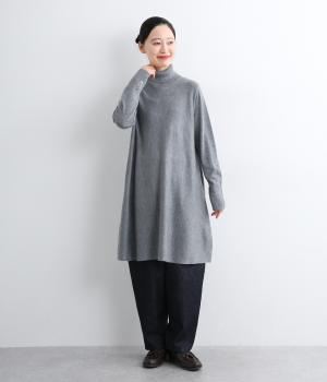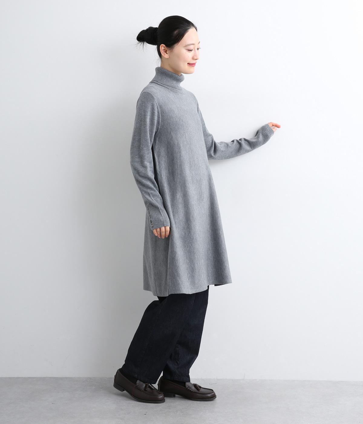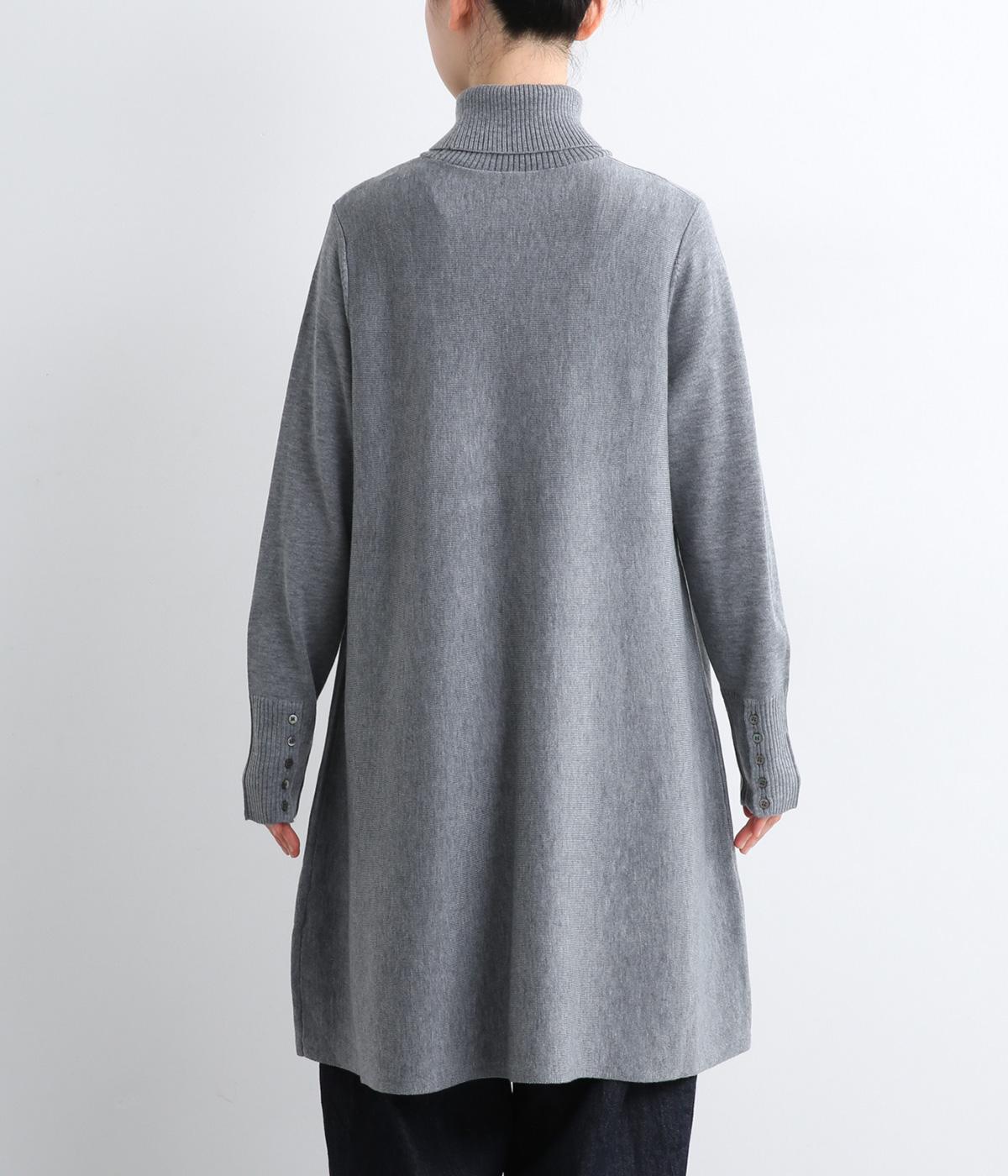 裾に向かって緩やかに広げたフレアシルエットがフェミニンなニットチュニック。気になる体のラインもしっかりとカバーしてくれます。袖口のリブ編みと密度高く配置したボタンがファッション感を高めるアクセントに。首元にすっきりと添わせたタートルネックはあたたかさも◎です。