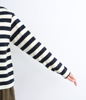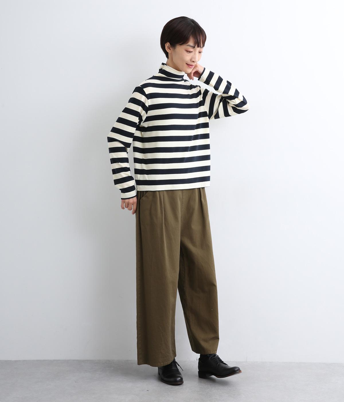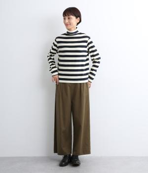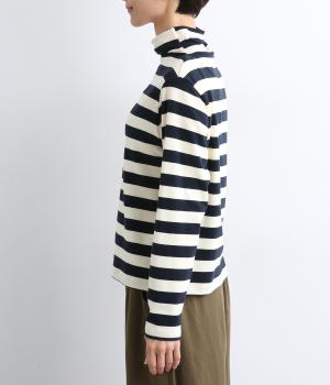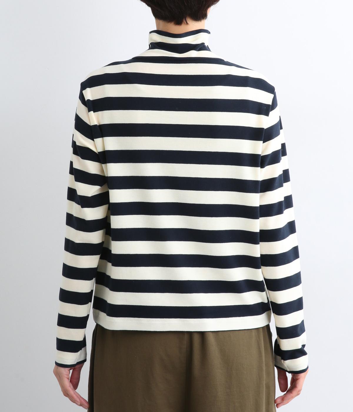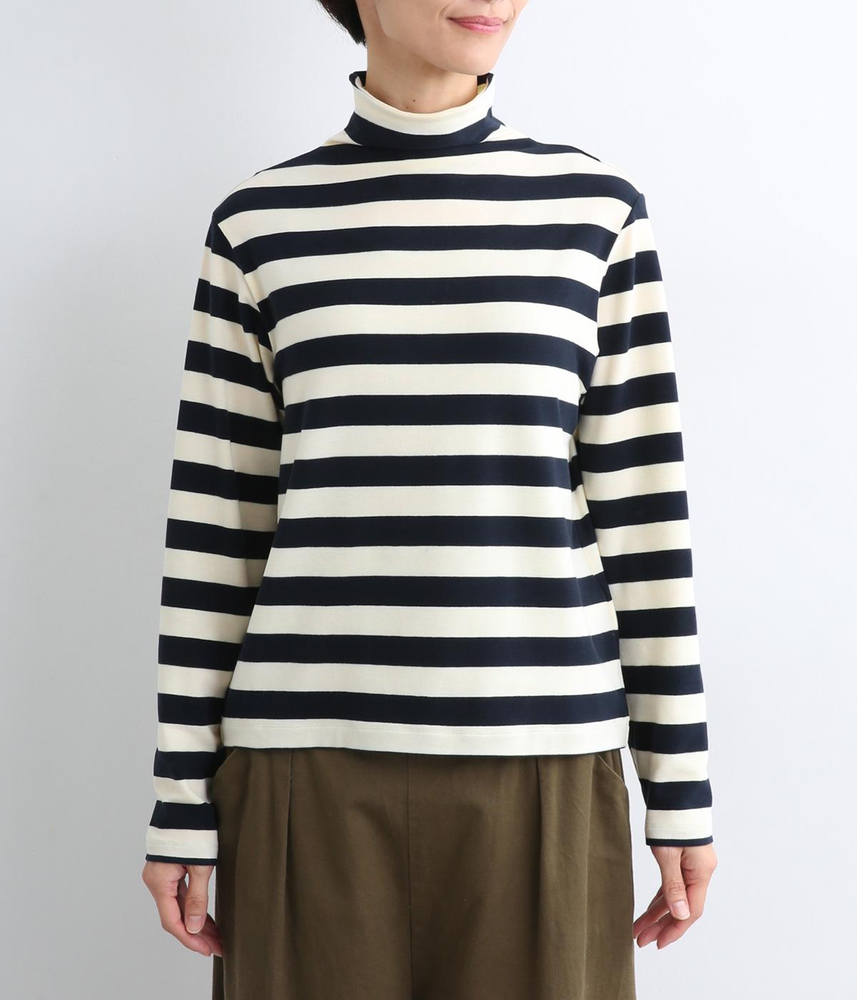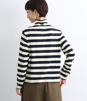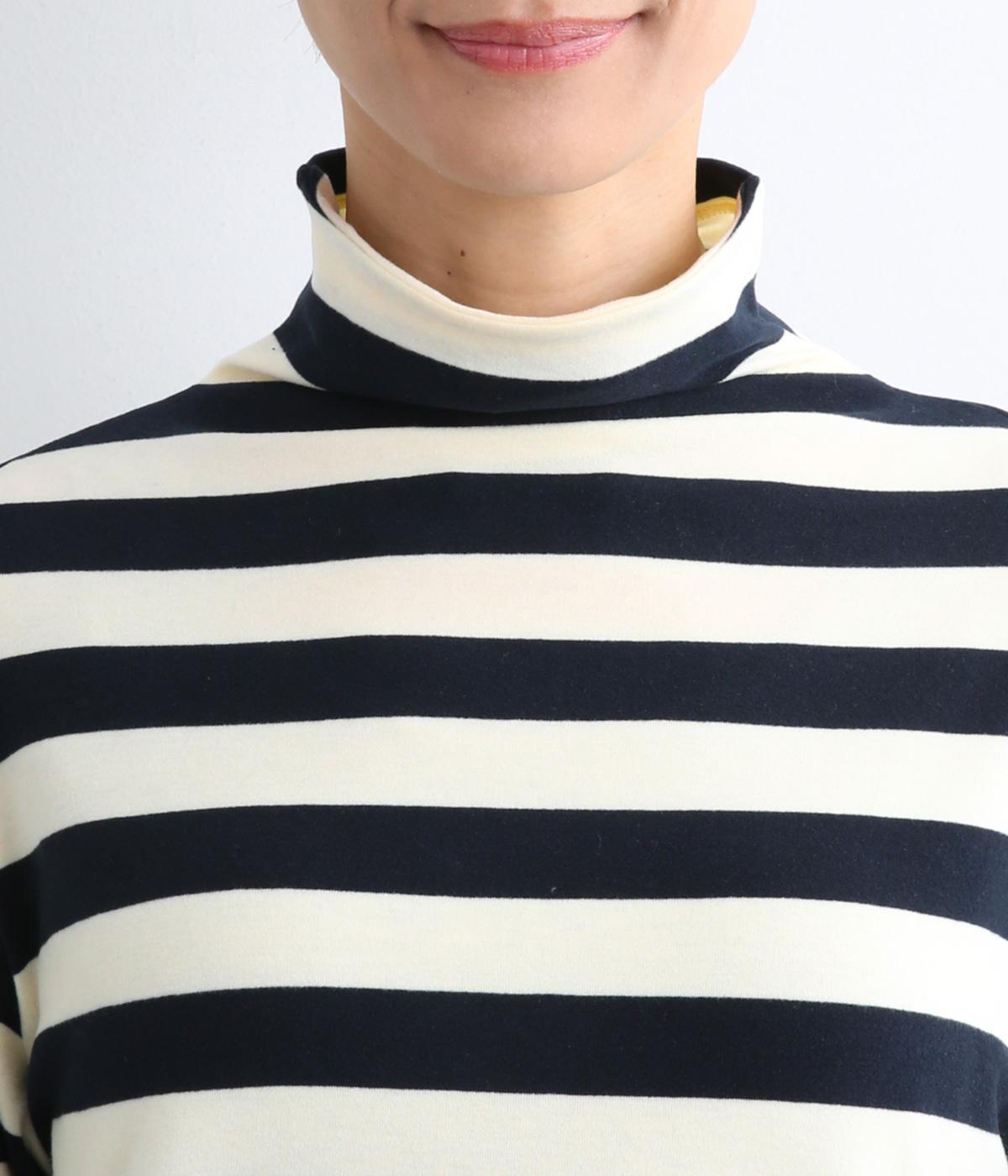 メリハリのあるボーダー柄が目を引くタートルネックプルオーバーです。身幅と袖にややゆとりを持たせているので一枚でも着用しやすいのが魅力。首元にすっきりとおさまる適度な高さに仕上げたタートルネックも◎です。