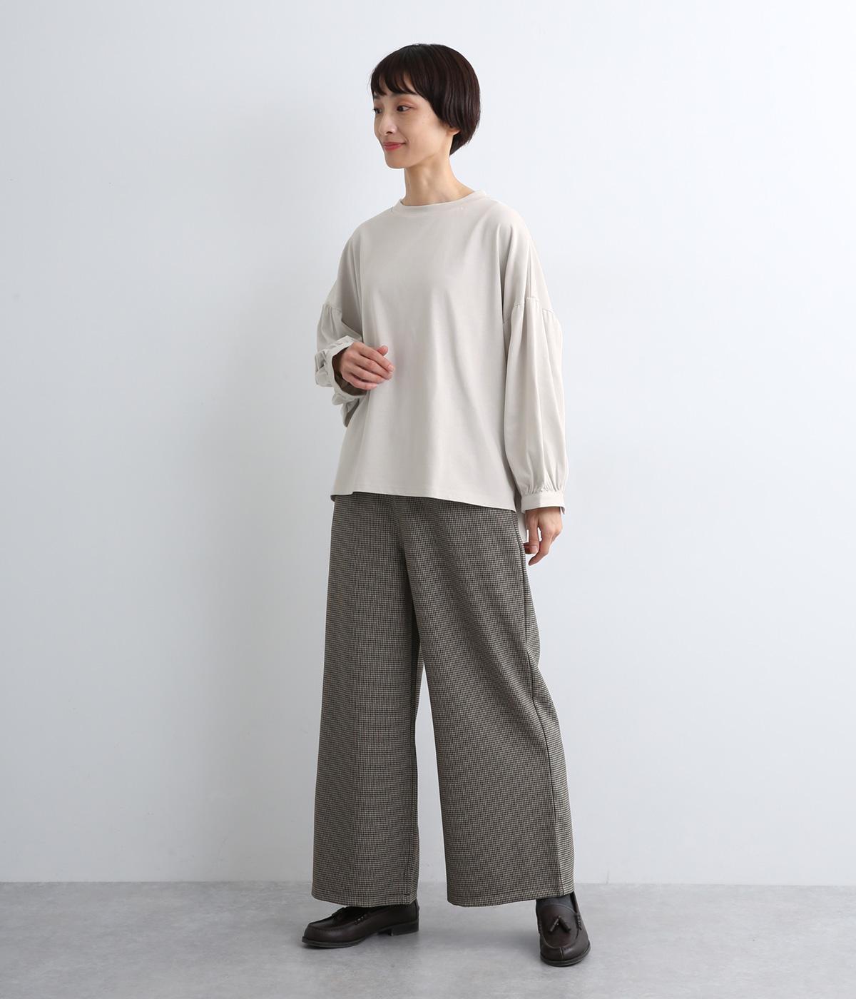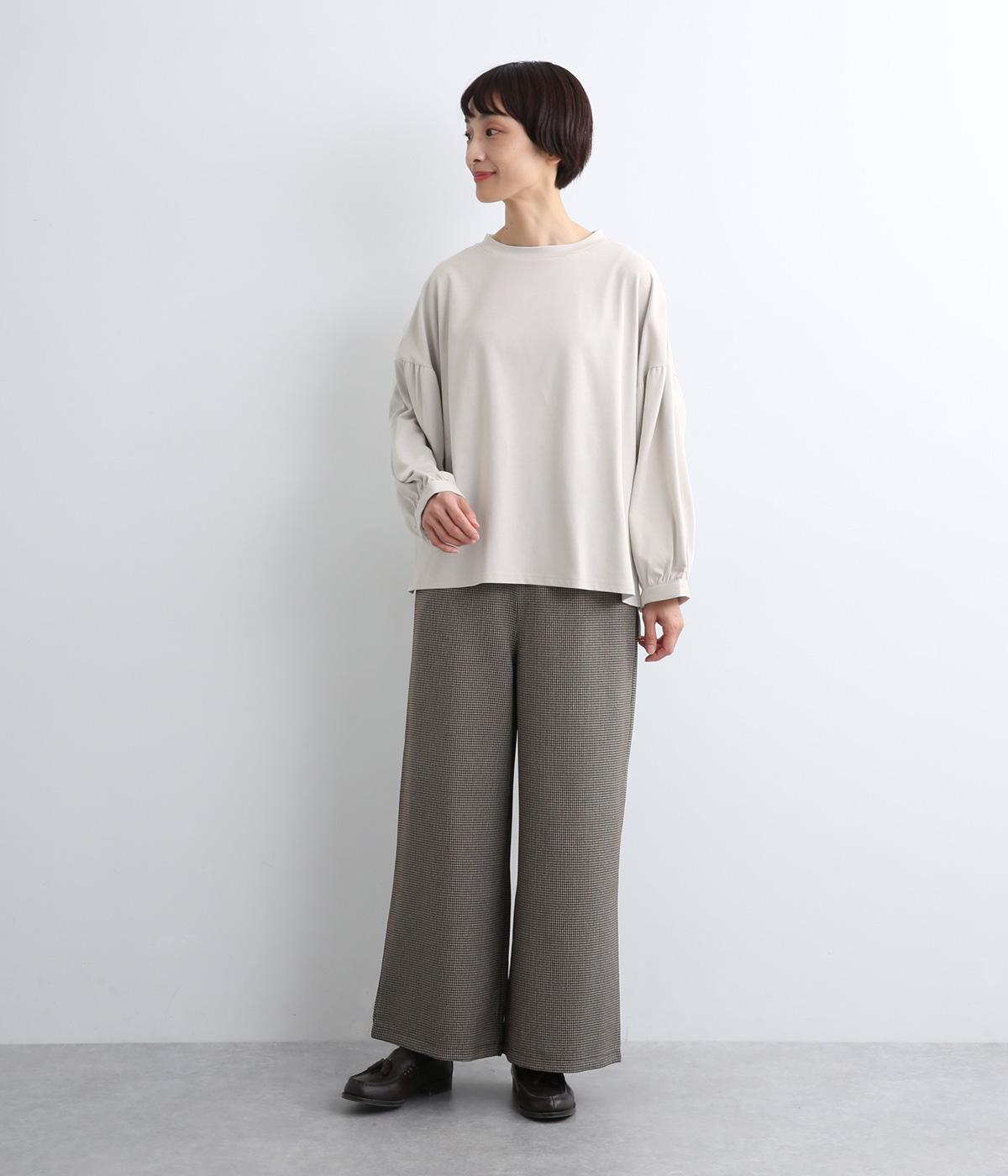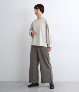 肌にまとわりつかないさらりとしたコットン生地で仕立てています。綿ならではの通気性のよさや柔らかな風合いが感じられ、秋口から春先まで長く快適に着まわせます。
