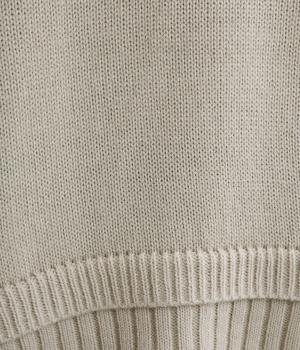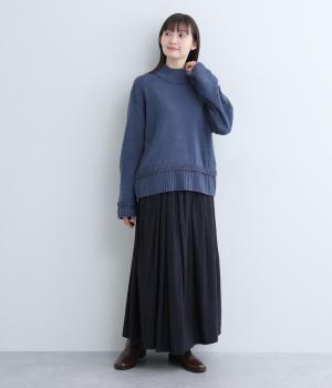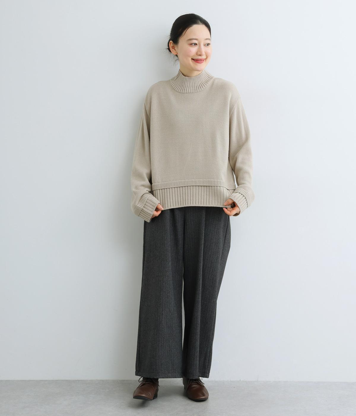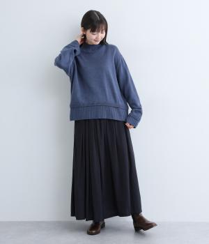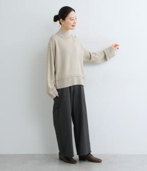ウールを混紡した糸を使い、あたたかみのあるニットに仕上げました。フラットで細かな編地がほっこり感を軽減して上品な印象に。やわらかな肌ざわりで着心地も快適です。