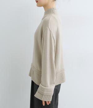 裾と袖口の重ねたようなリブデザインがポイントのニット。ゆったりとした身幅と長めの袖丈がこなれたムードを運びます。同じくリブで仕上げたネックが首元に心地よくフィット。シンプルな着こなしをおしゃれに引き立てる、さりげないデザイン性が魅力の一枚です。