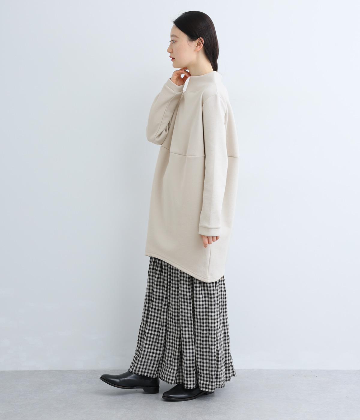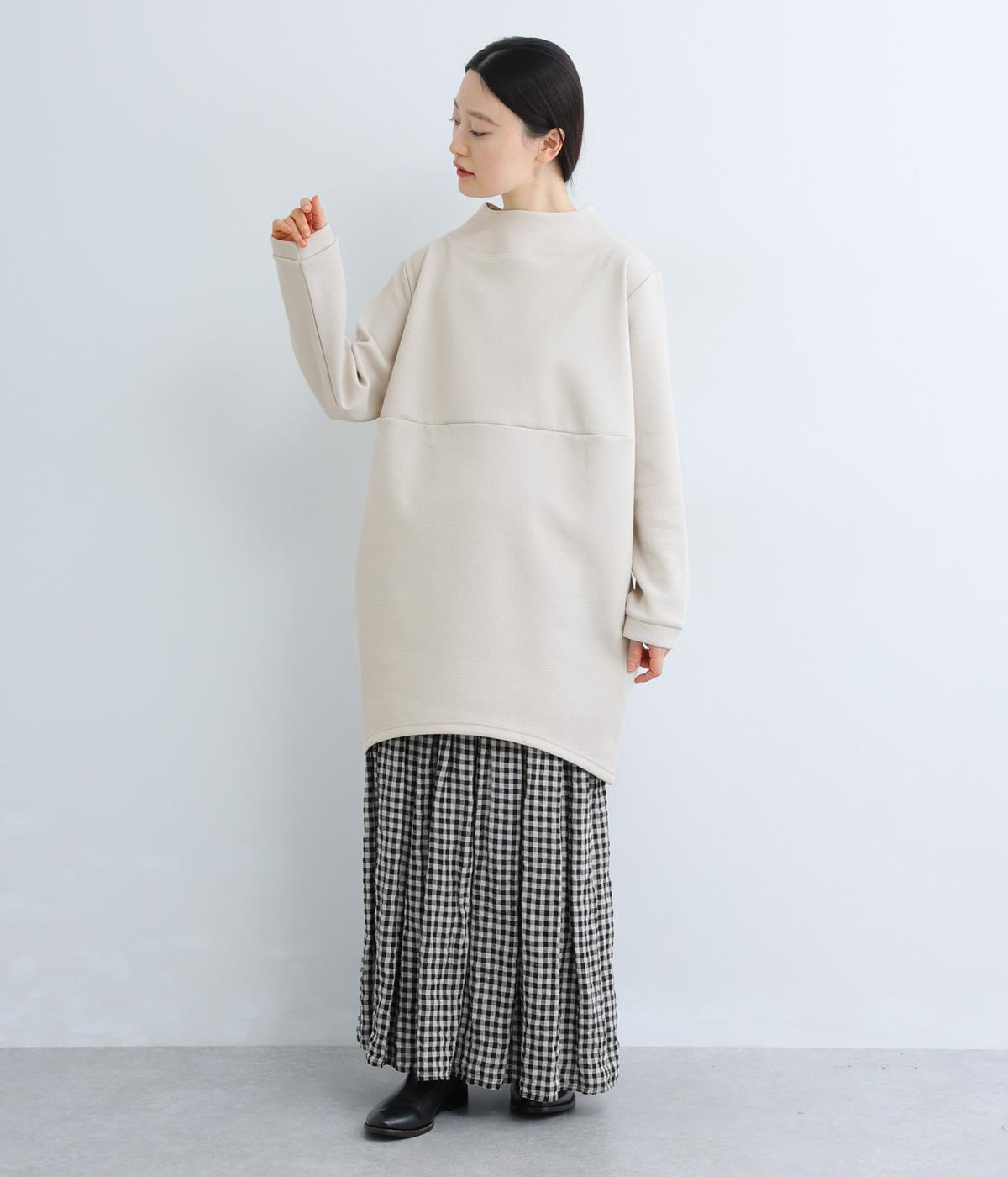 ふっくらとしたハリのある弾力が特徴のミックス生地を使用しました。ほんのりとしたシワ感が上品な雰囲気です。伸縮性がありデイリーに取り入れやすい素材感です。