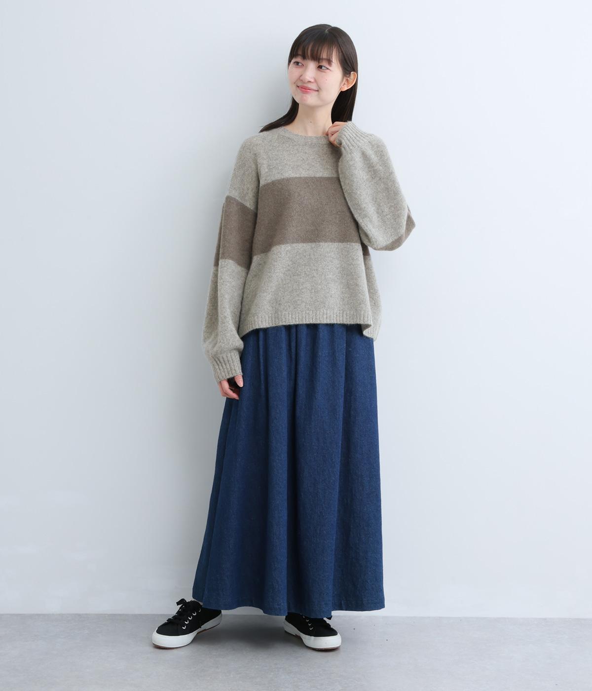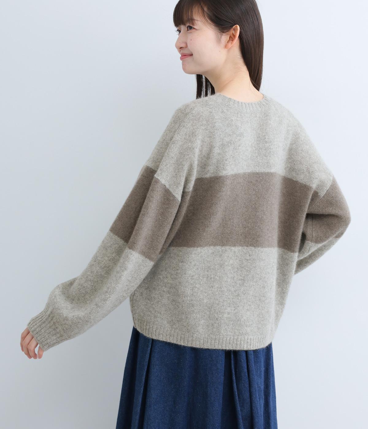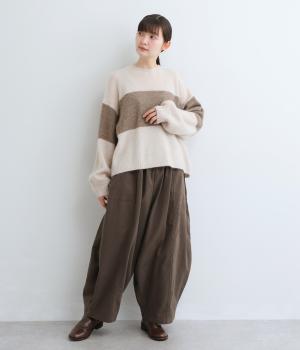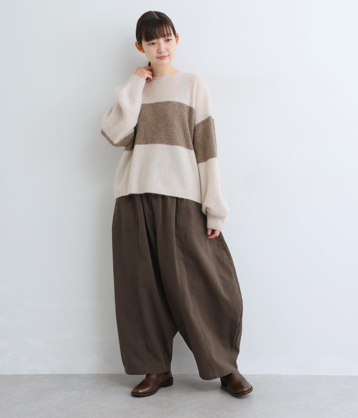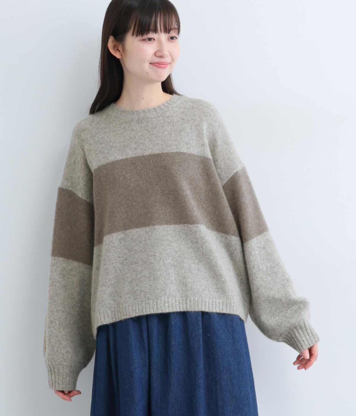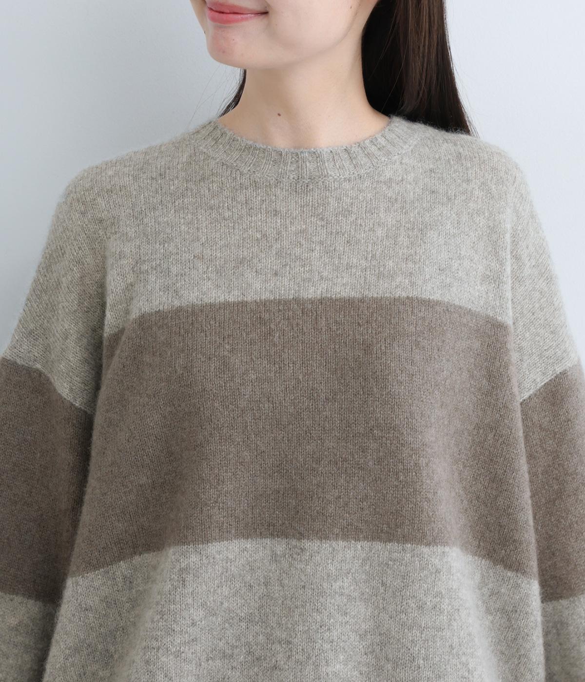 どこかレトロ感の漂うワイドラインのニットプルオーバーです。ドロップショルダーやゆったりめの身幅でリラックス感のある着心地を叶えます。さらりと着るだけでスタイリングがまとまる主役アイテムです。