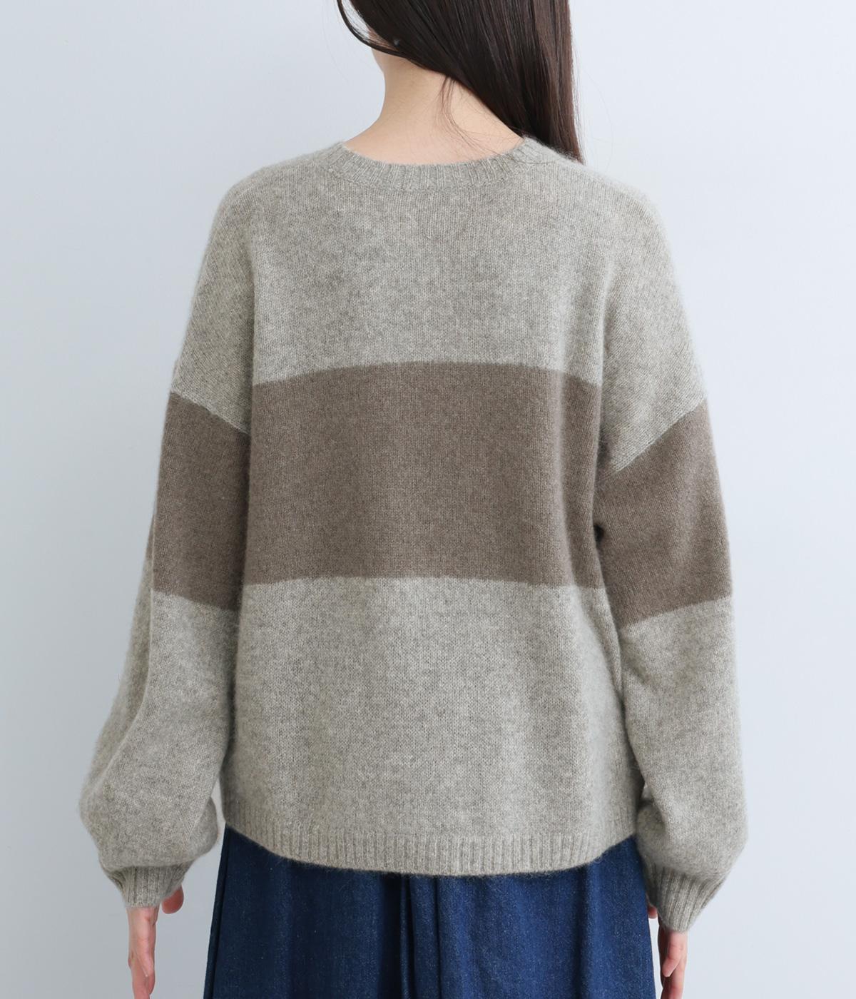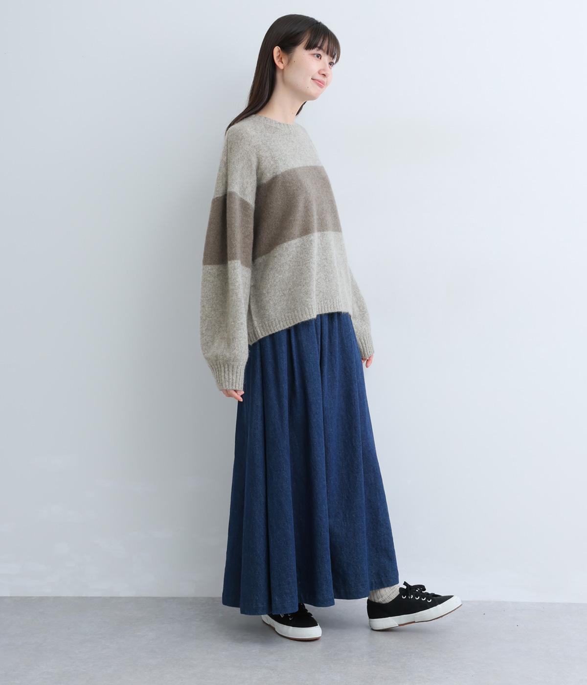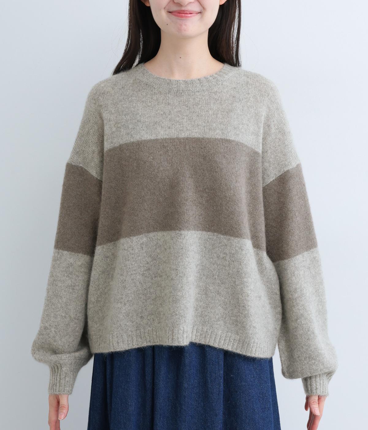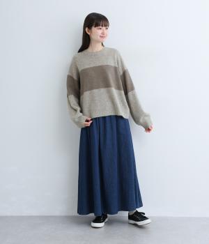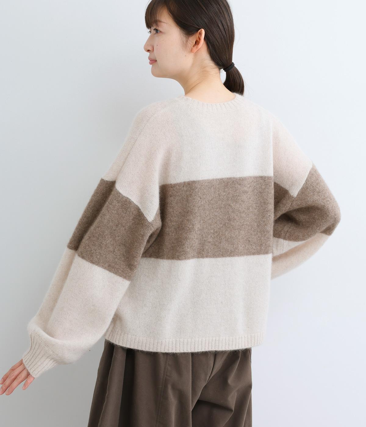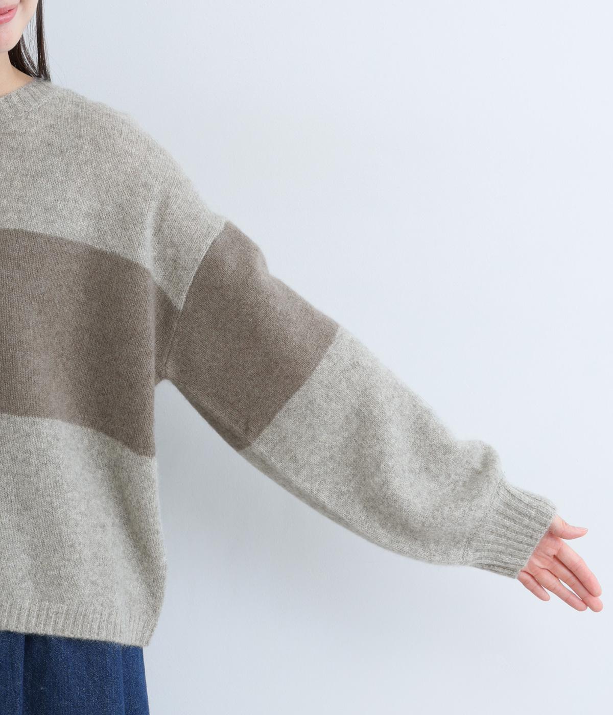 どこかレトロ感の漂うワイドラインのニットプルオーバーです。ドロップショルダーやゆったりめの身幅でリラックス感のある着心地を叶えます。さらりと着るだけでスタイリングがまとまる主役アイテムです。
