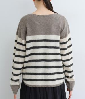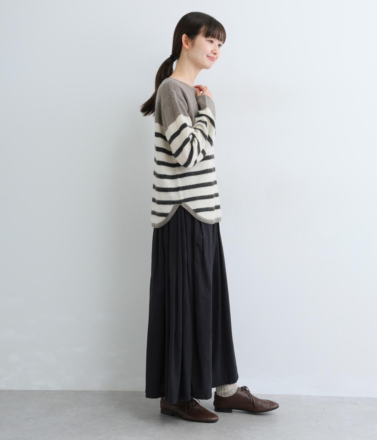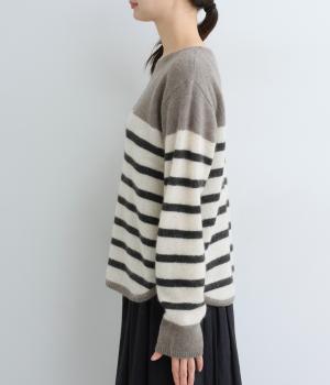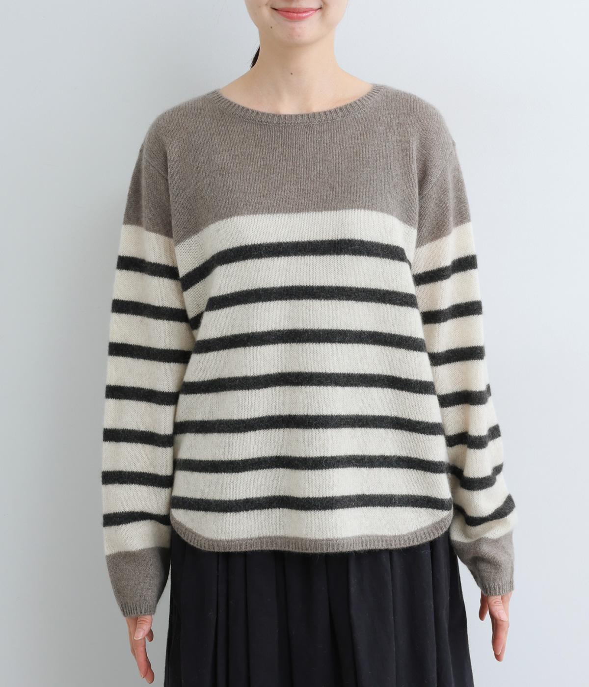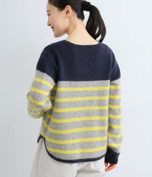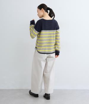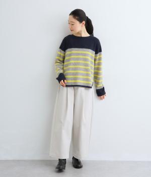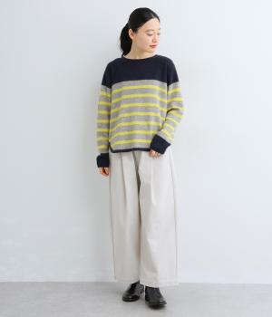 派手すぎない存在感が心地よいマリンボーダーのニットプルオーバーです。ドロップショルダーやゆったりめの身幅でリラックス感のある着心地を叶えます。さらりと着るだけでスタイリングがまとまる主役アイテムです。