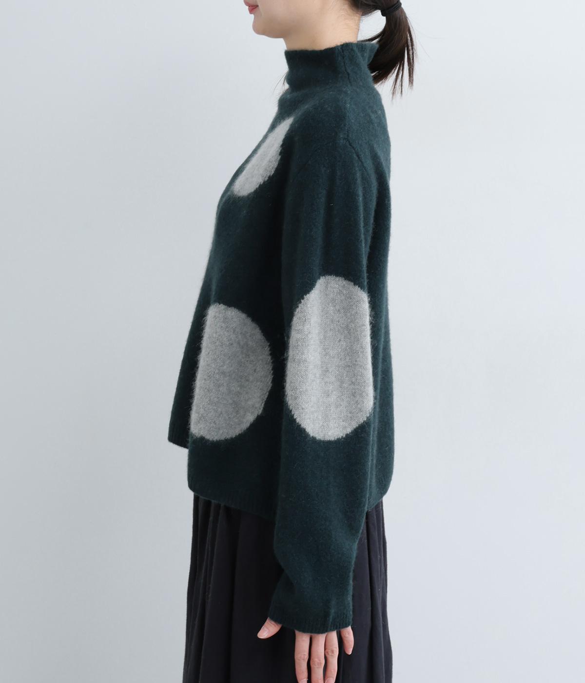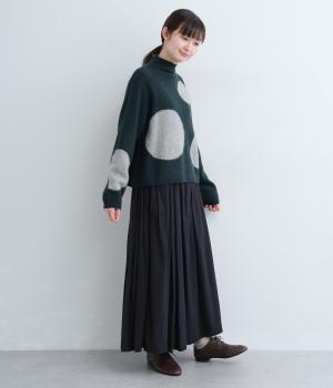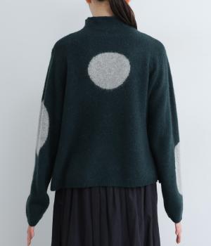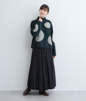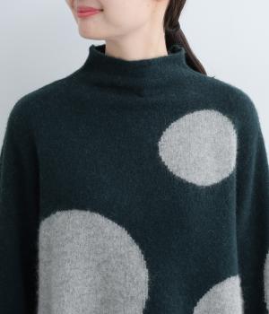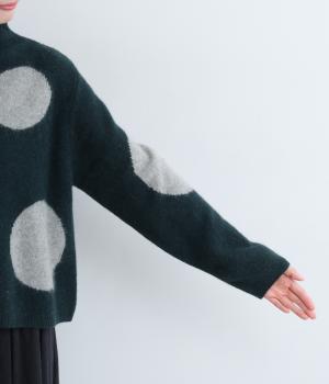 大きなドットが目をひくニットプルオーバーです。ゆるやかなモックネックやすっきりした丈感など、絶妙なサイズ感にもこだわりました。さらりと着るだけでスタイリングがまとまる主役アイテムです。