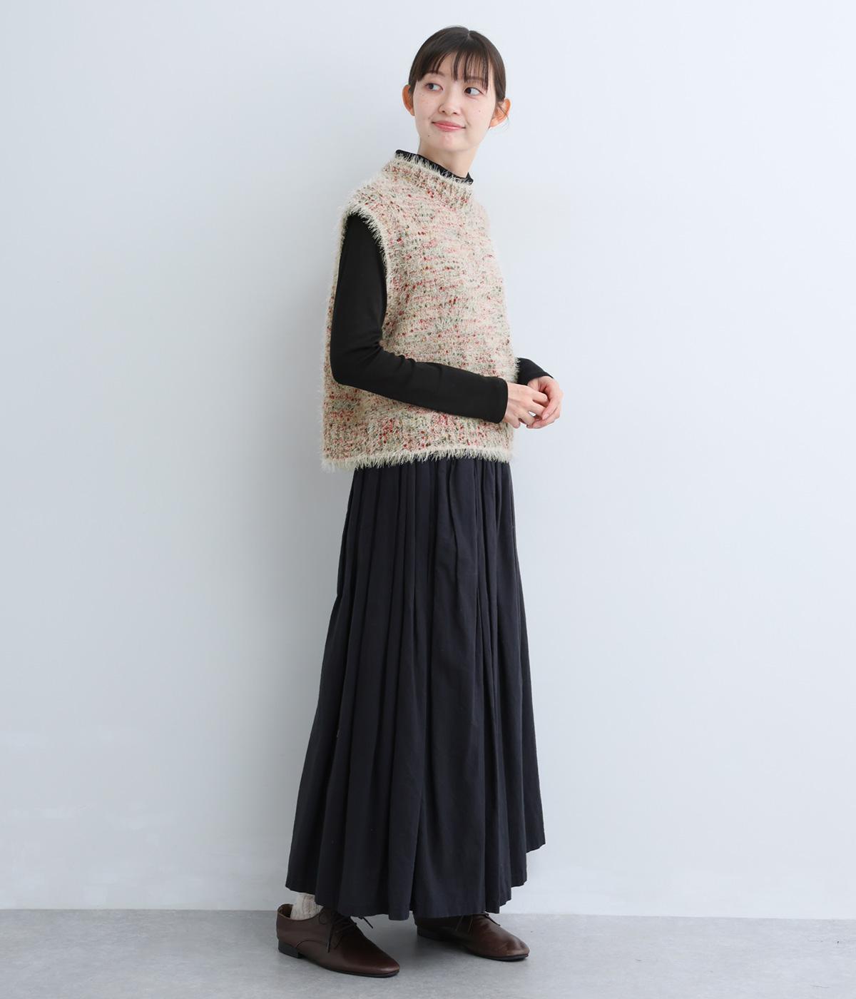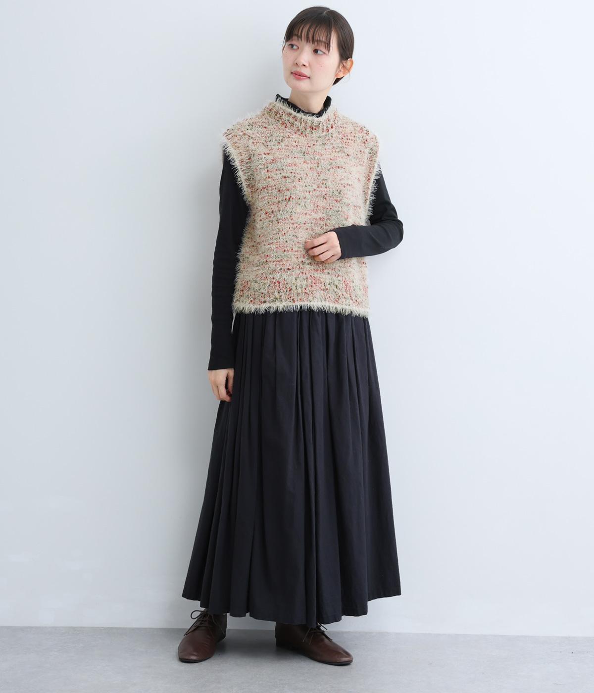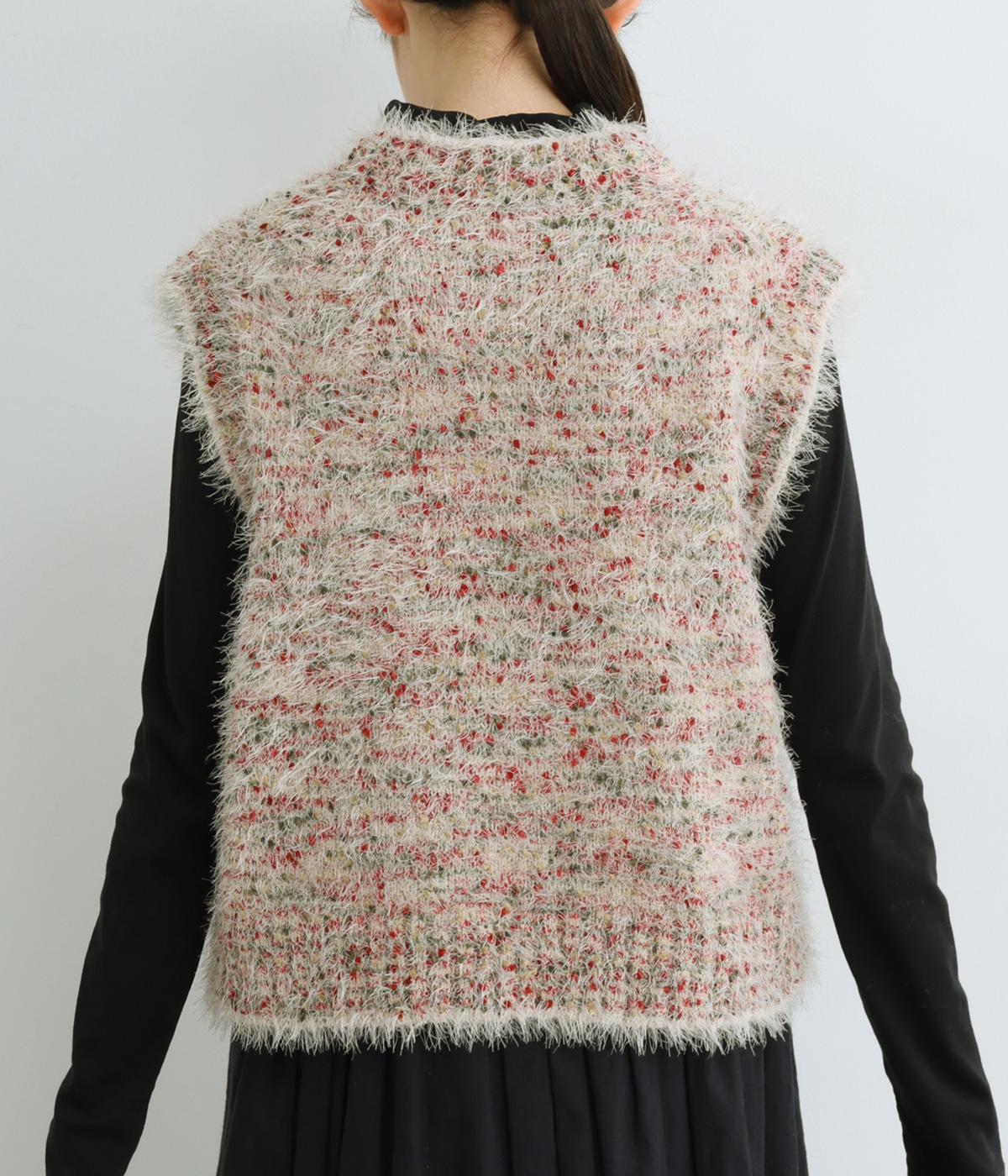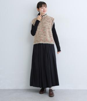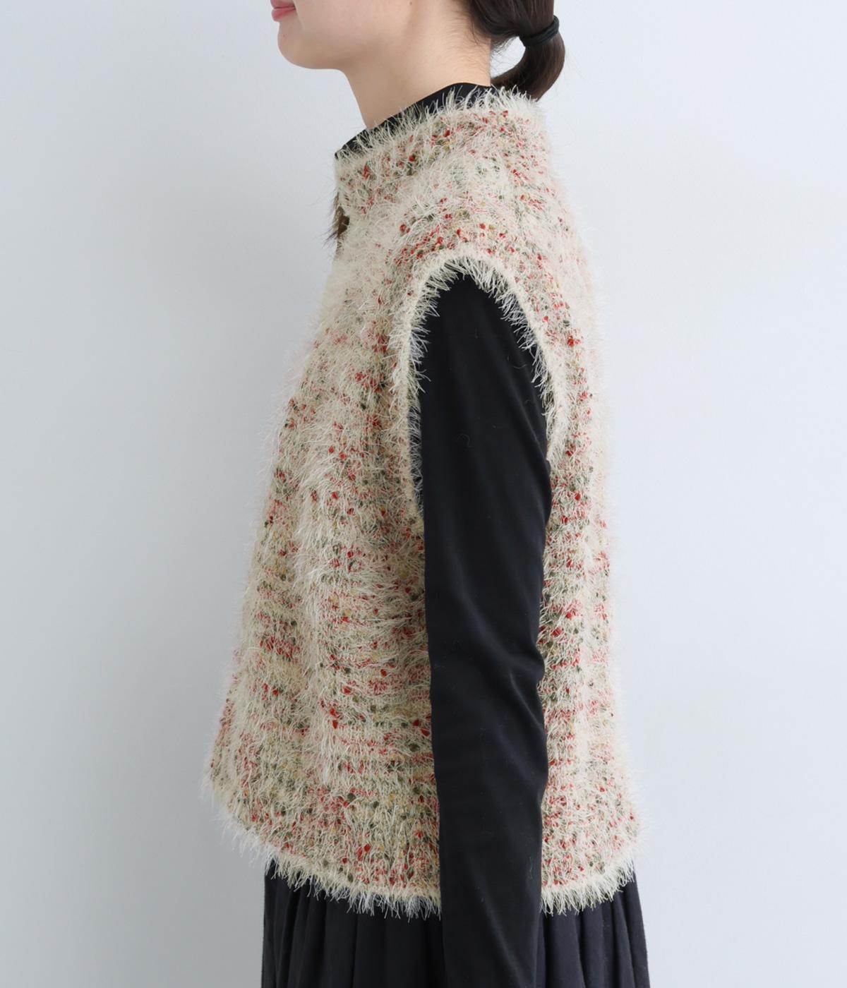 シンプルな装いにサッと重ねるだけで華やかでこなれ感のあるスタイリングが完成するベスト。やわらかな伸縮性でインナーと重ねやすく仕立てました。すっきりした丈感でボトムスを選ばず、ワンピースに重ねるのもおすすめです。