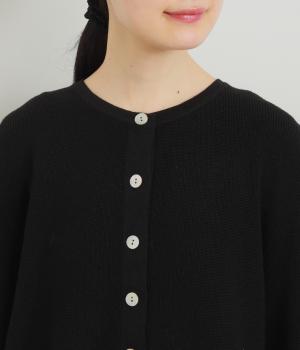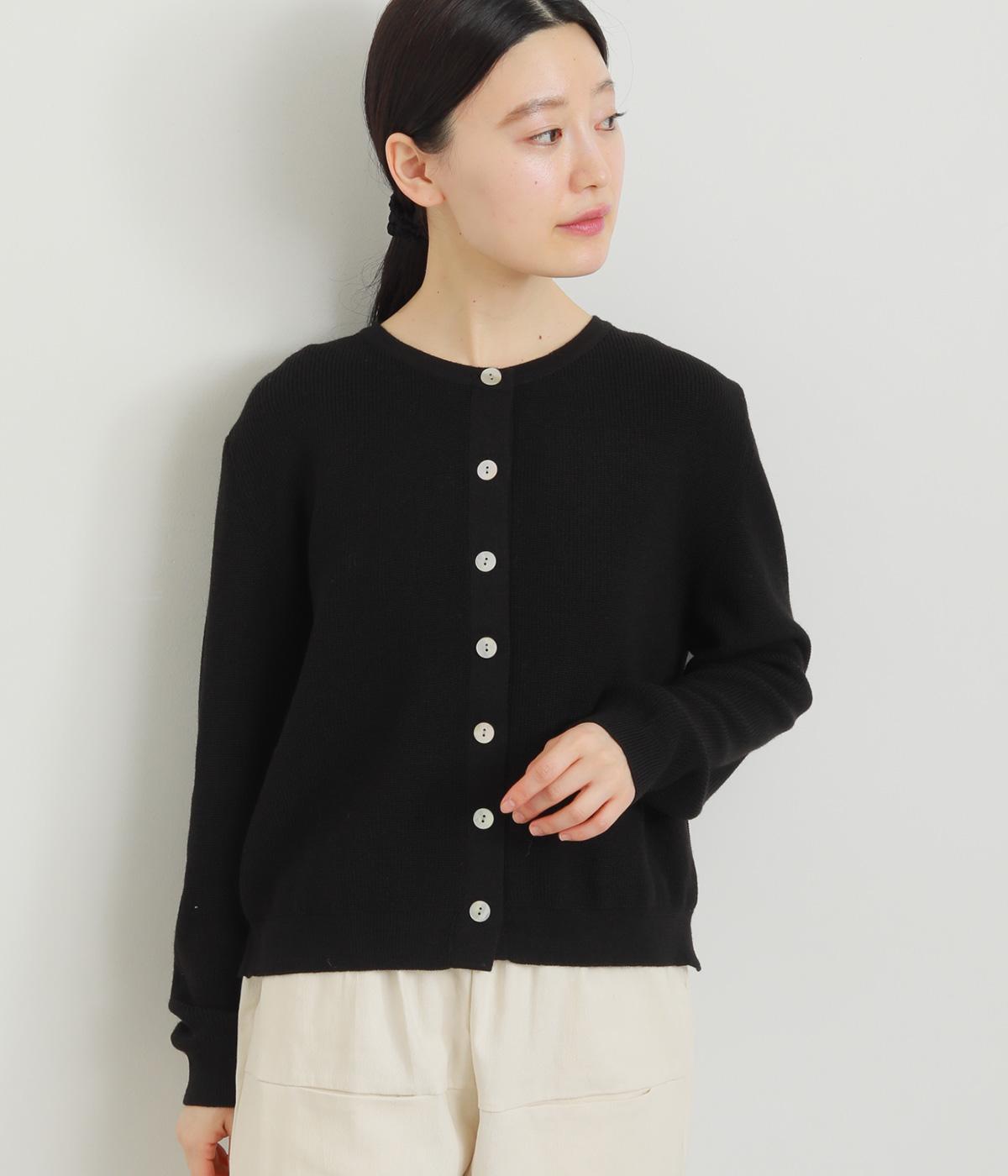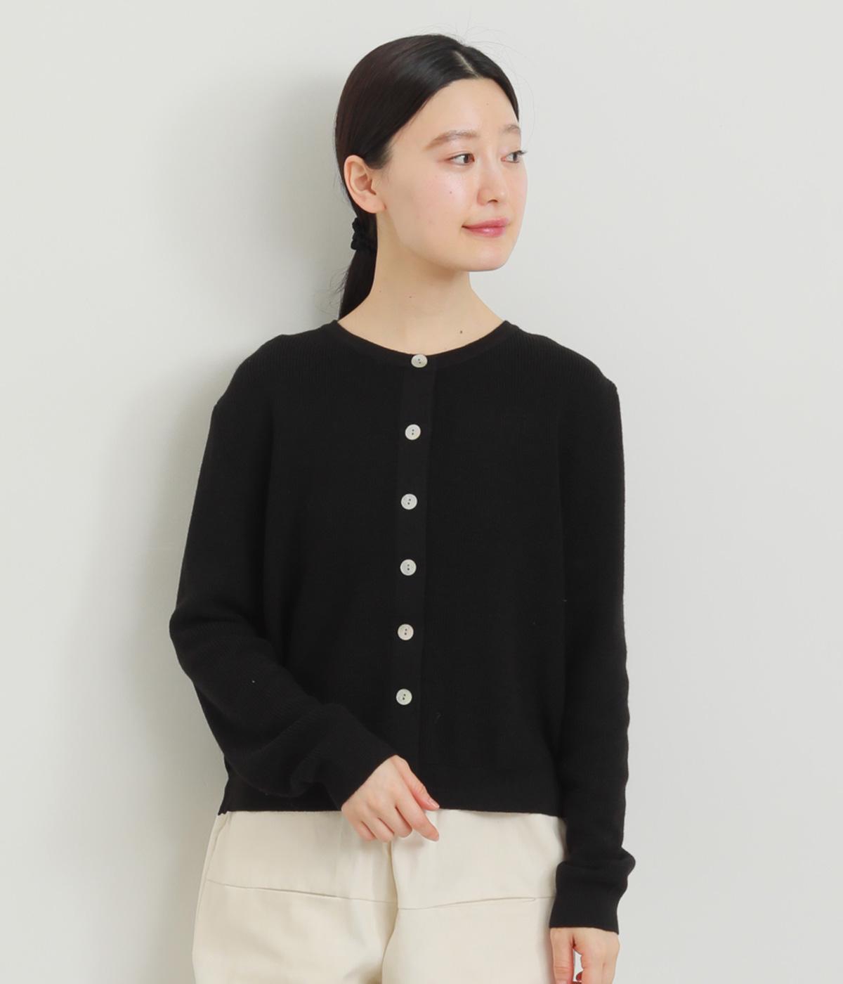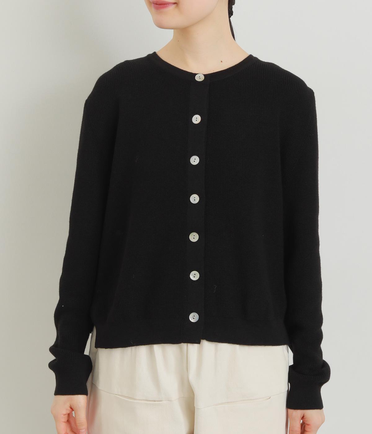 コンパクトなシルエットにシェルの多ボタンでデザインをきかせたシンプルなカーディガン。袖はやや長めに設定して、自然にくしゅっとたるんでちょうどいいニュアンスになります。両サイドスリット入りがすっきり見えのポイント。