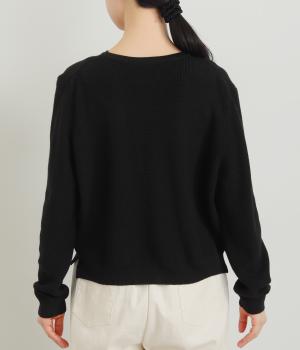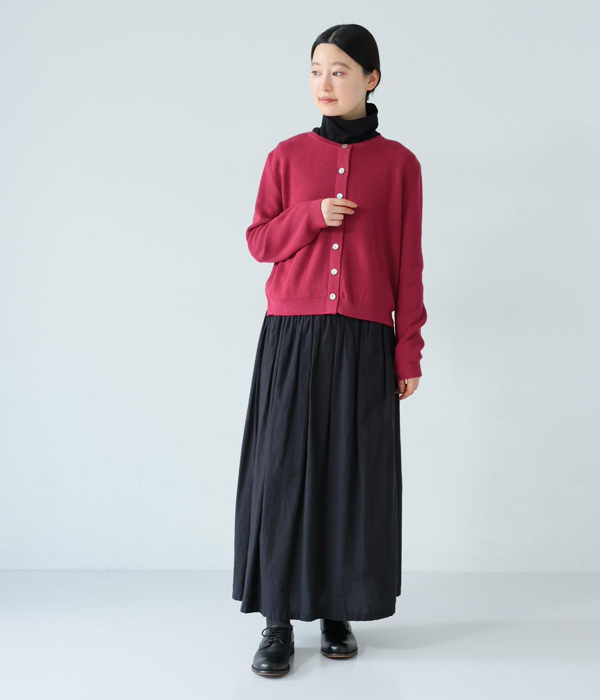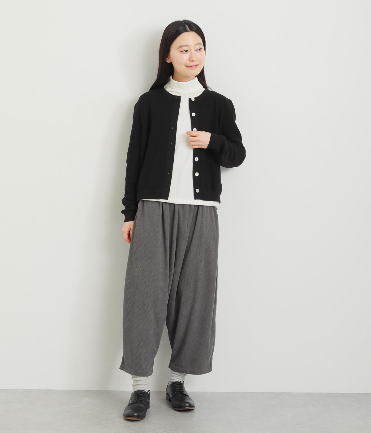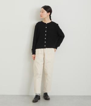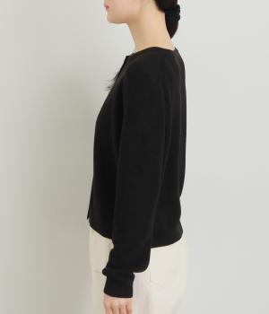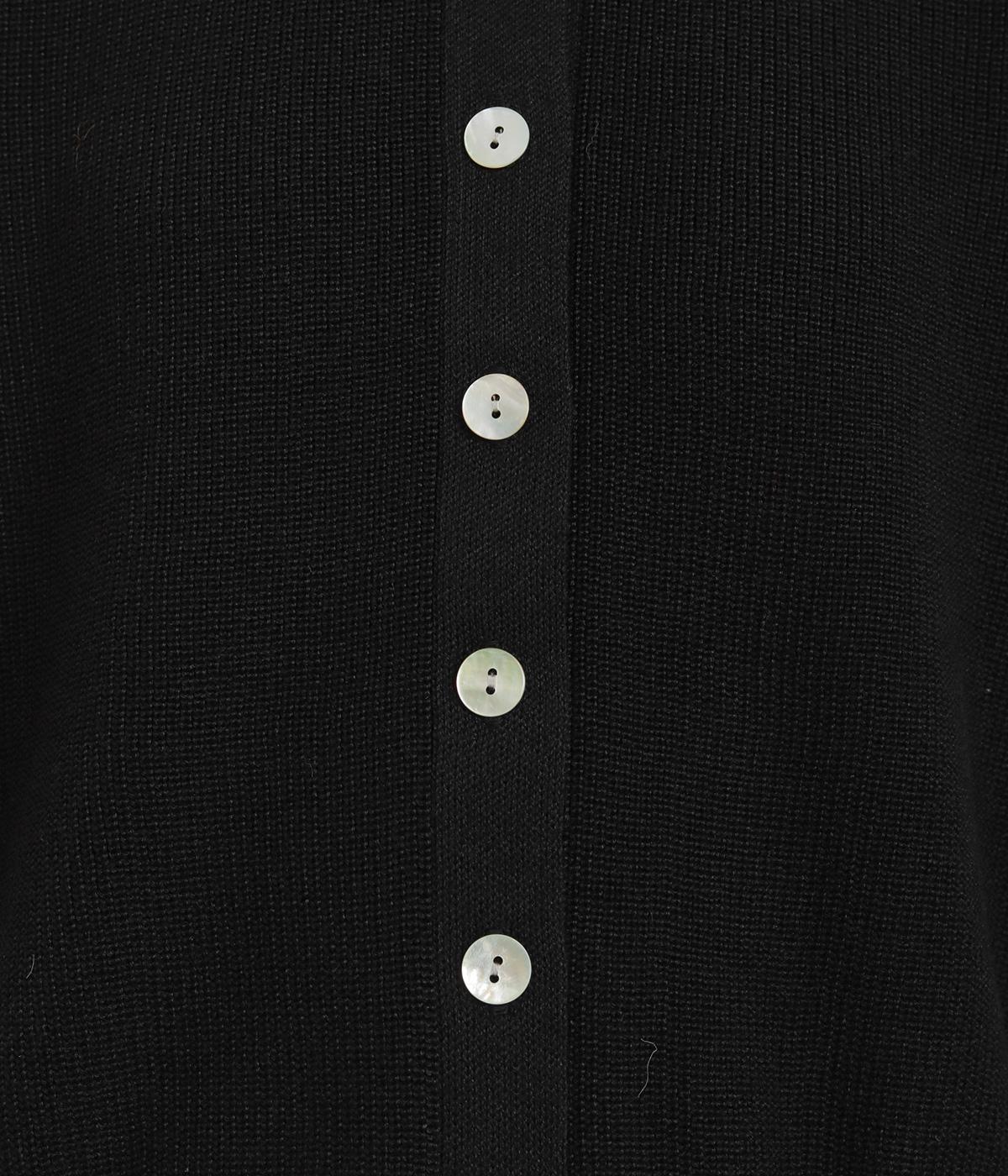 コンパクトなシルエットにシェルの多ボタンでデザインをきかせたシンプルなカーディガン。袖はやや長めに設定して、自然にくしゅっとたるんでちょうどいいニュアンスになります。両サイドスリット入りがすっきり見えのポイント。