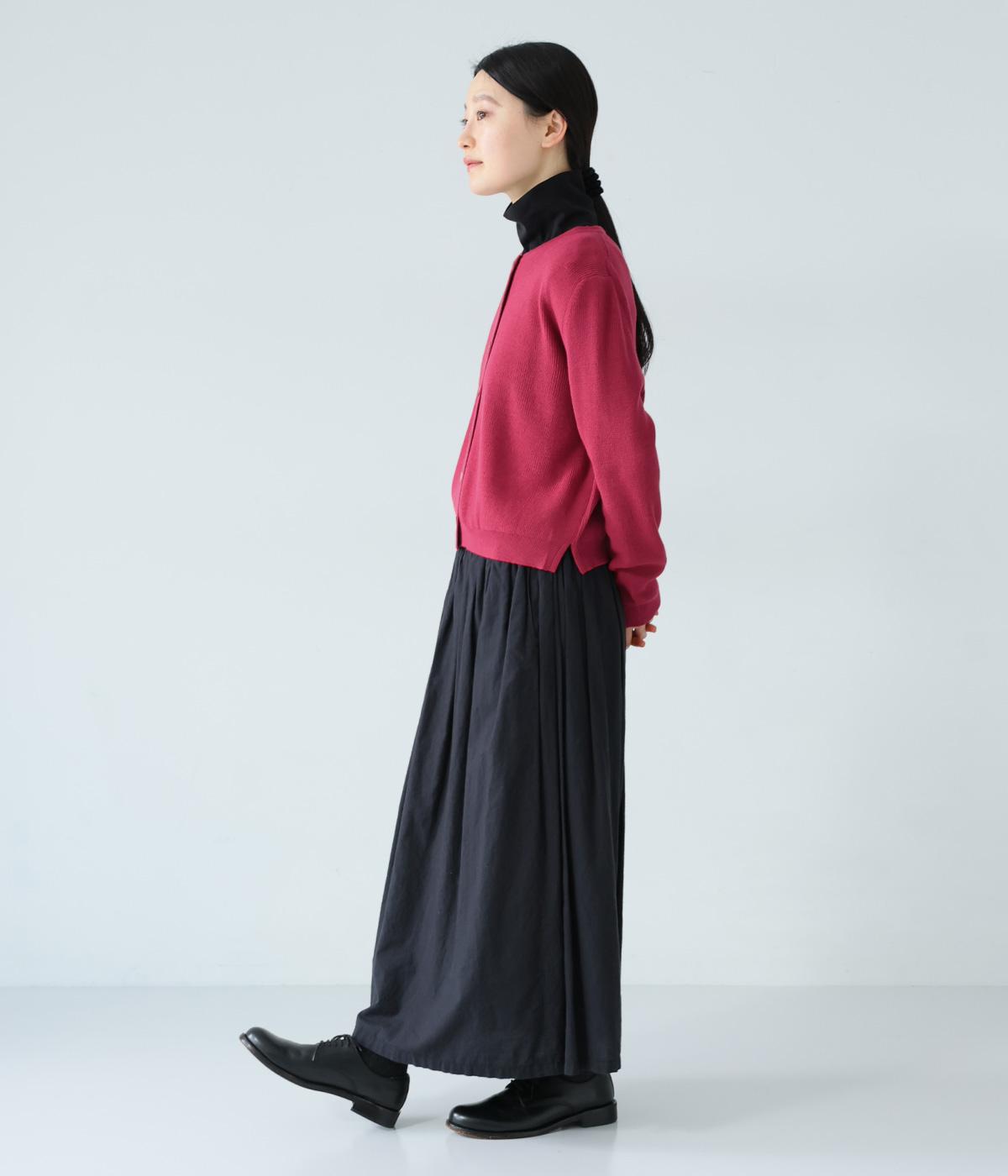 ウールのあたたかみを活かしながらもアクリル混でさらりと軽やかなタッチに仕上げました。伸縮性抜群で着用感も良く、季節の変わり目にも羽織りやすい一枚。