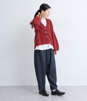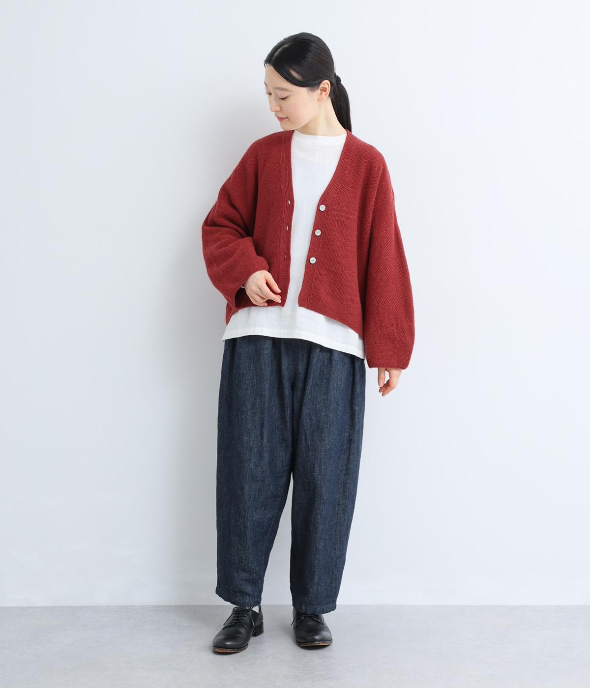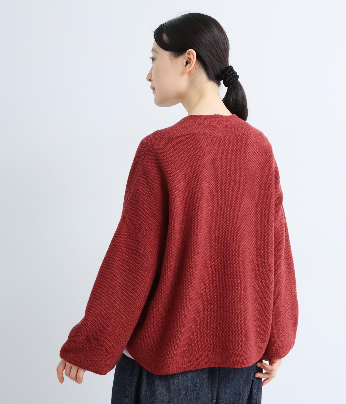 立体的な編地が特徴の鹿の子編みニット。ウール糸を使い繊維の中に空気をたっぷりと含ませているので、軽くてあたたかな着用感です。シワが目立ちにくくデイリーに着まわせます。
