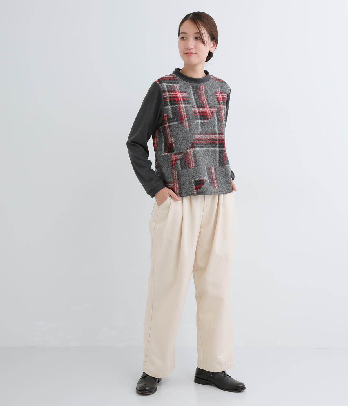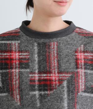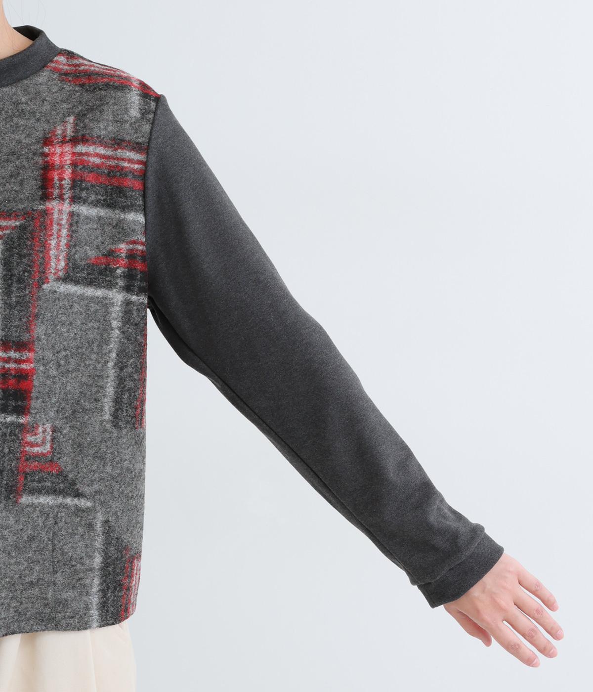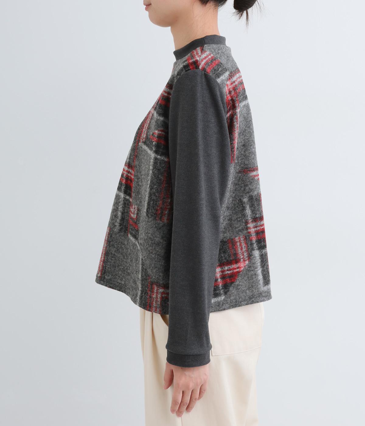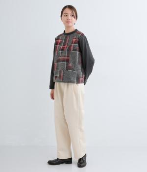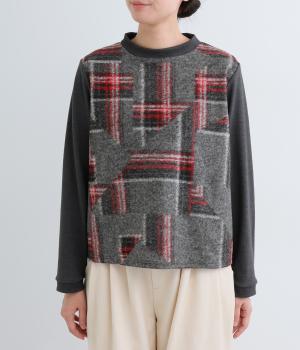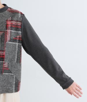 コンパクトですっきりとした印象のボックスラインシルエット。パッチワーク風のチェック柄が彩りを添え、切替ディテールが個性を引き立てます。異素材を組み合わせつつソフトな着心地にもこだわった大人トップスです。
