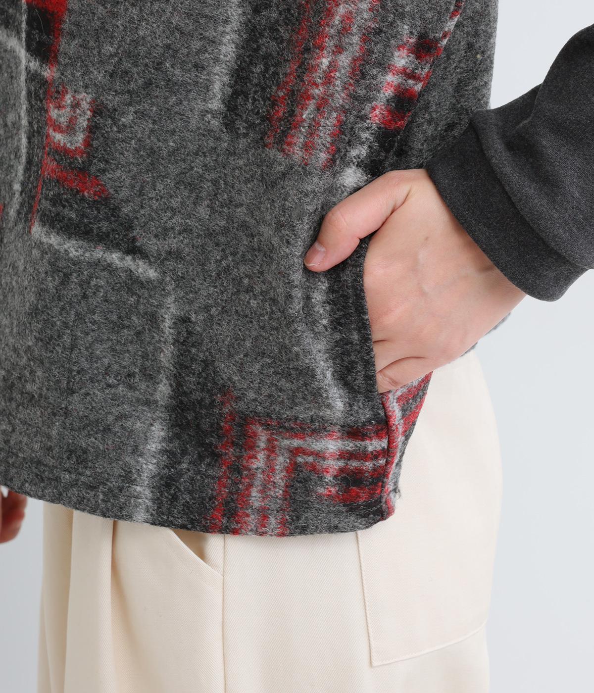高密度な混紡天竺生地に毛足のあるウールファイバーをほどこしたチェックジャガードに、ソフトな膨らみの混紡生地をドッキングしました。全体的に伸縮性に優れ、やわらかく軽やかな着心地の素材感です。