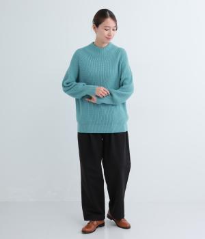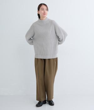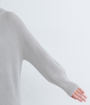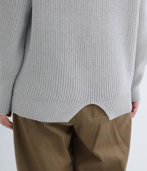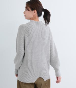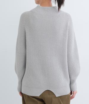 ミドルゲージのニットらしい風合いのプルオーバーにバックスリットで個性を添えました。締め付け感の少ない立ち上がりのスタンドカラーや、肩のラインをきれいに見せるラグランスリーブなど、ディテールにこだわりました。