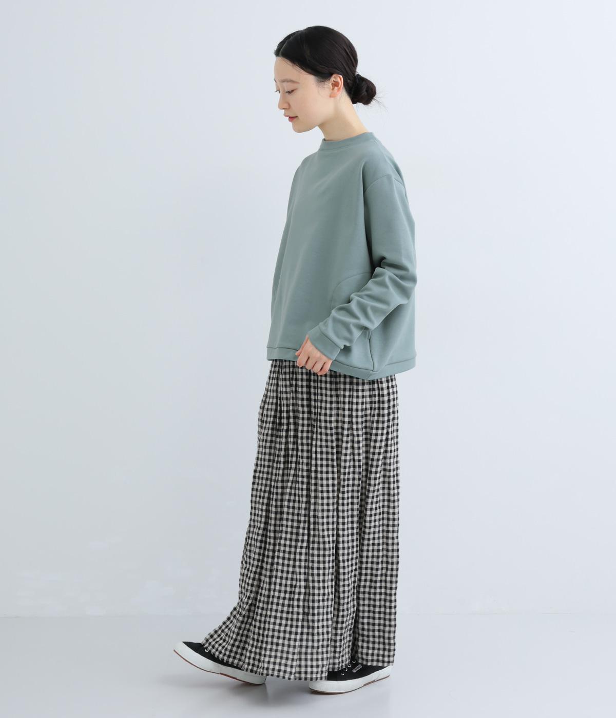 シンプルなプルオーバーを保温性に優れた生地で仕立てました。ポケットも備えて、実用性もばっちりのトップスです。ゆったりしたシルエットをほどよい丈感でまとめて、ボトムスを選ばず汎用性の高い一枚です。