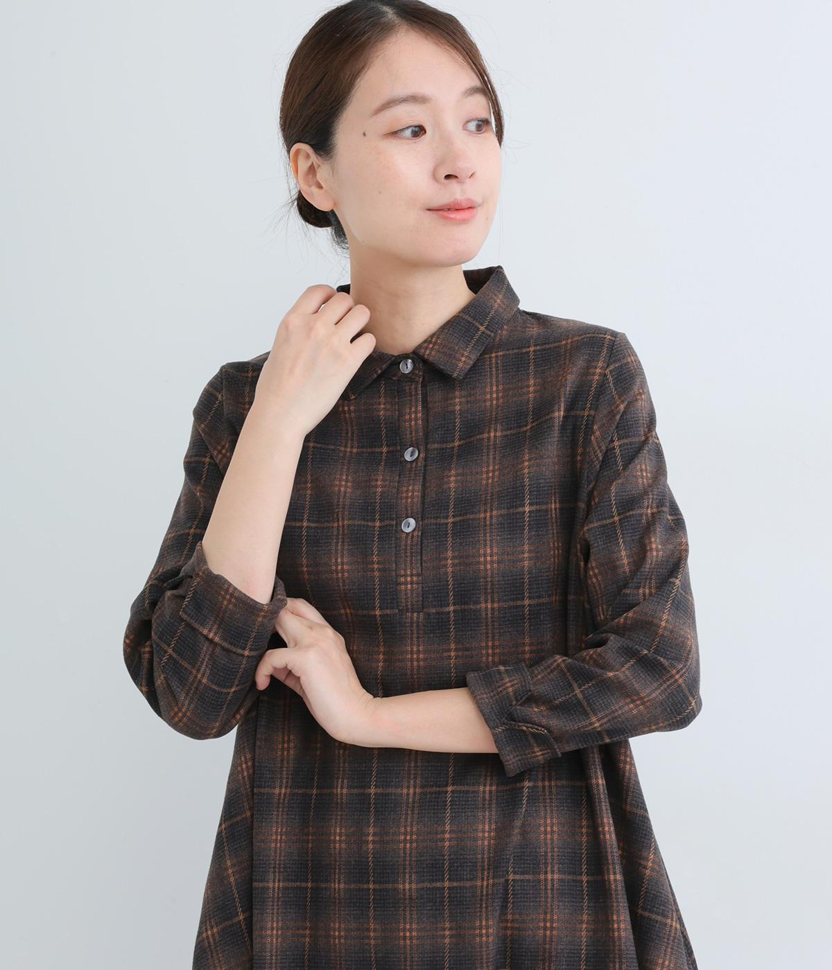 なめらかな手ざわりが心地いい混紡クロス生地です。表面は保温性に富んだ微起毛であたたかみのある雰囲気です。しなやかなハリで肌なじみよく着られます。