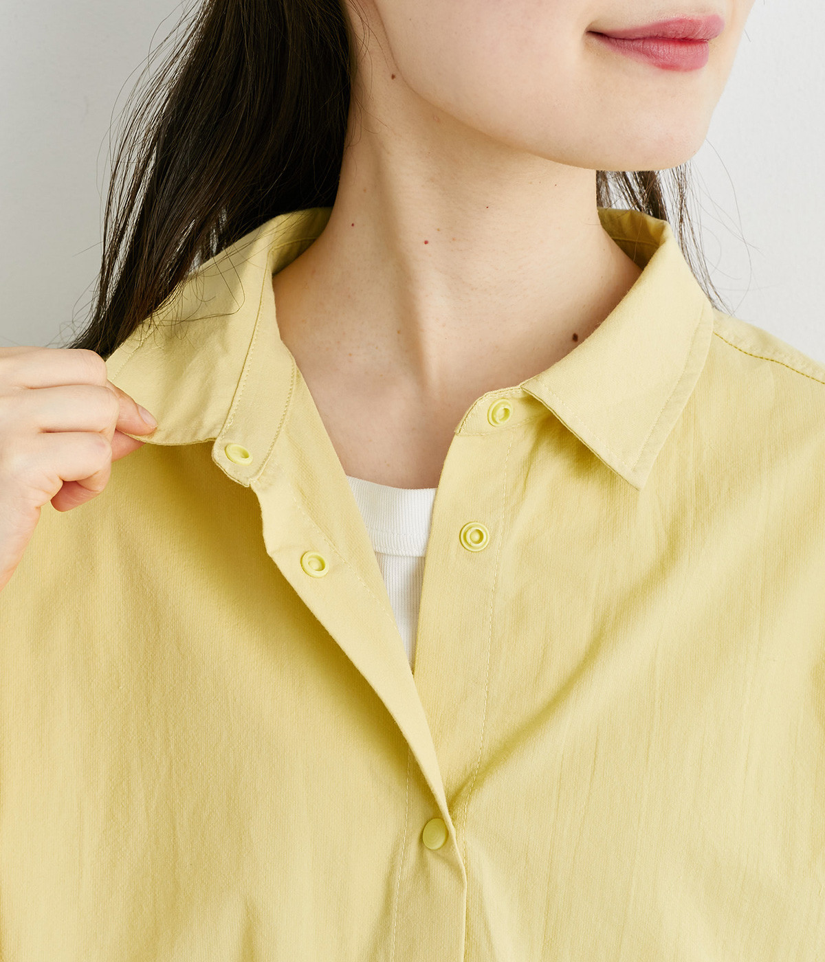 サッカーのような細かい凹凸感のある生地感が特徴的なシャツです。ややドライタッチなコットン生地が心地よく、製品洗いをかけて風合いよく仕上がっています。