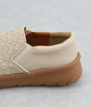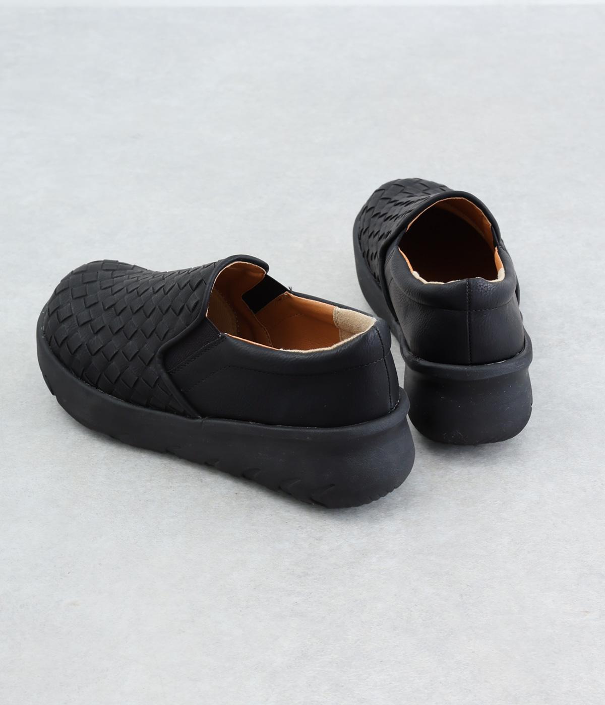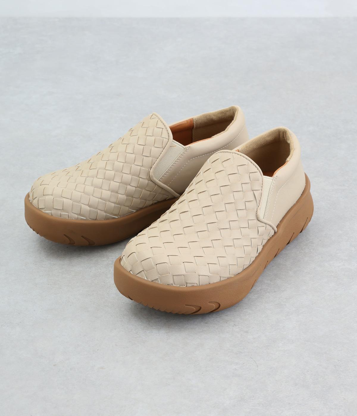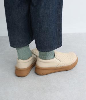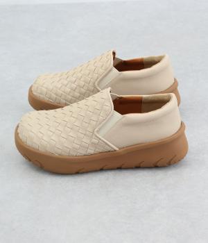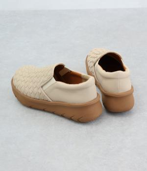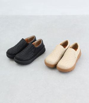 メッシュ編みデザインが品の良さを保ちながらも適度に存在感を発揮するスリッポンシューズ。サイドゴアで脱ぎ履きしやすく、安定感のある厚底がうれしいポイント。長時間歩行も疲れにくく、デイリー使いからお出かけまで幅広く活躍。