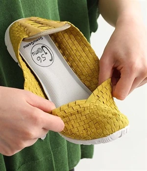 浅めのVカットが足のラインをきれいに見せてくれる、バレエタイプのスリッポンパンプスです。高低差もなくスリムなシルエットなので、ボリュームのあるワイドなボトムスとも好相性。インソールには分厚い低反発クッション採用で、歩行時の足への負担を軽減してくれます。屈曲性に優れたアウトソールで、歩くたびにかかとが抜けてパカパカするといったストレスからも解放。軽量かつかかとが畳めるコンパクト設計で、セカンドシューズとして持ち運びにもぴったりです。中敷きを外せば水洗い可能で、清潔に使えるのもうれしいポイント。オフィスワークなどでの室内履きにもおすすめです。