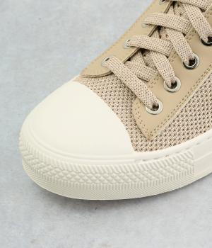 カジュアルすぎない品のいい表情が大人のデイリースタイルにやさしく寄り添います。ソールはやや厚めでボリュームを出し、ほどける心配のない結ばないシューレースにも注目。部分的に牛革を用いてスタイリッシュな一足に。