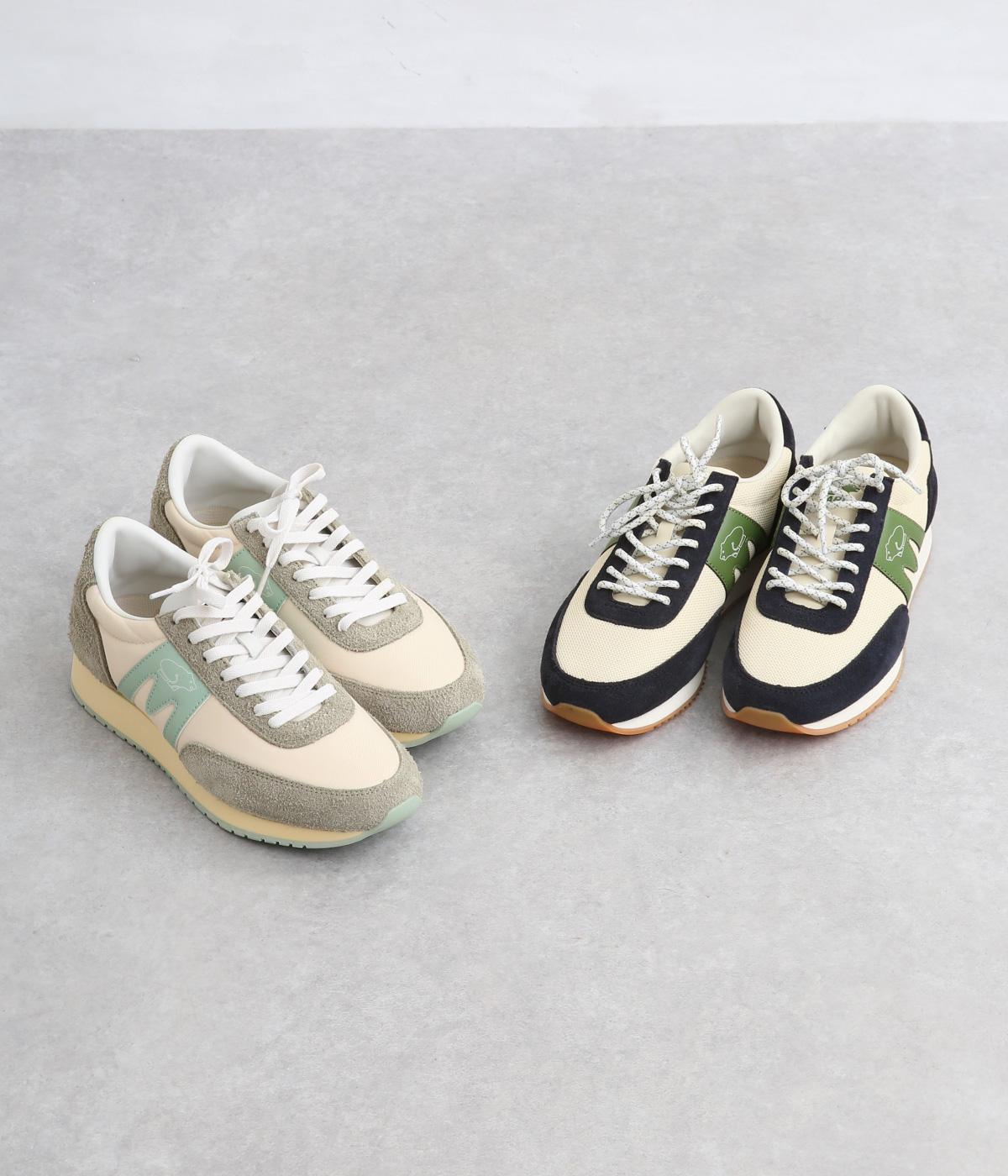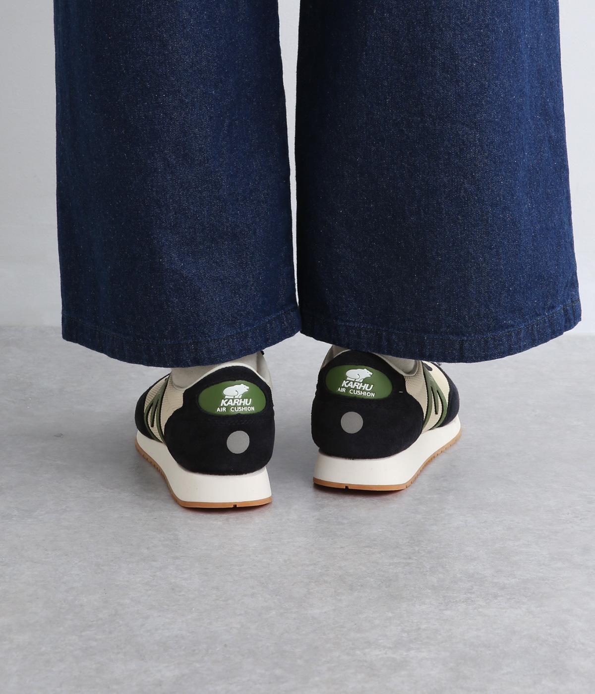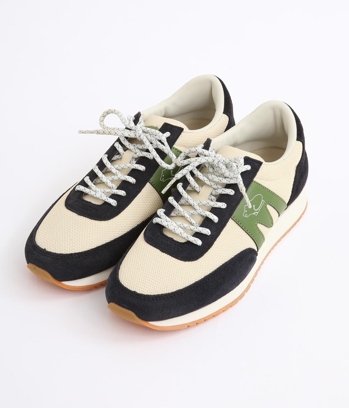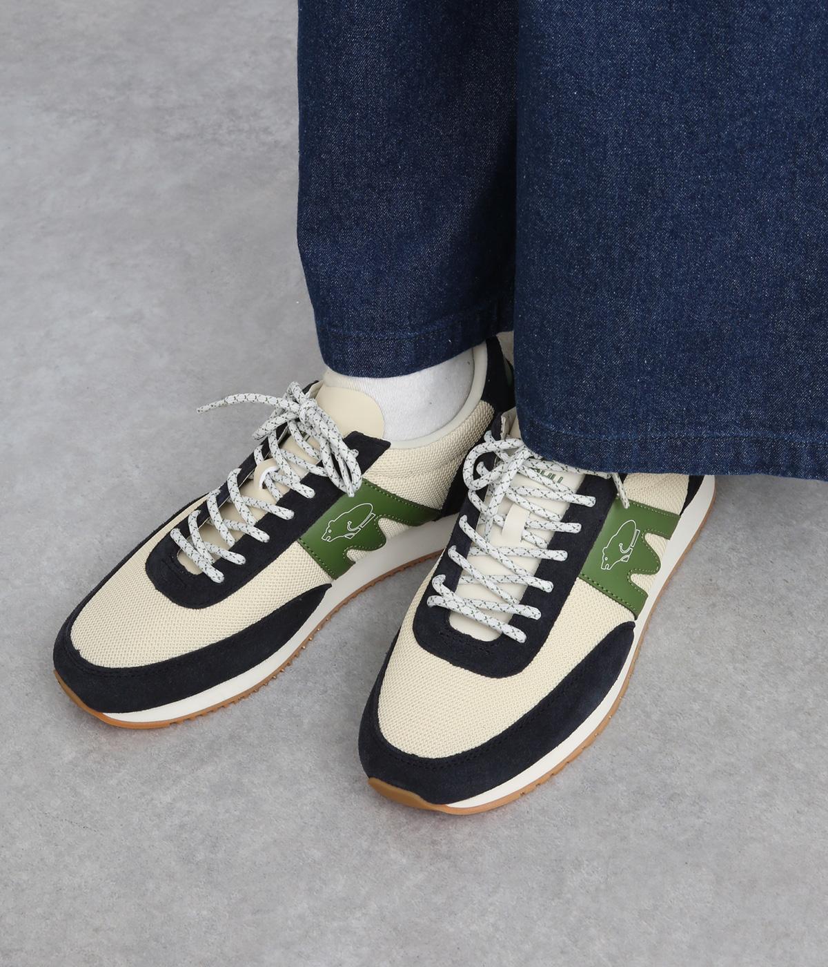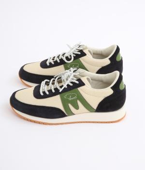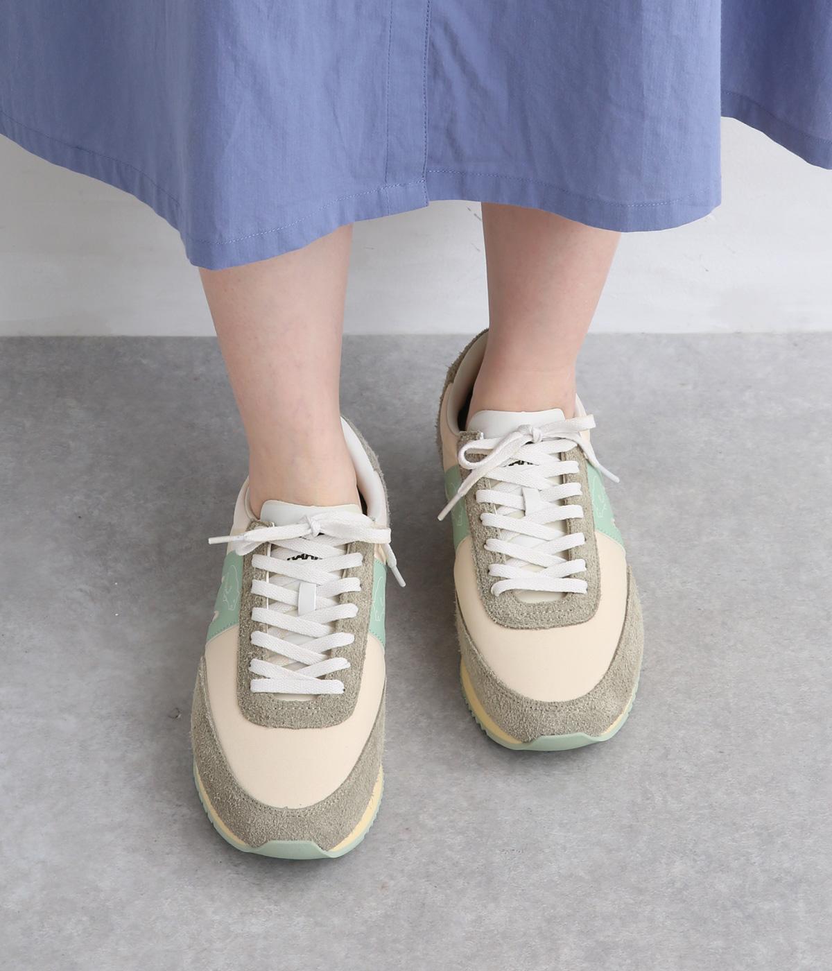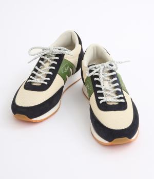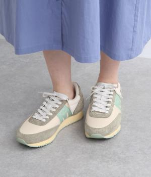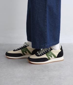アッパーはスエードと通気性のあるメッシュを組み合わせたコンビ素材。合成皮革のMロゴが落ち着いた大人の印象を添え、アーチサポートやエアークッション入りミッドソールで安心した履き心地を叶えます。