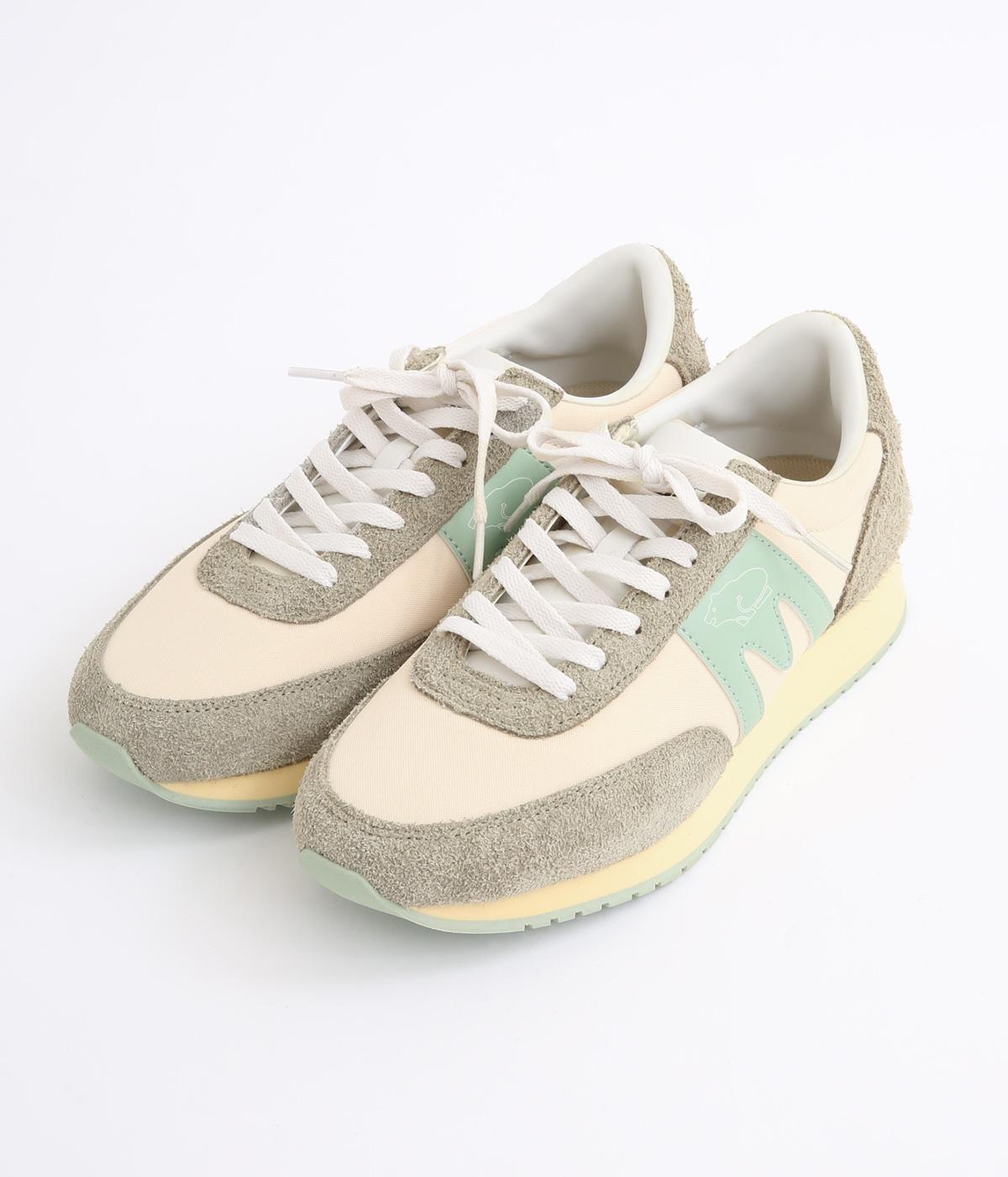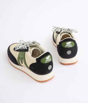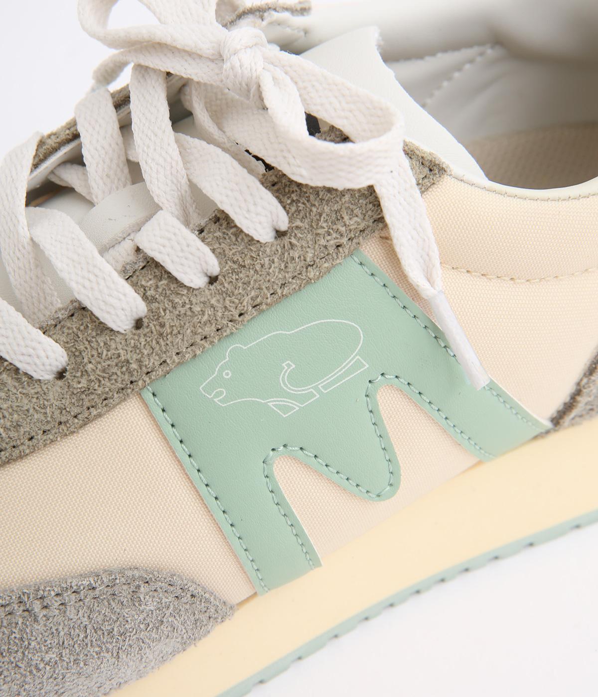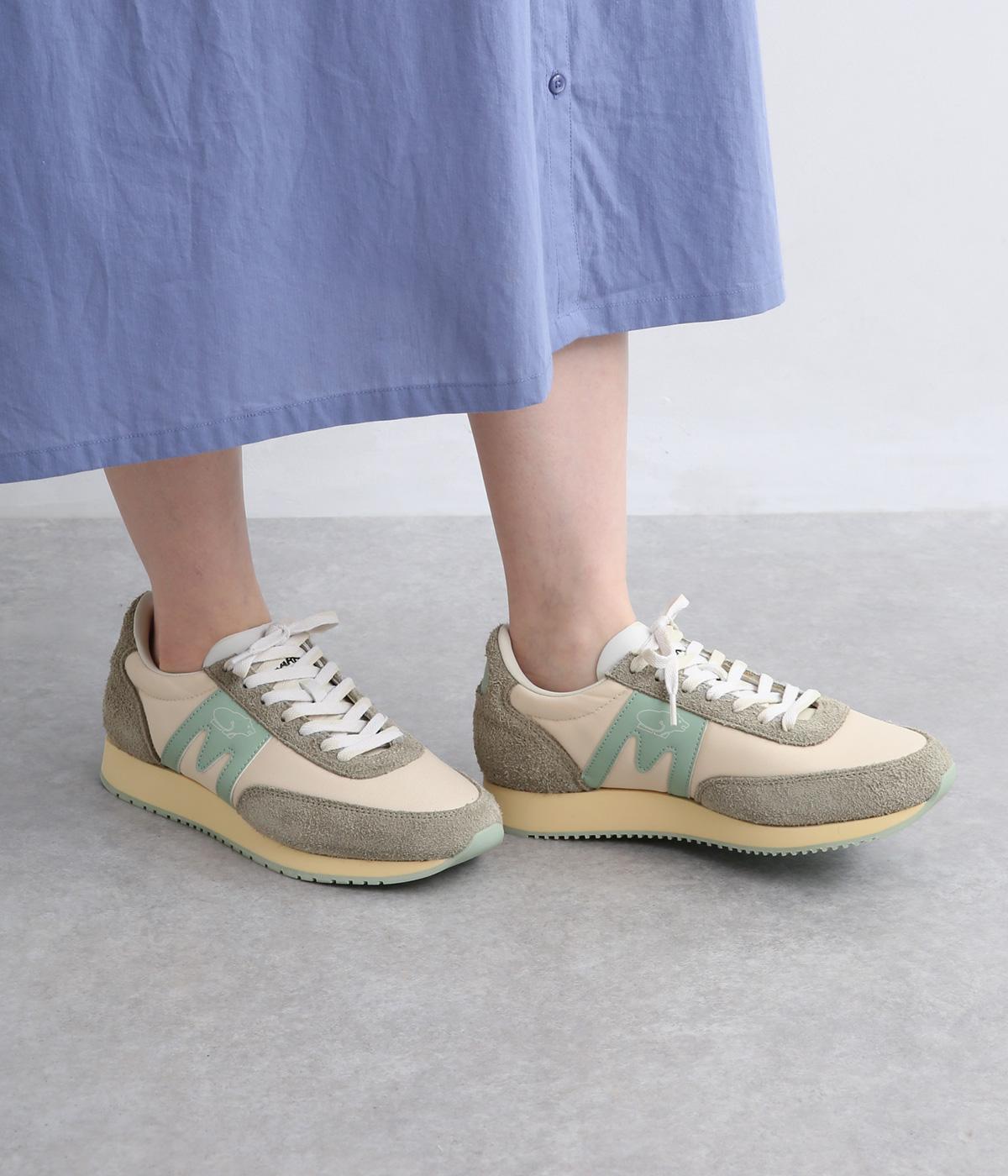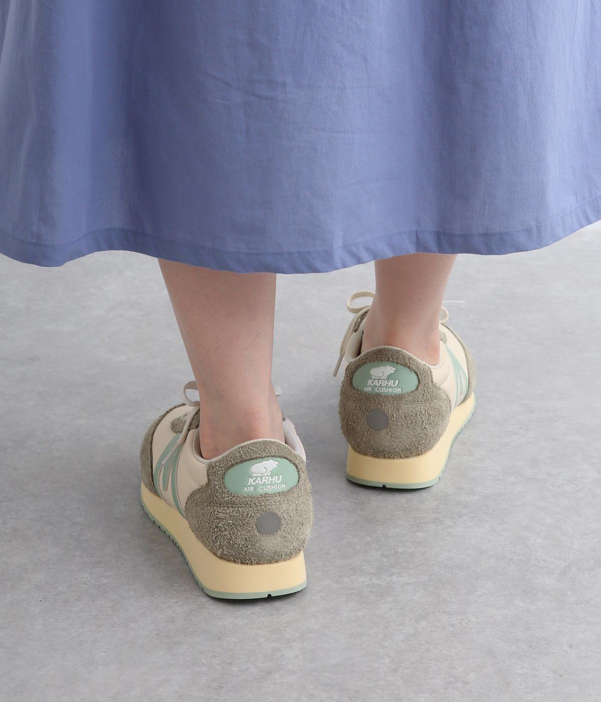アッパーはスエードと通気性のあるメッシュを組み合わせたコンビ素材。合成皮革のMロゴが落ち着いた大人の印象を添え、アーチサポートやエアークッション入りミッドソールで安心した履き心地を叶えます。
