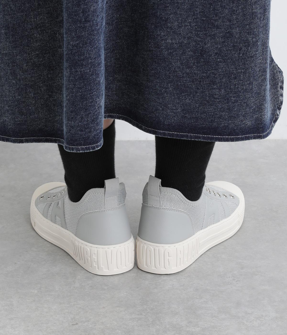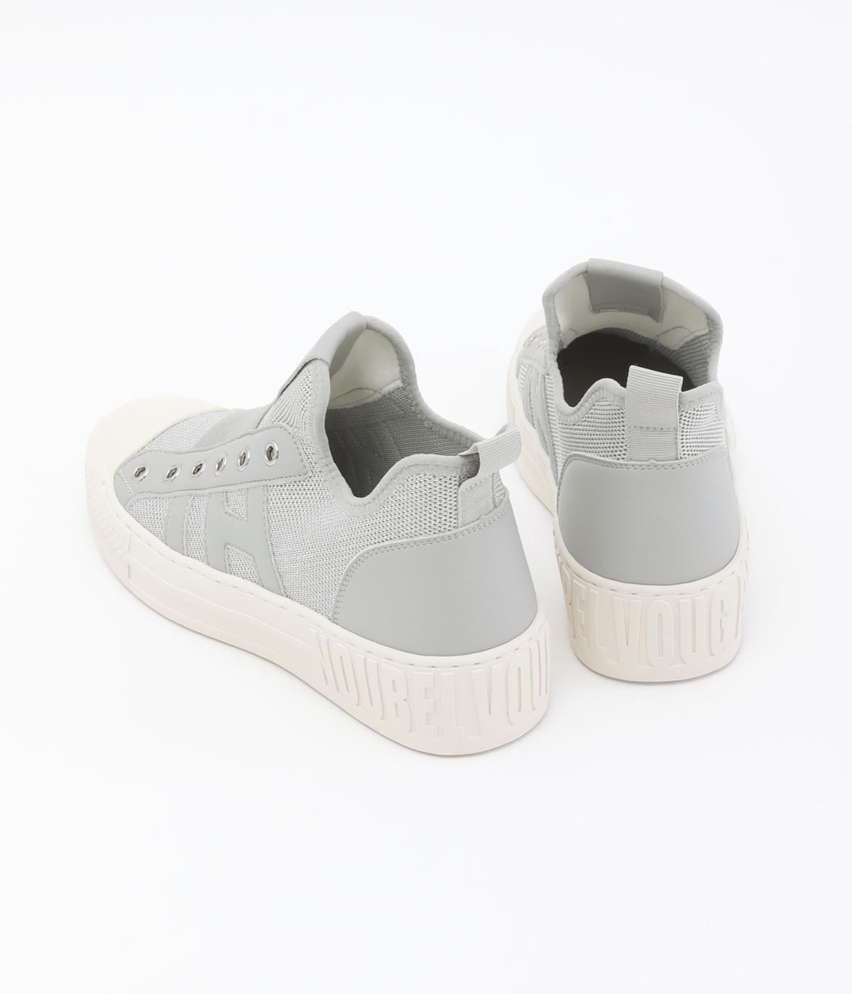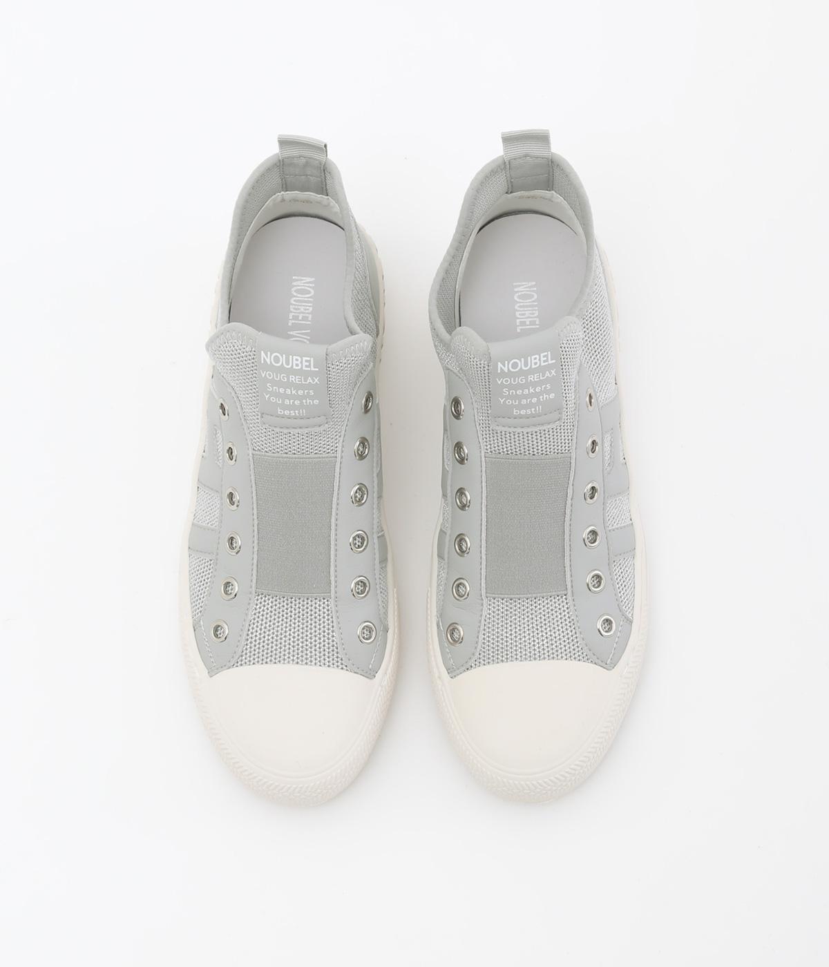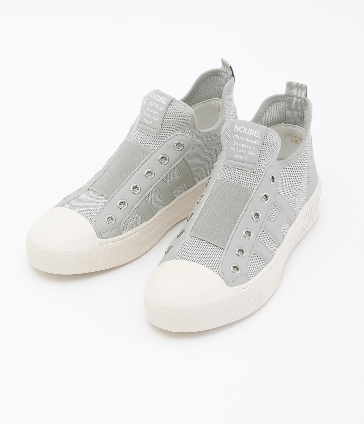 通気性のよいニット素材でストレスフリーながら、牛革パーツがほどよいホールド感を与え、安心の履き心地です。甲部分には紐の代わりにゴムをほどこし、着脱がイージーです。