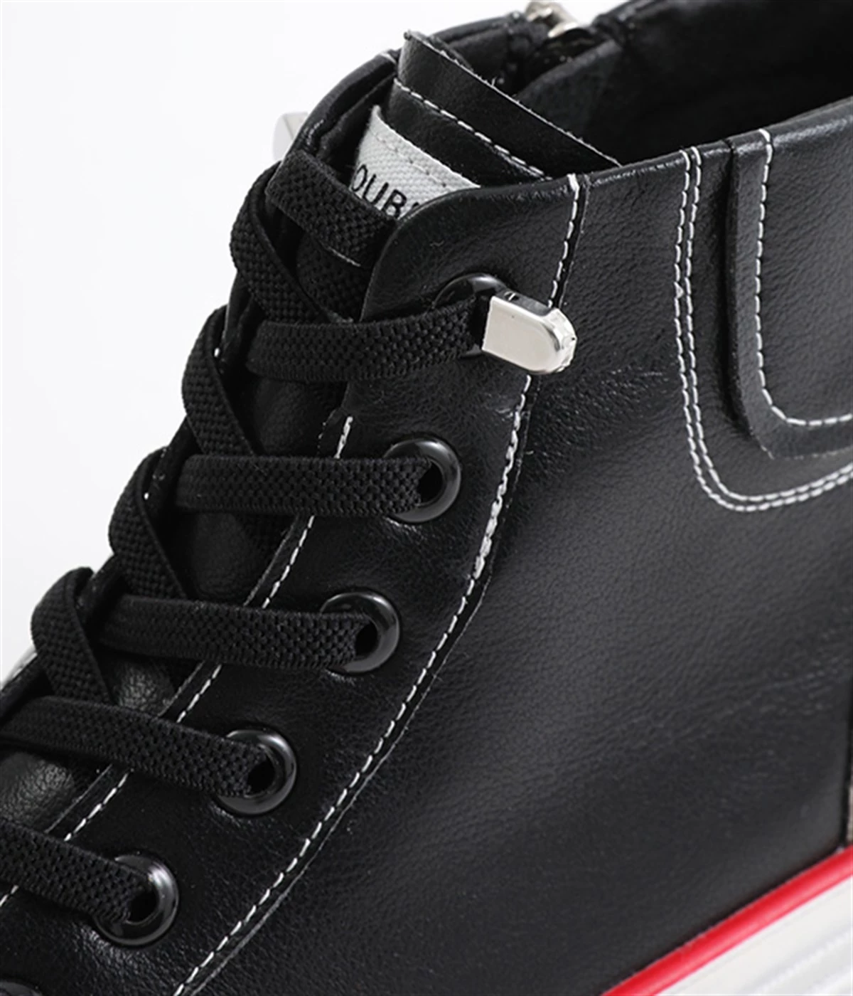 ゴムヒモ仕様で結ばないタイプのレースアップデザイン