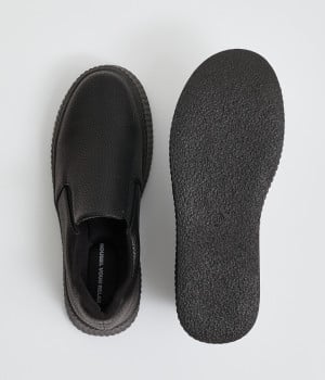 スポーティなスタイリングに欠かせない、厚底ソールのスリッポンスニーカー。適度な厚みのフラットソールは、ボリュームボトムとも好相性です。飽きのこないシンプルなデザインでボトム合わせしやすく、一足あると重宝します。