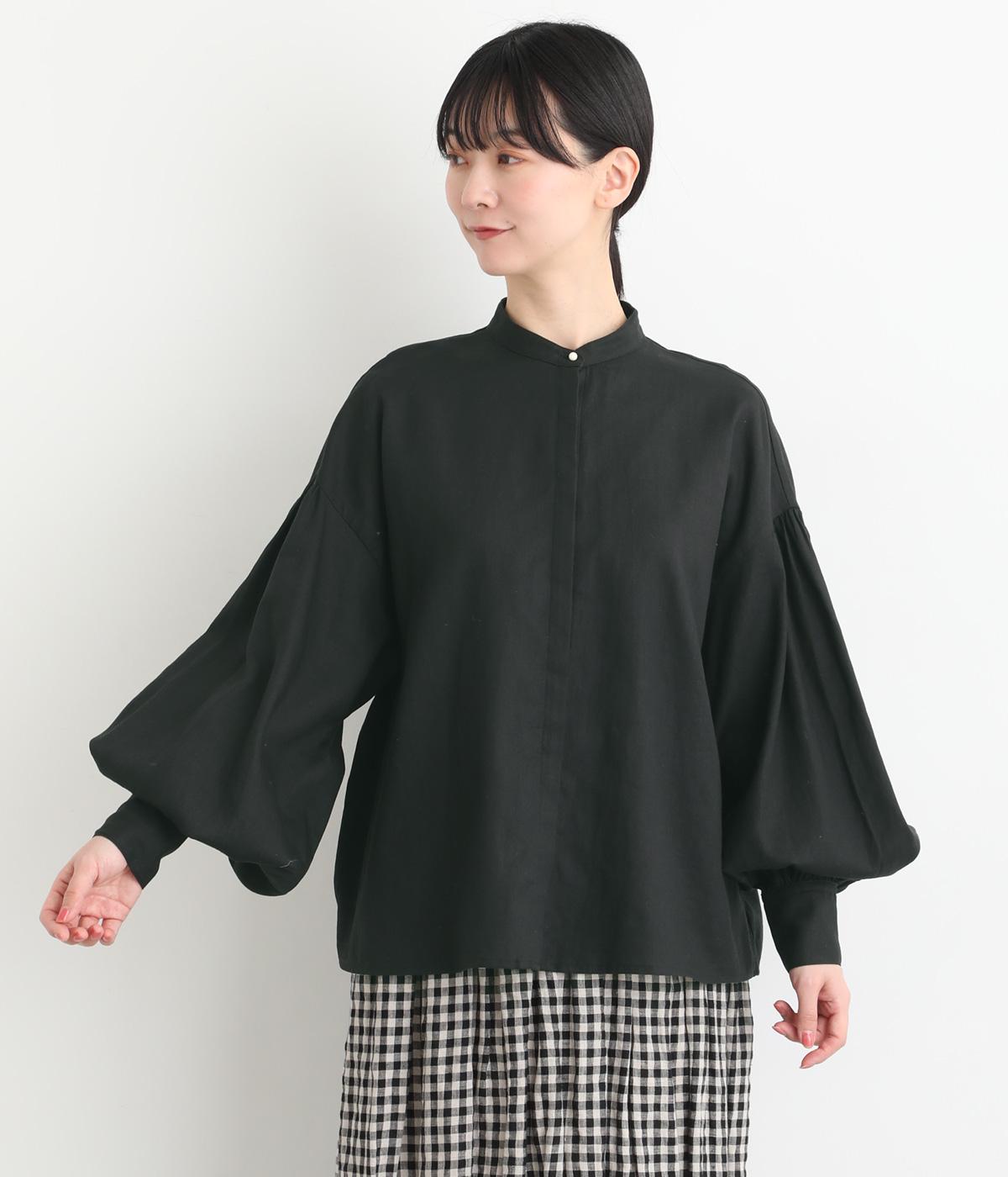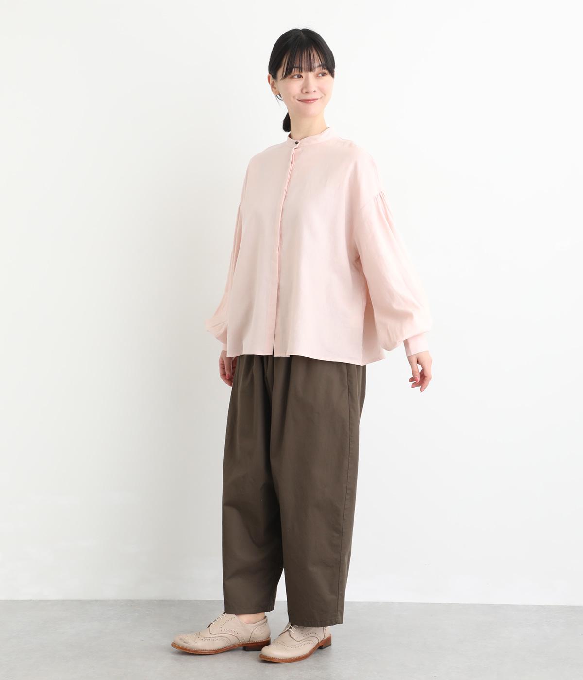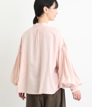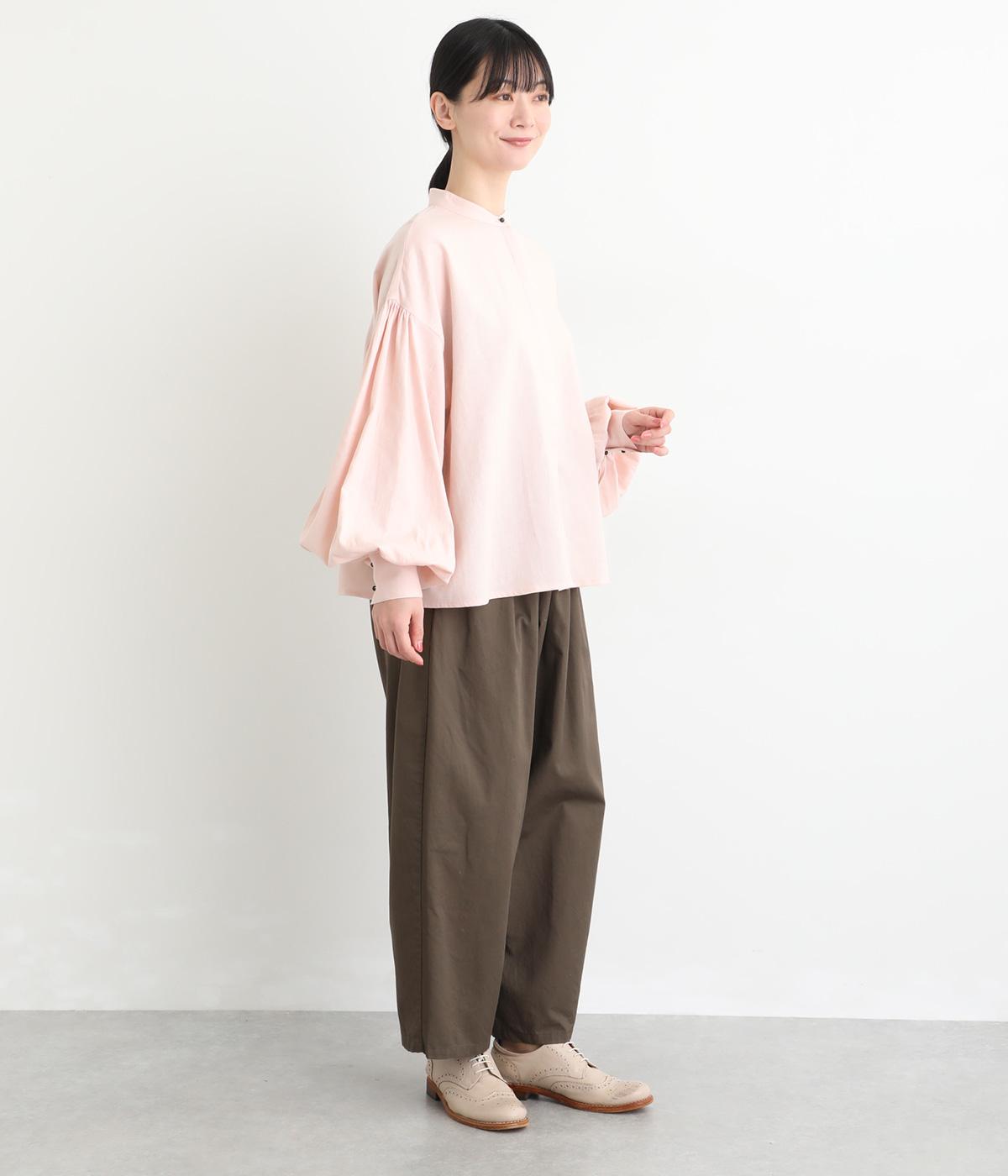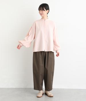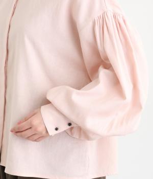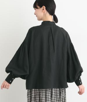 ぽわんと膨らんだ袖が華やかさを演出するブラウス。ころんとした第一ボタンがアクセントを添えています。ナチュラル感のある生地にツイル特有の上品な織り目が映える素材感で、カジュアルときれいめのどちらの装いも叶える一枚に仕上がりました。
