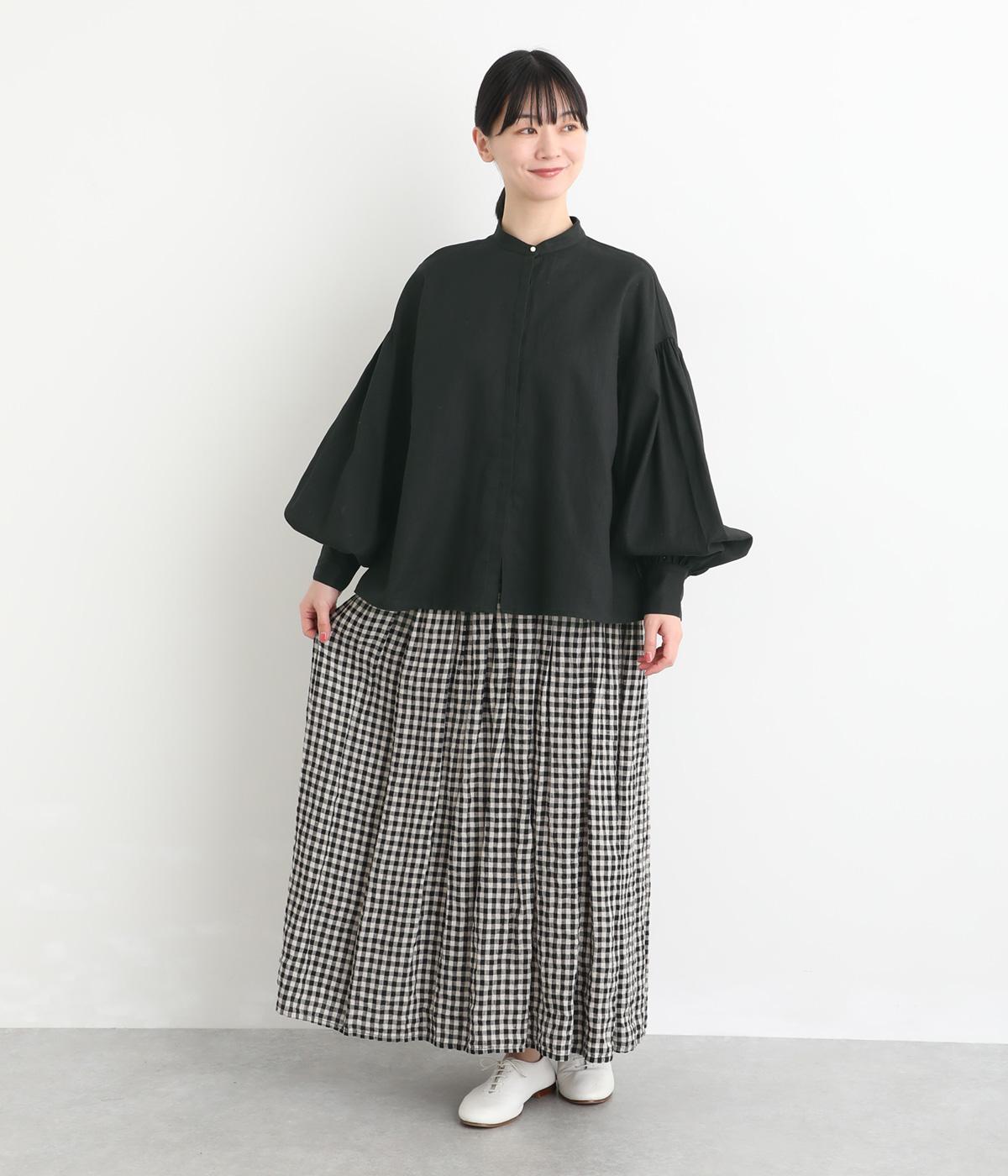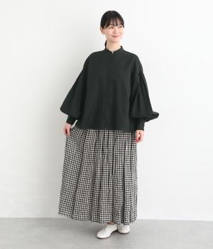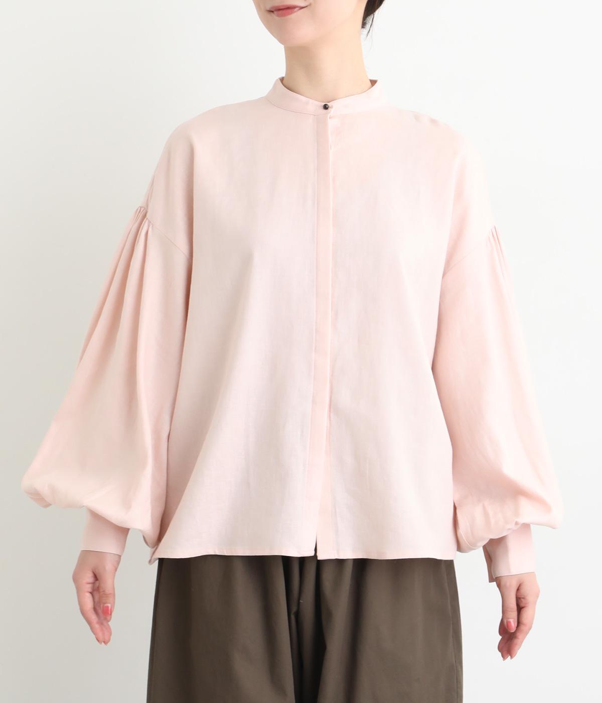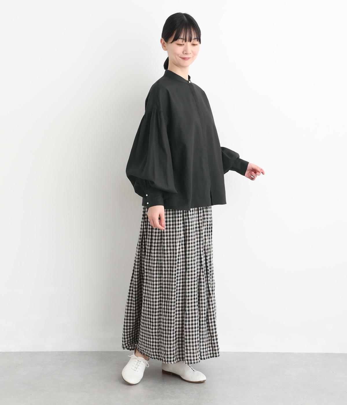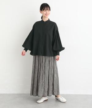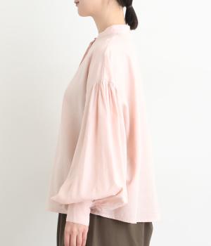 ぽわんと膨らんだ袖が華やかさを演出するブラウス。ころんとした第一ボタンがアクセントを添えています。ナチュラル感のある生地にツイル特有の上品な織り目が映える素材感で、カジュアルときれいめのどちらの装いも叶える一枚に仕上がりました。