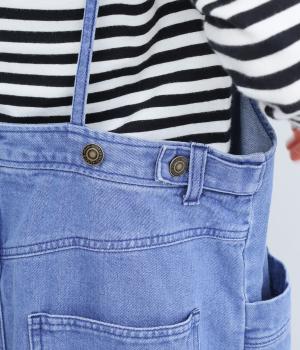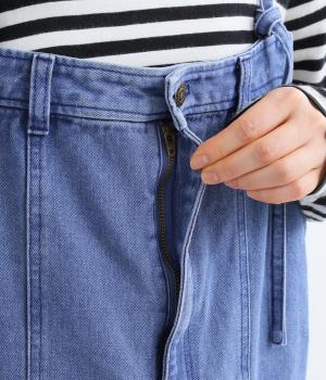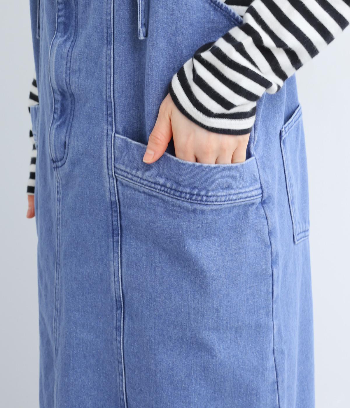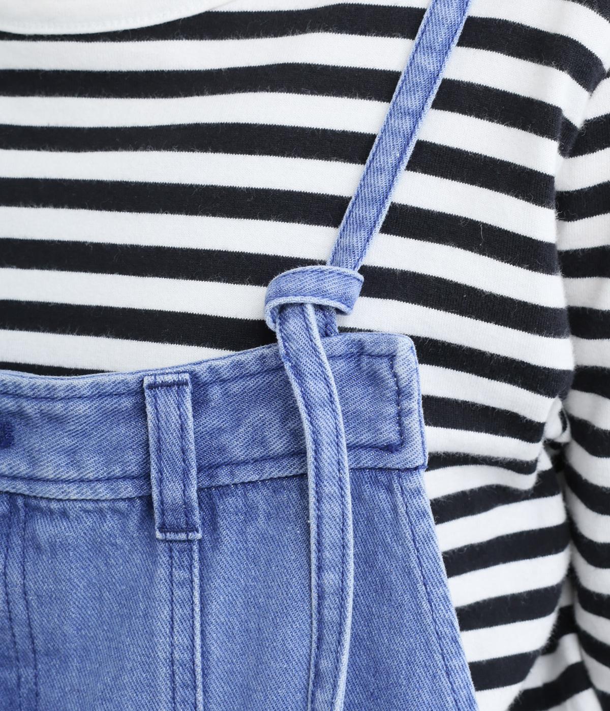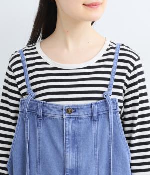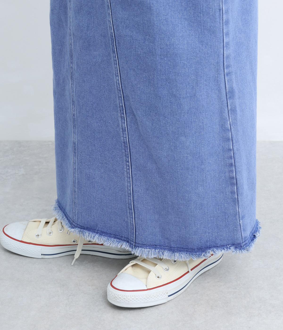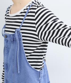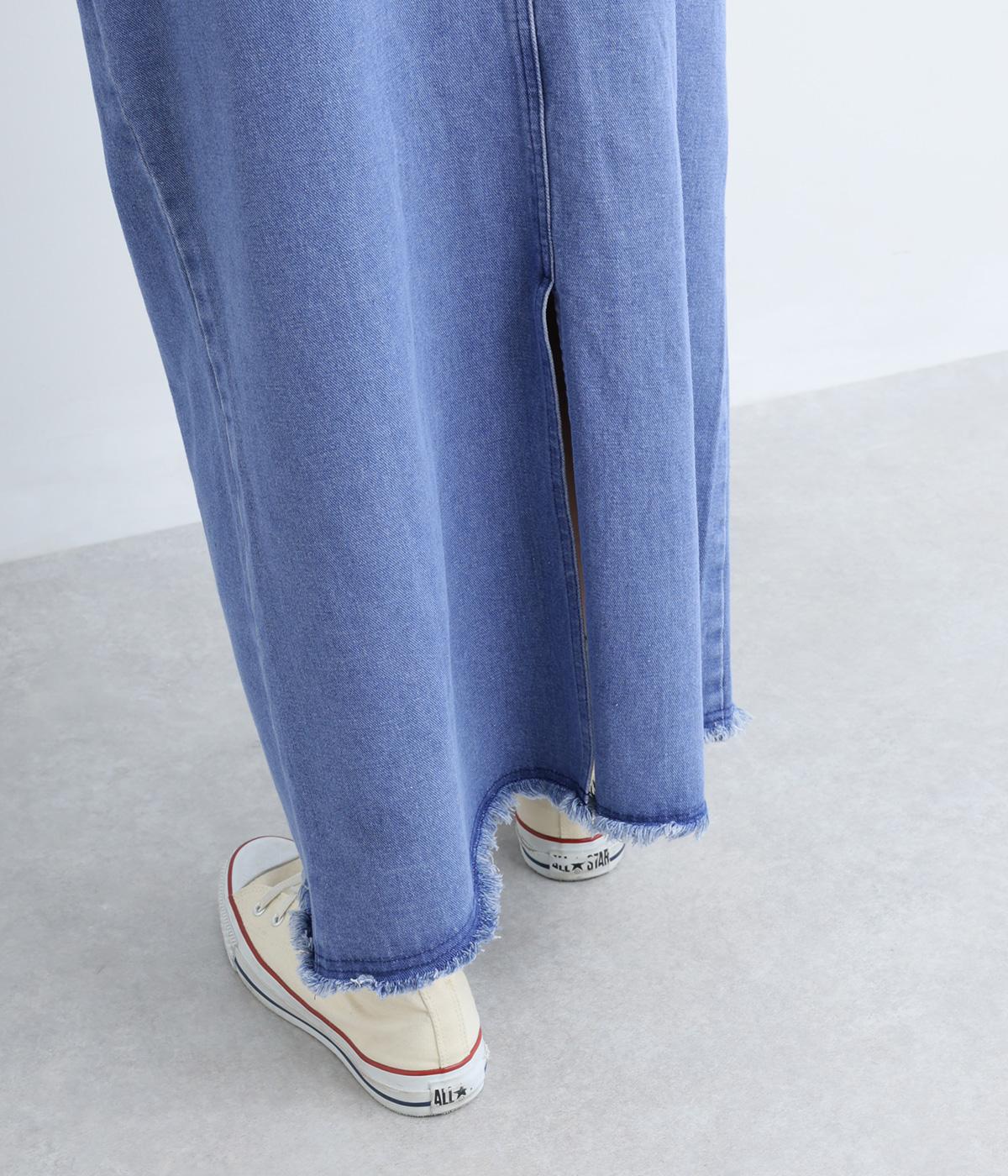 落ち感のある生地がストンと縦のラインを描くジャンパースカートです。ショルダーストラップは結んで長さを調整でき、ウエストはボタンとファスナー仕様で、サイドのボタンでサイズ調節も可能です。裾のフリンジが抜け感を添えています。