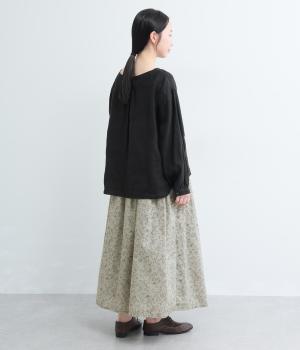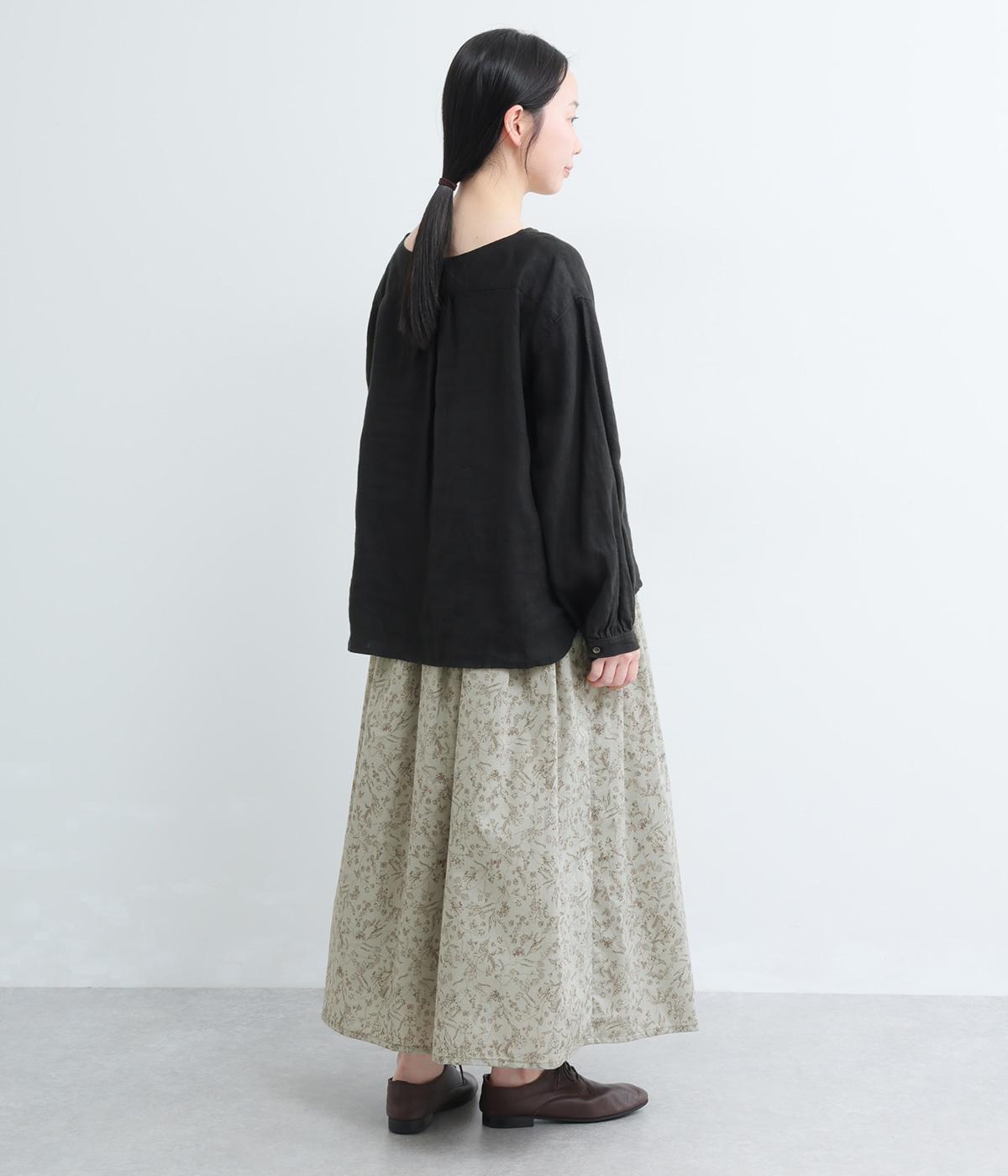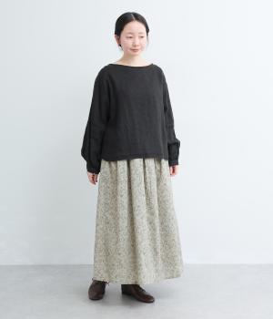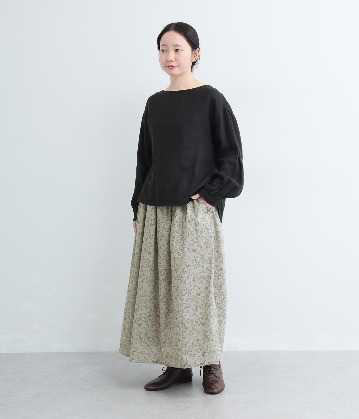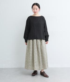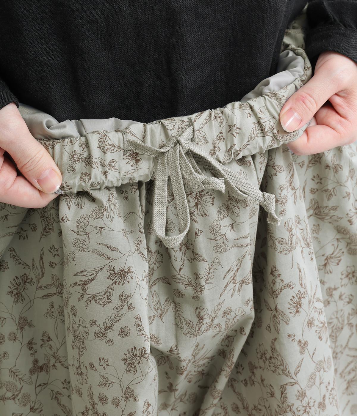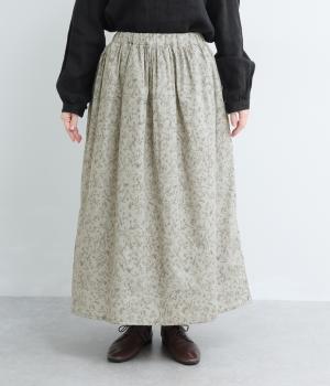 繊細なタッチで描かれた草花が可憐で儚げな雰囲気を演出するギャザースカート。ふわりとふくらんだシルエットがかわいらしく、ロング丈でしっくりと落ち着いた印象にまとめています。ウエストはオールゴムに調整紐入りです。